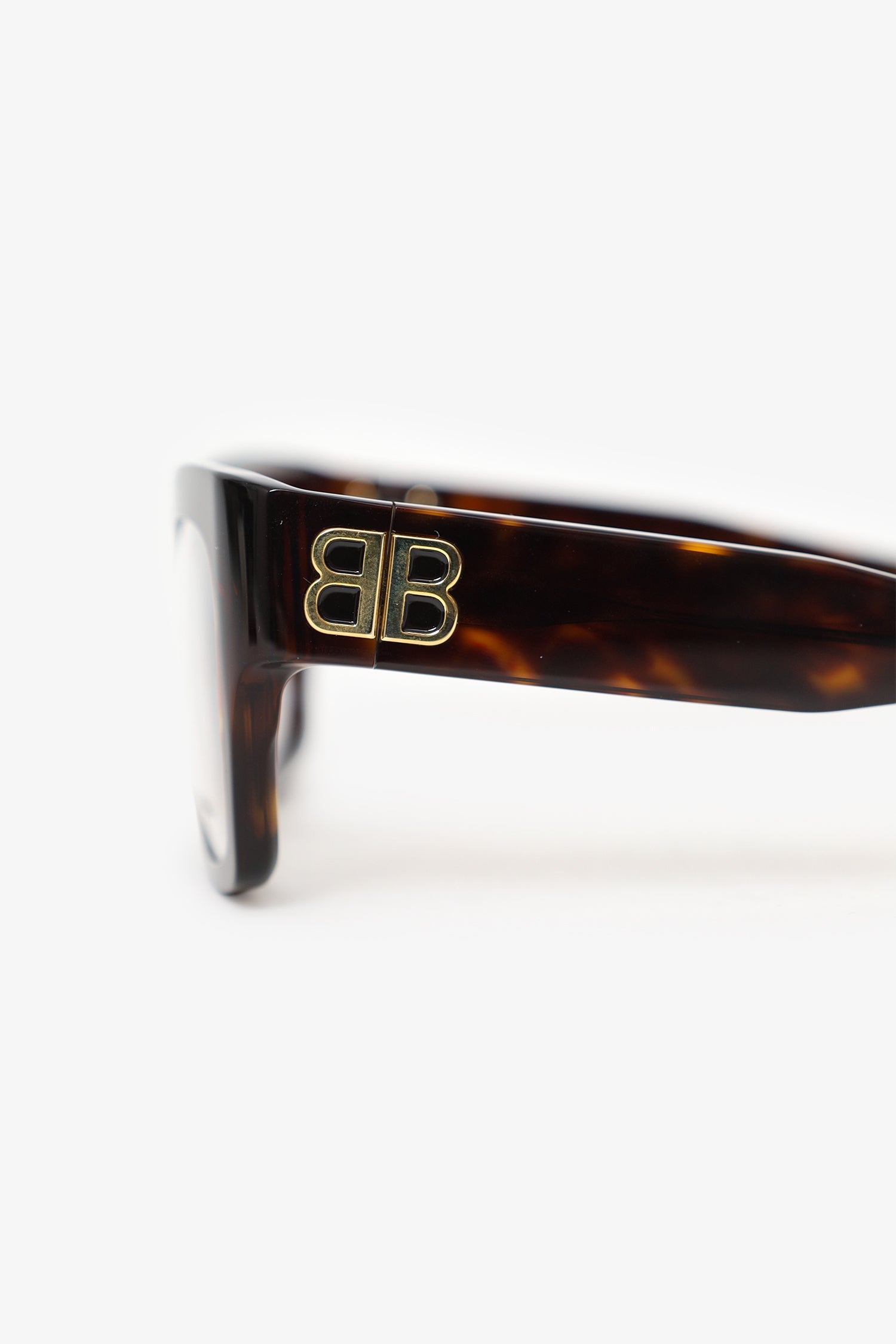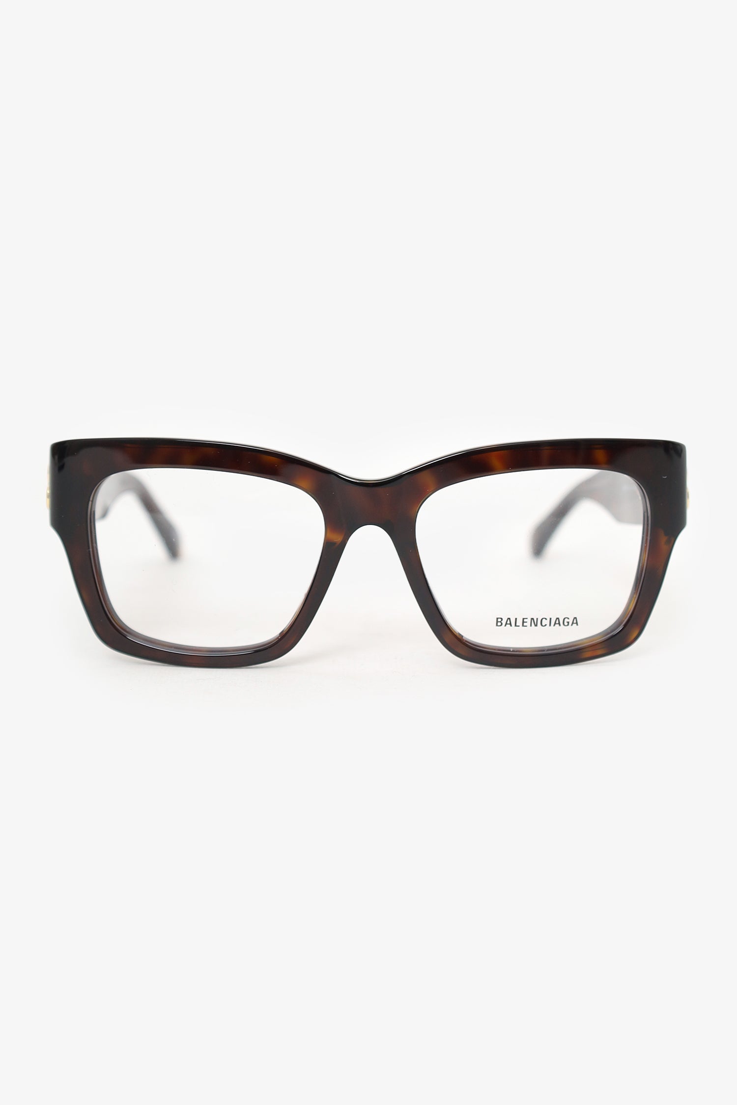 Balenciaga Dark Brown Tortoiseshell Non Prescription Eyeglasses