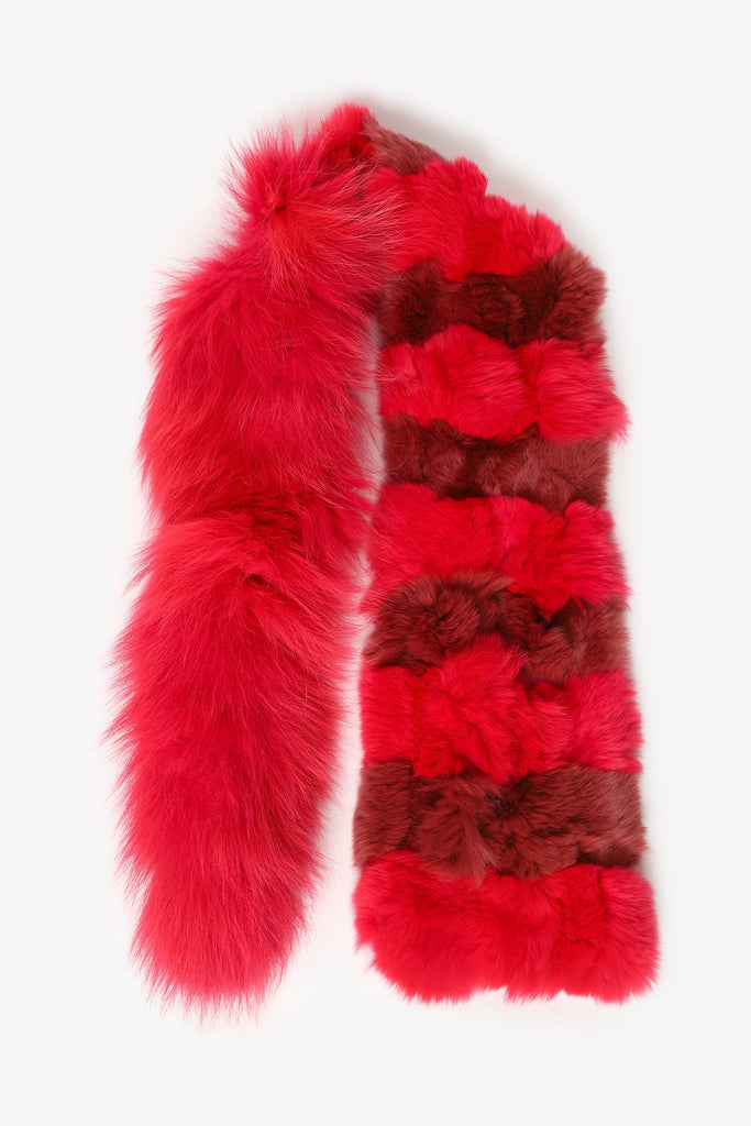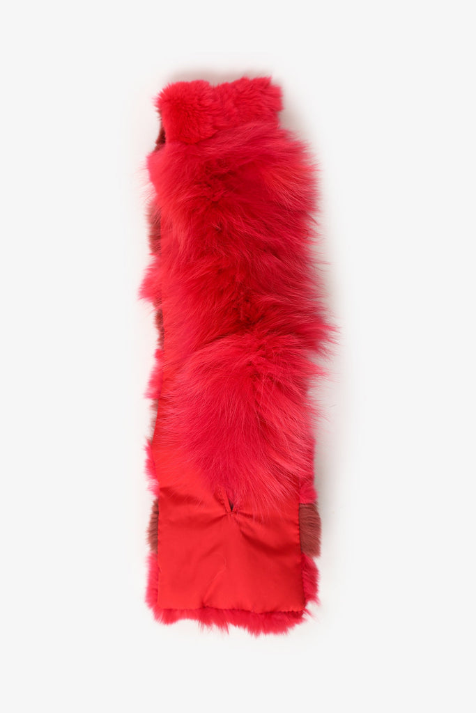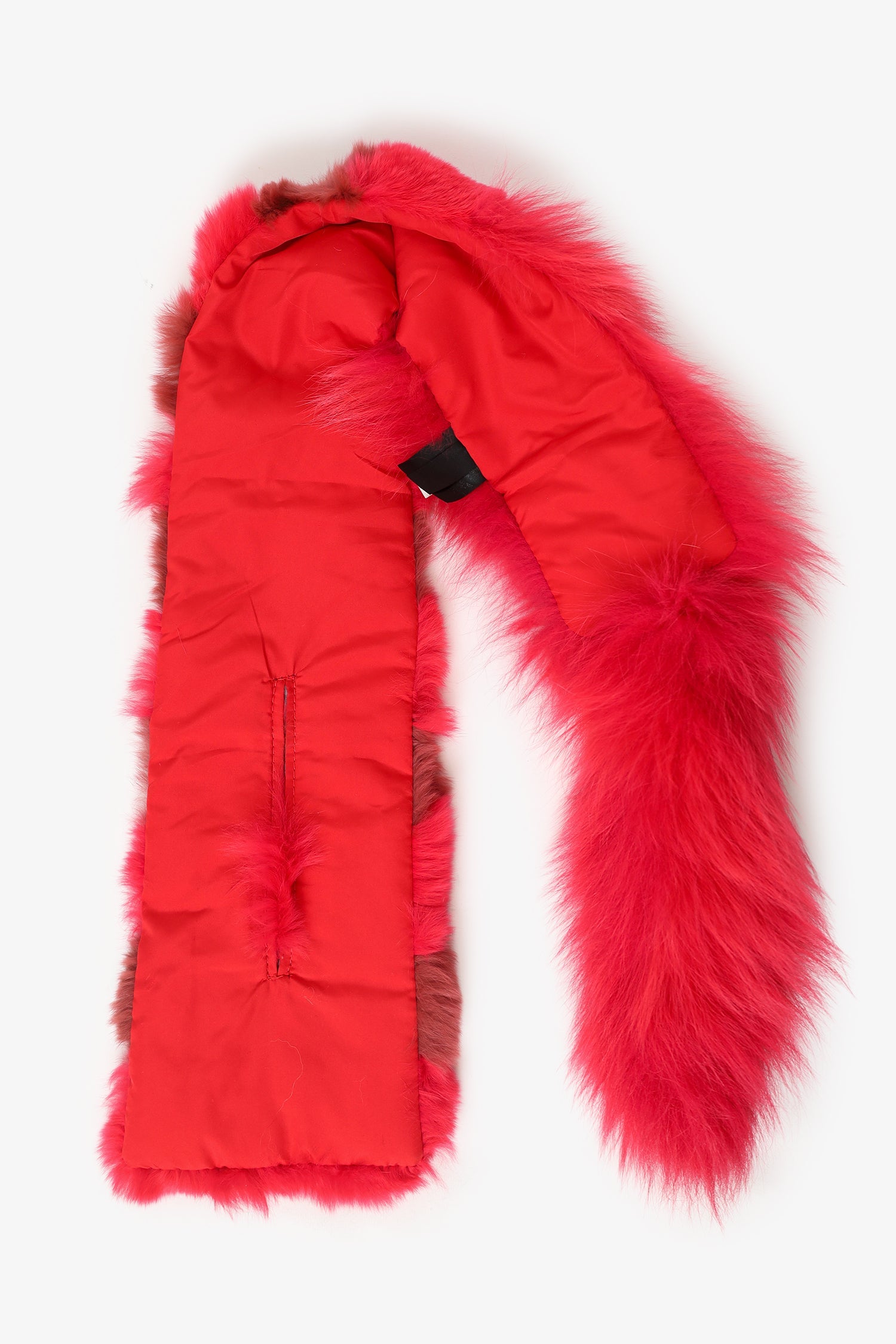 Beymen Pink/Red Fox Fur/Rabbit Scarf. Lined interior with slit for pull-through closure. Tonal stitching.