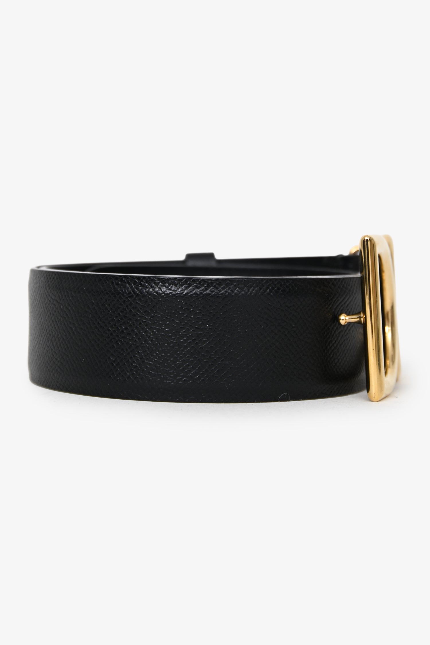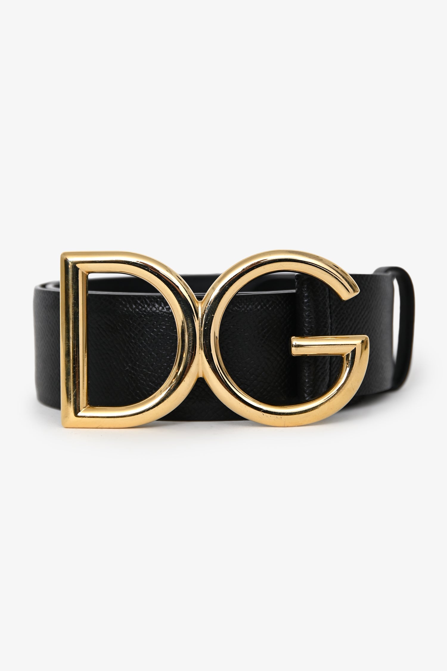 Dolce & Gabbana Black Grained Leather Gold DG Belt