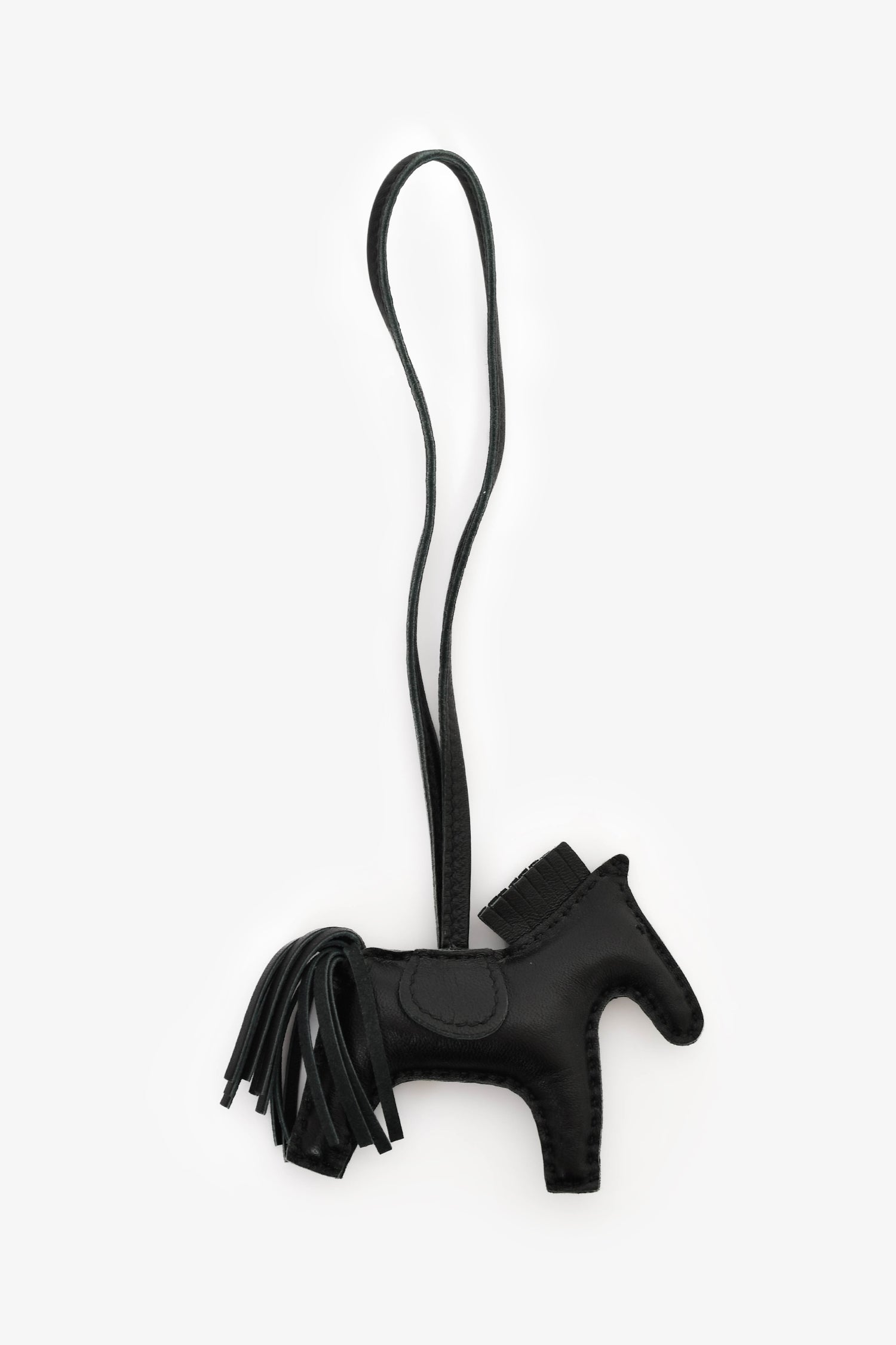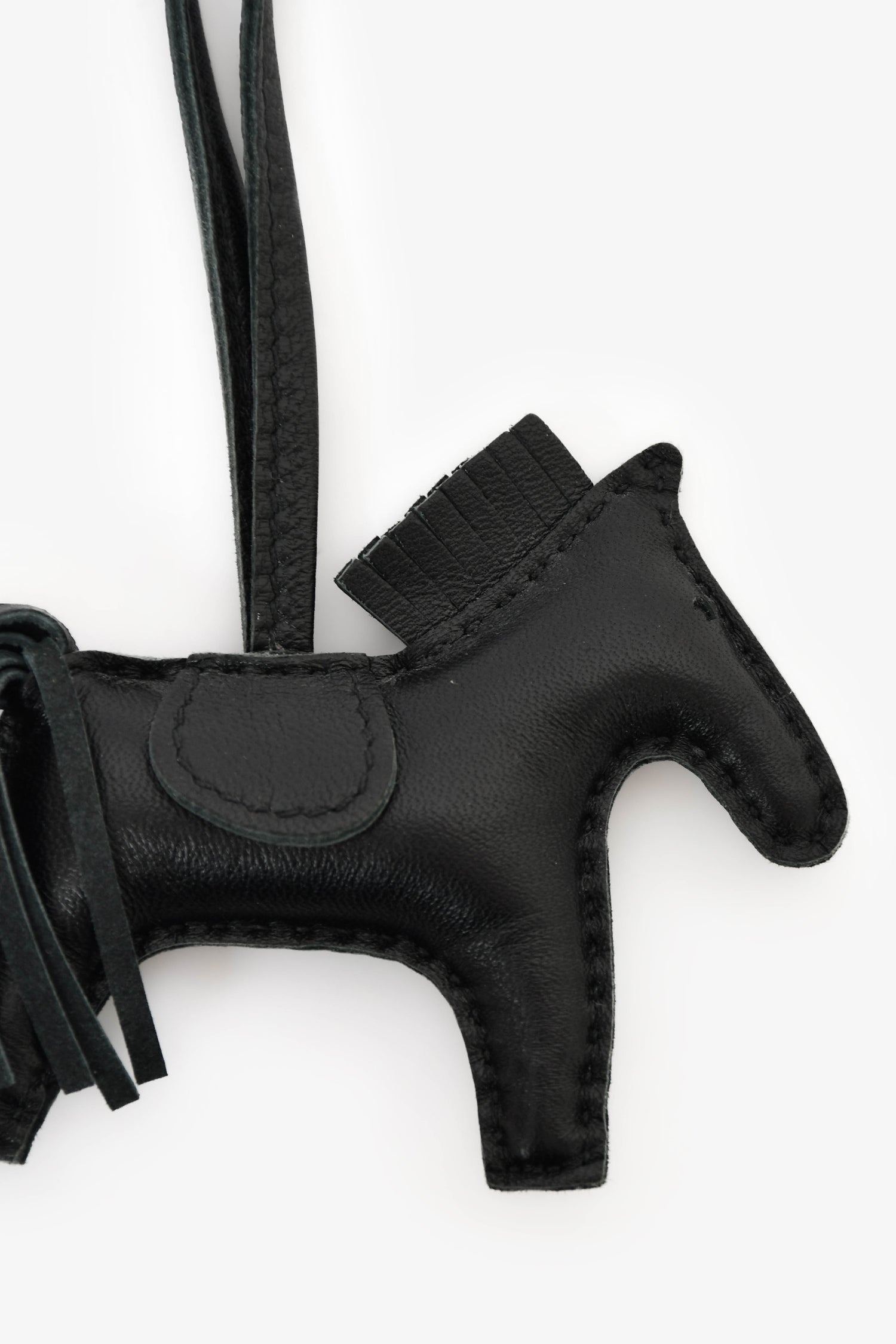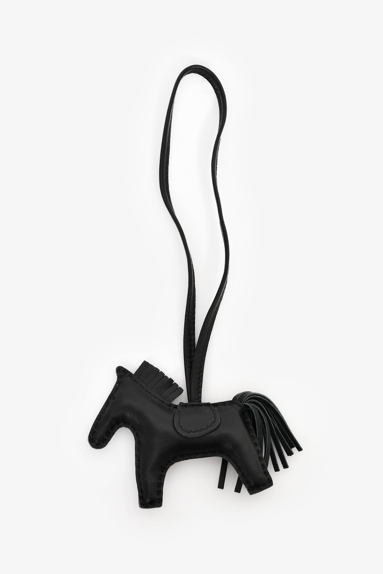 Hermès 2020 So Black Leather Rodeo PM Bag Charm. Tonal stitching.