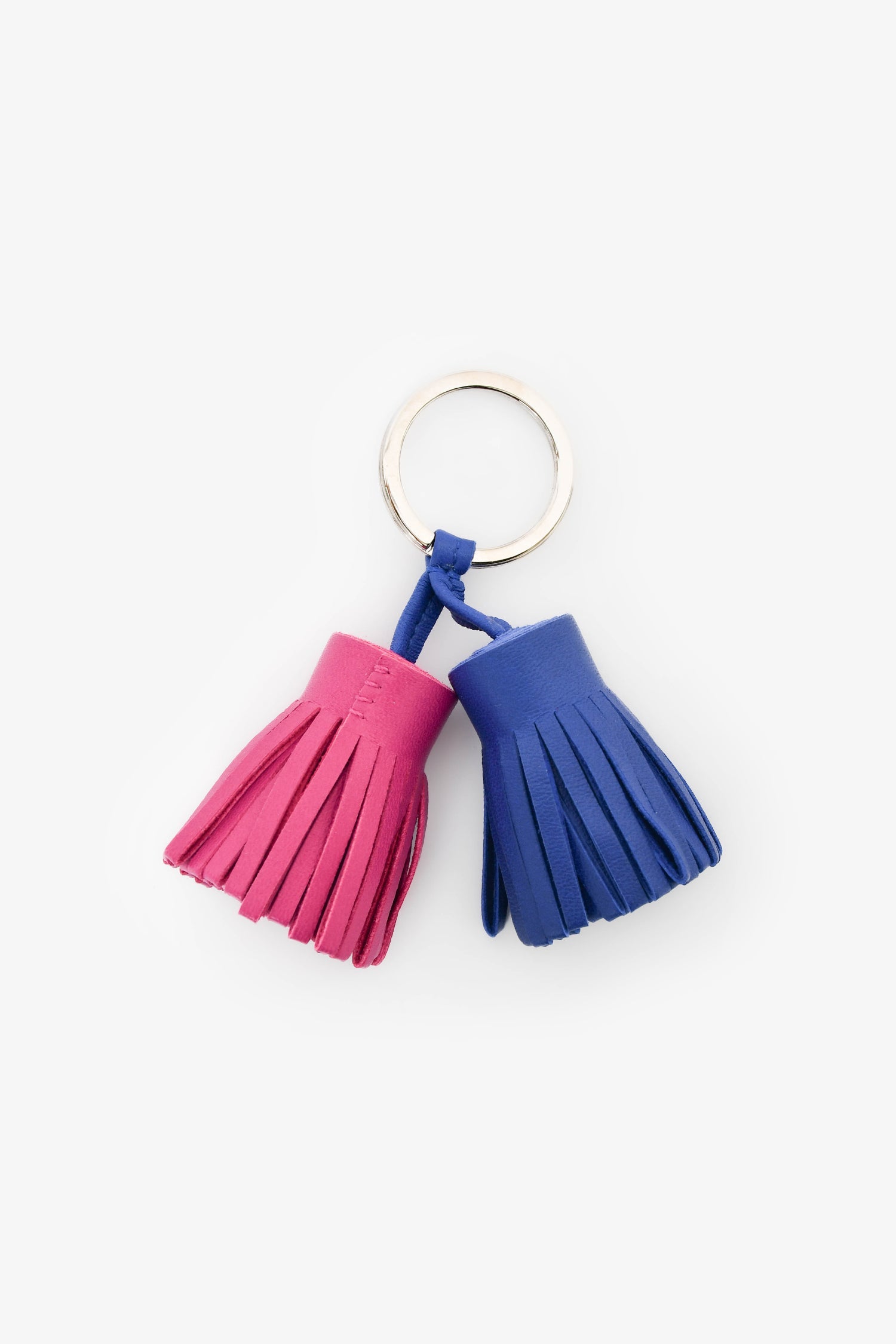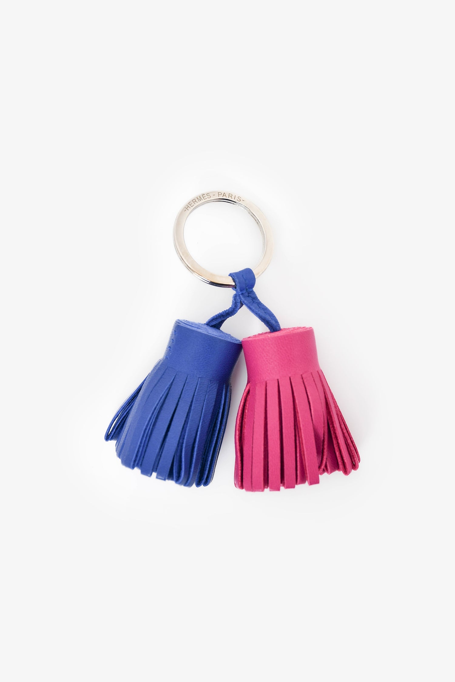 Hermès Purple/Blue Leather 'Carmen Uno-Dos' Key Ring. Silver-tone hardware. Tonal stitching.
