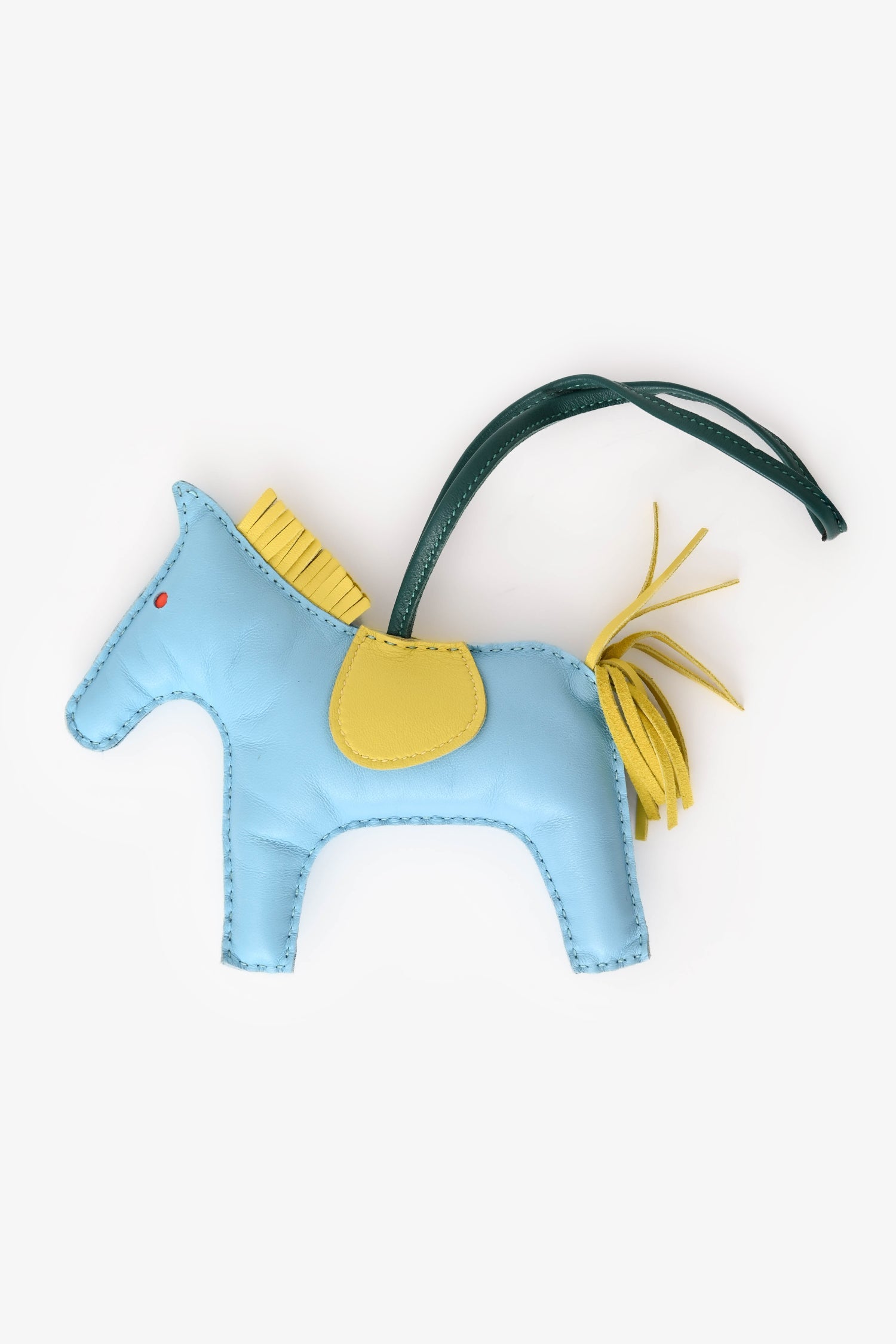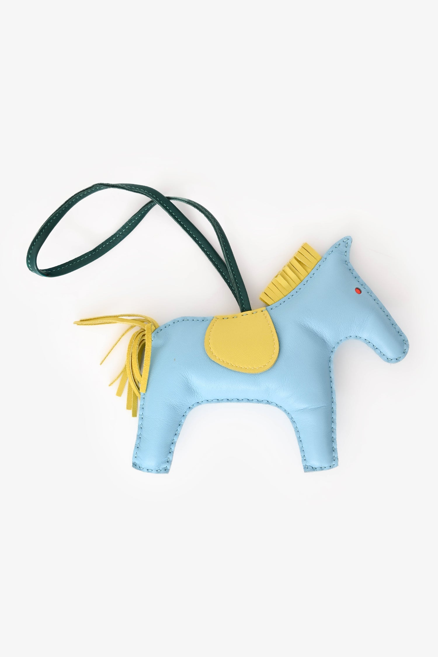 Hermès Sky Blue and Yellow Leather Rodeo GM Charm. Leather loop attachment. Tonal stitching.