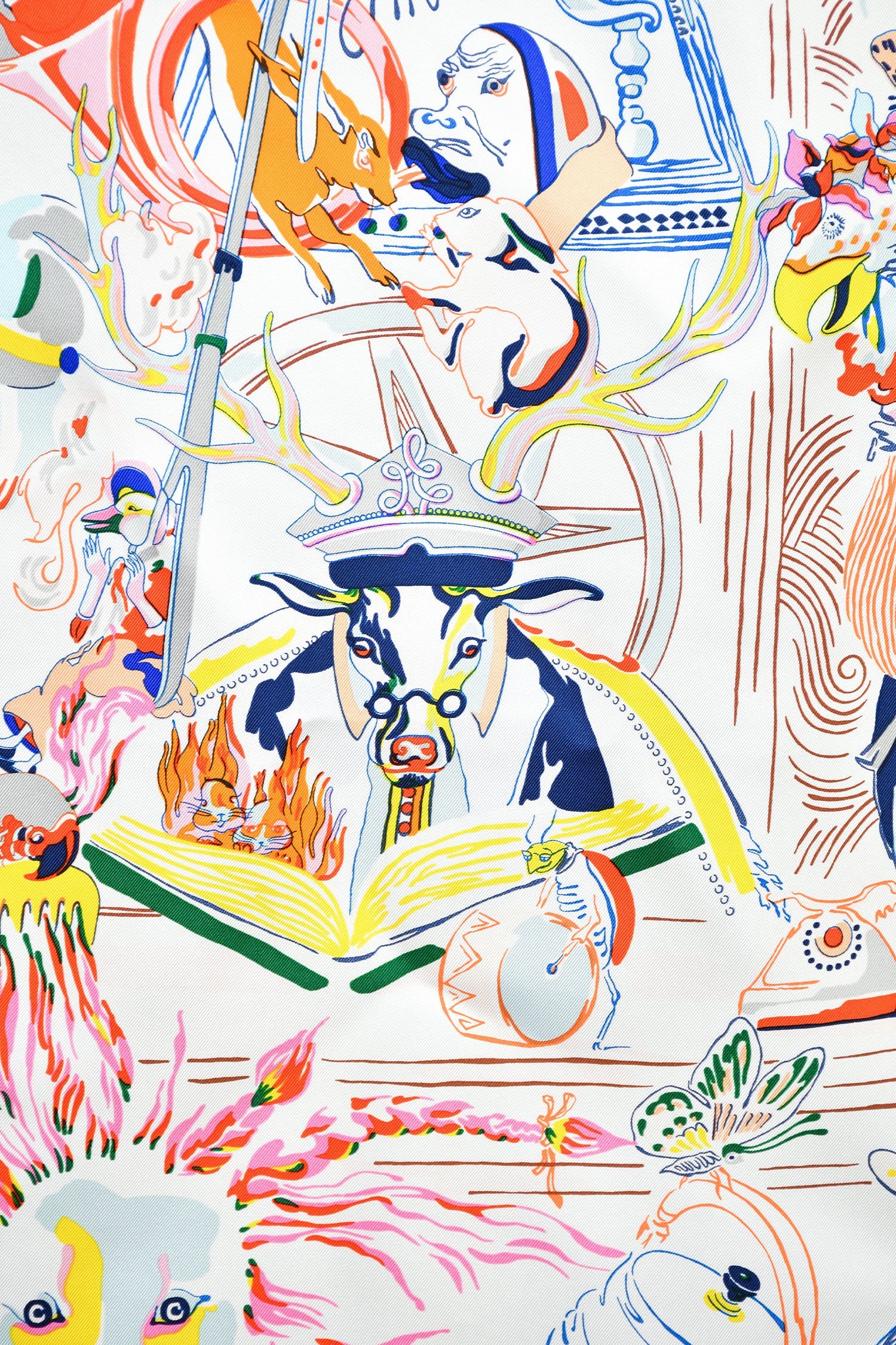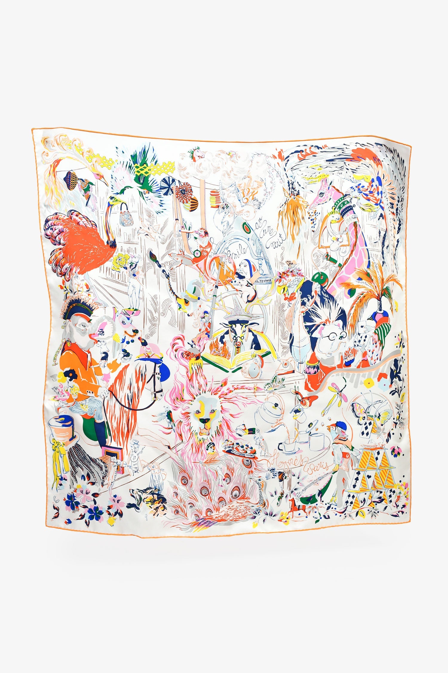 Hermes White/Orange Multicolour Silk Emile Et Une Nuit Scarf 90