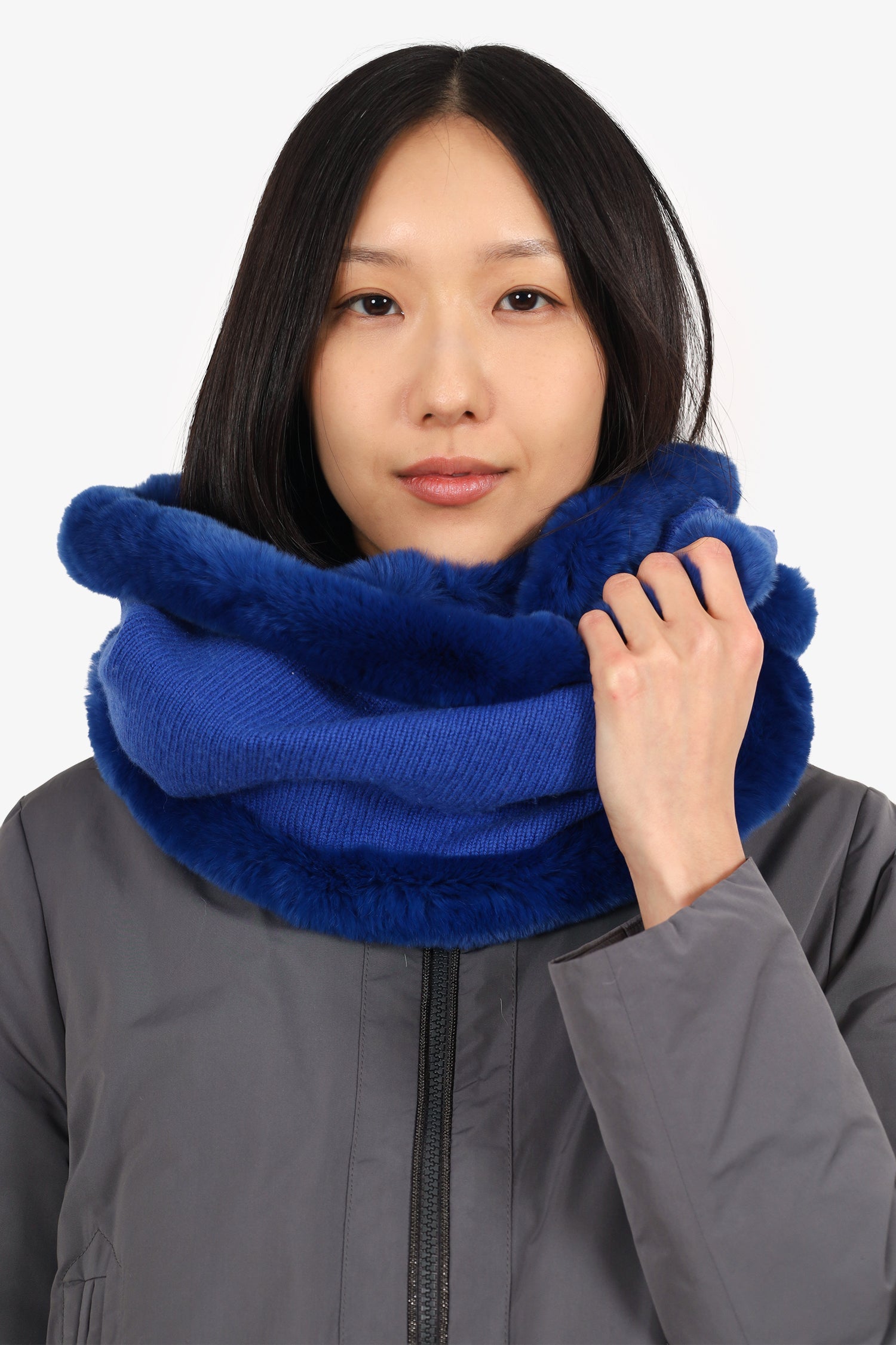 La Fiorentinan Blue Cashmere/Rabbit Scarf. Tonal stitching.