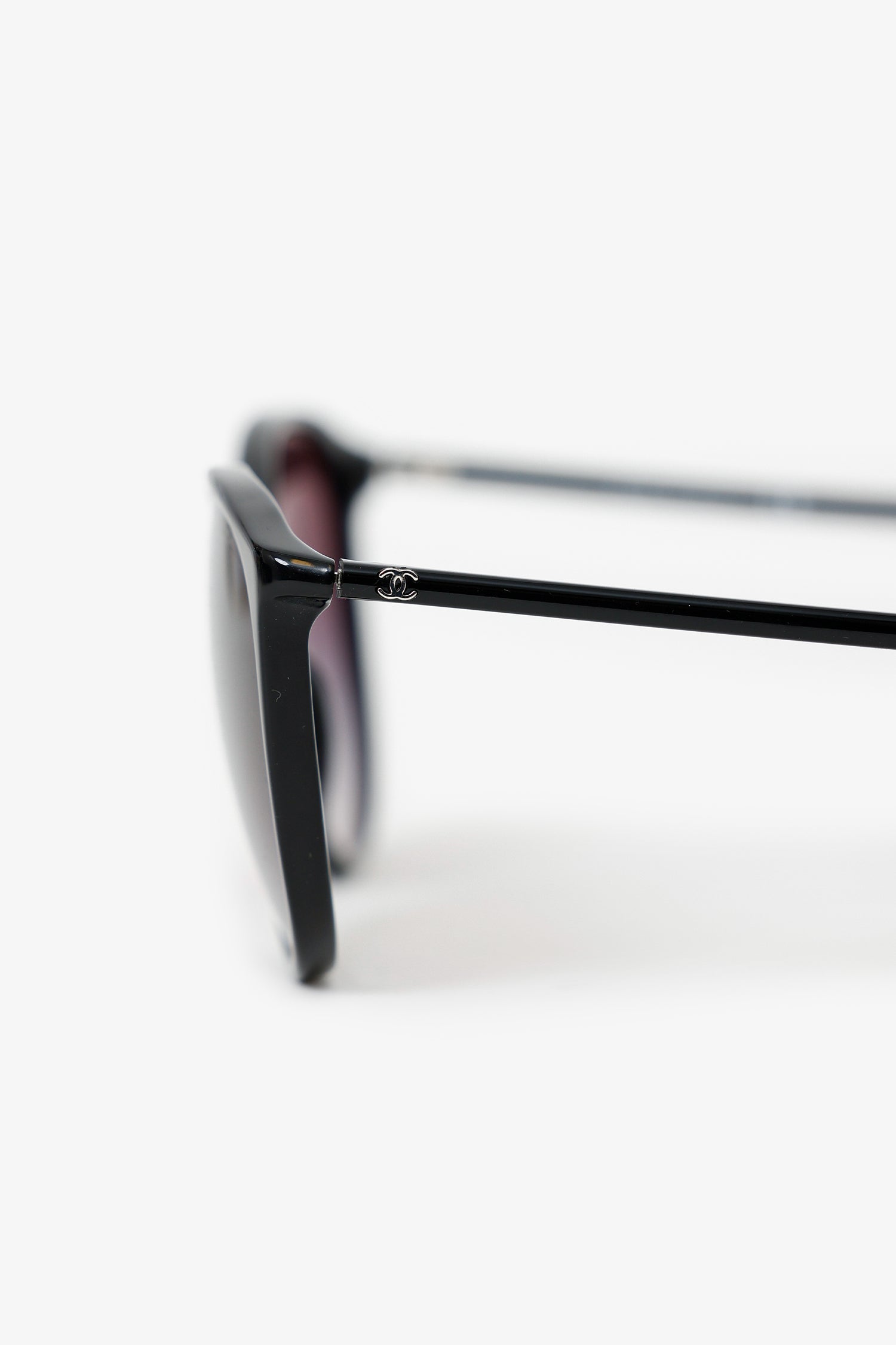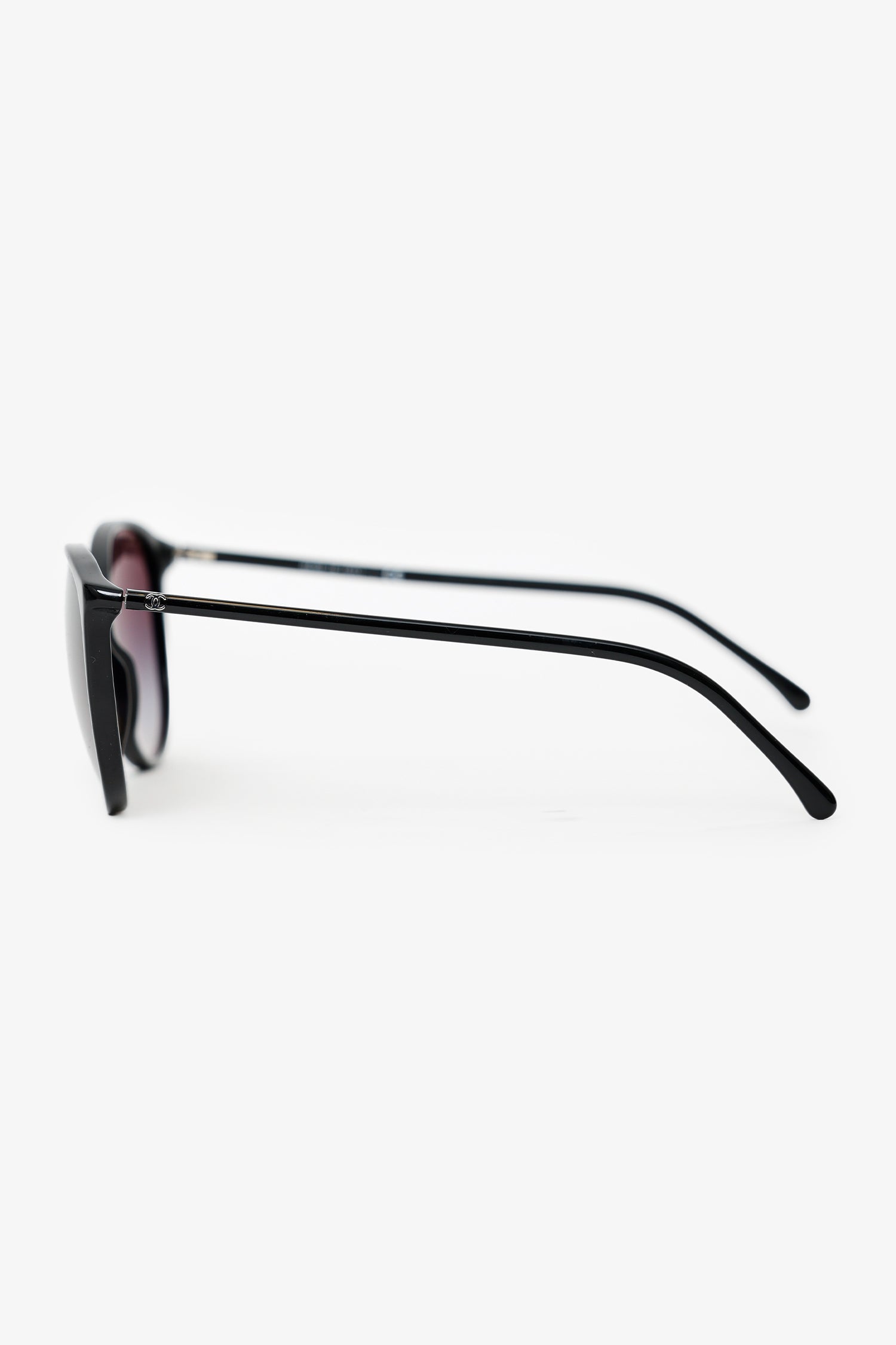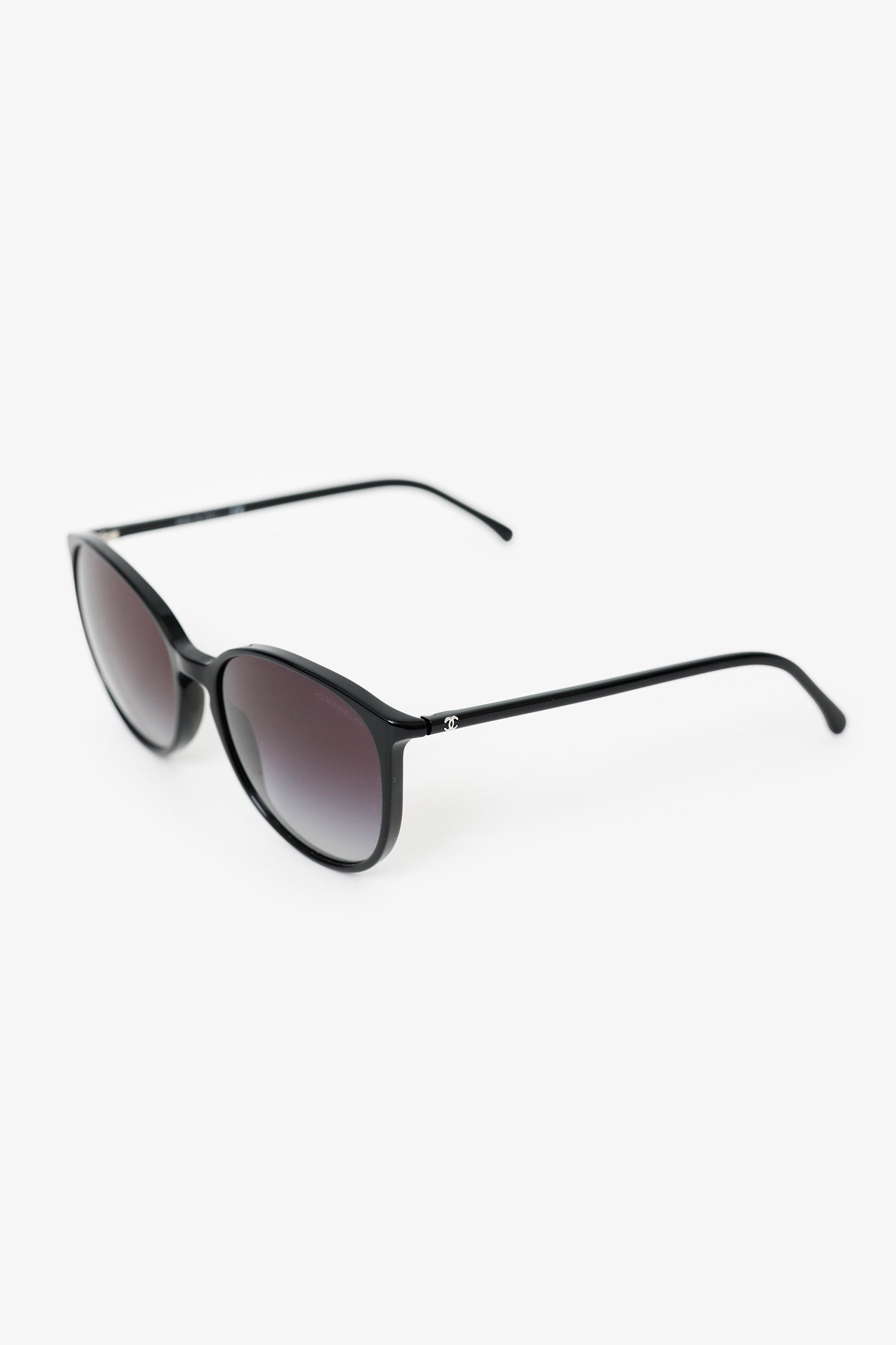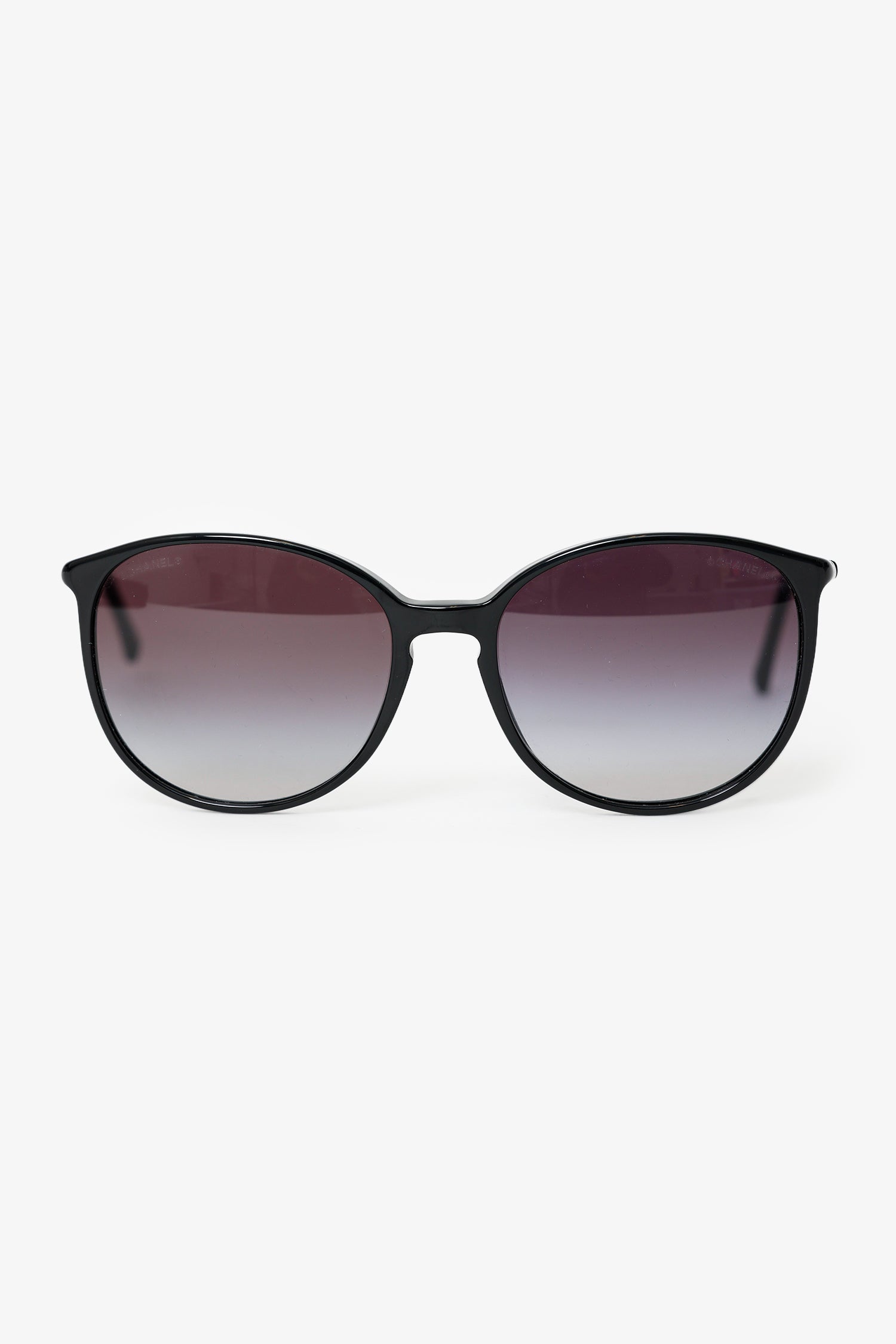Pre-Loved Chanel™ Black Frame Interlocking CC Logo Round Sunglasses