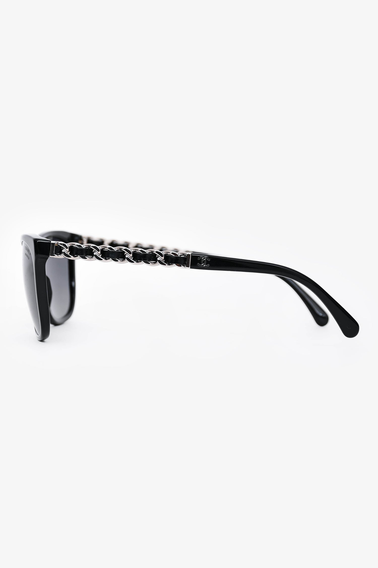 Pre-Loved Chanel™ Black Frame Wayfarer Leather Chain CC Polarized Sunglasses