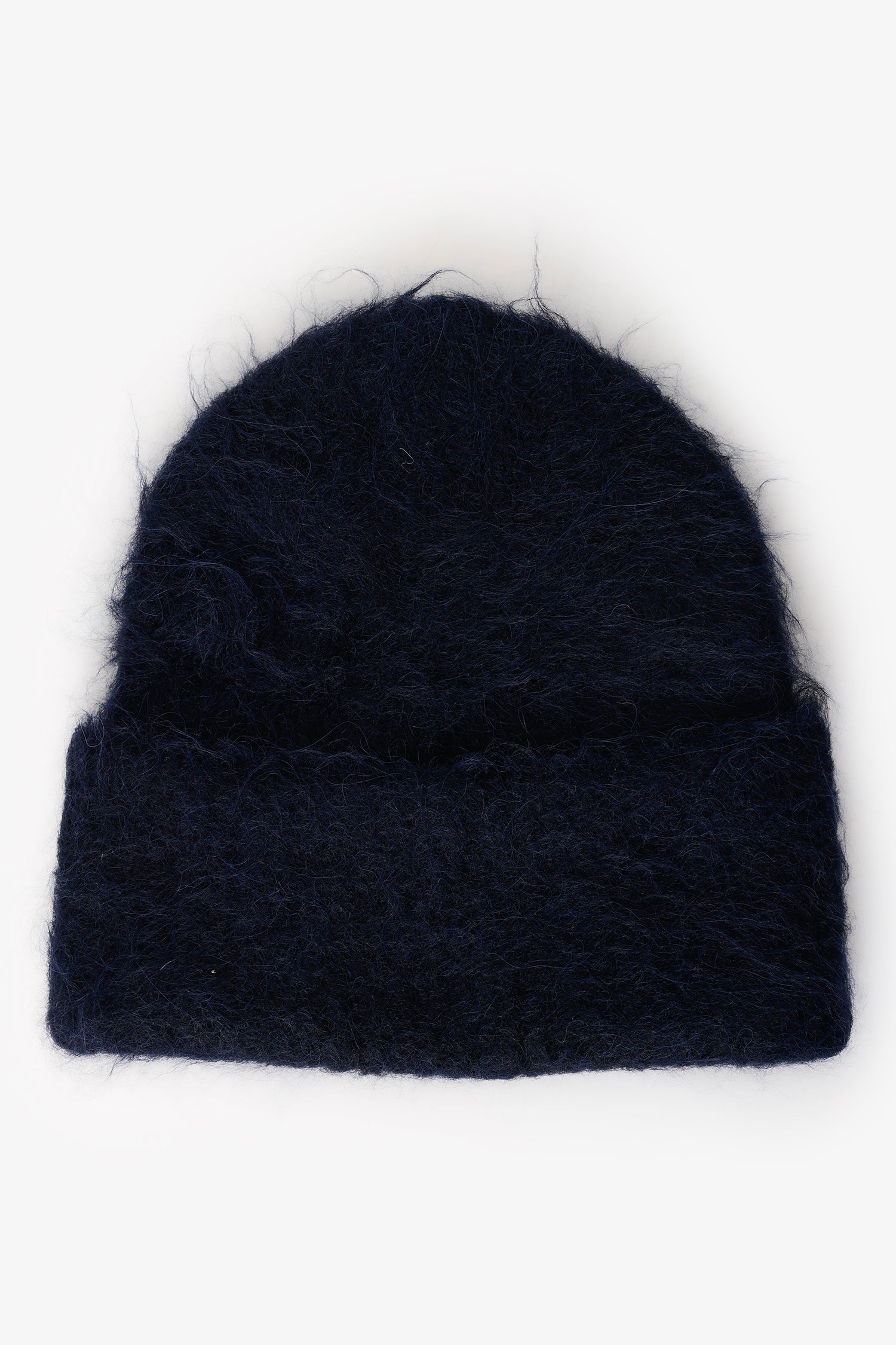 Toteme Navy Alpaca Knit Beanie. Tonal stitching.