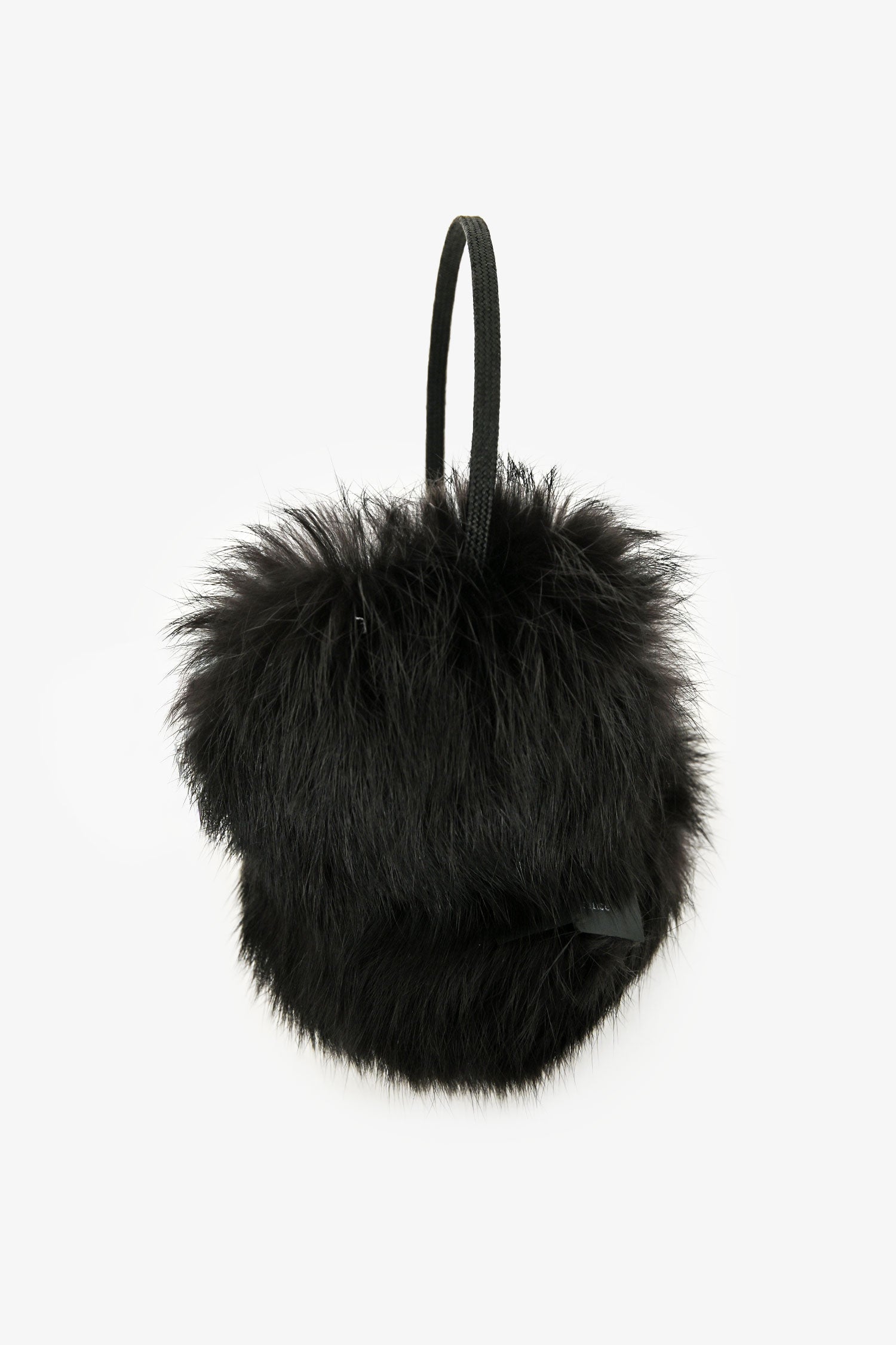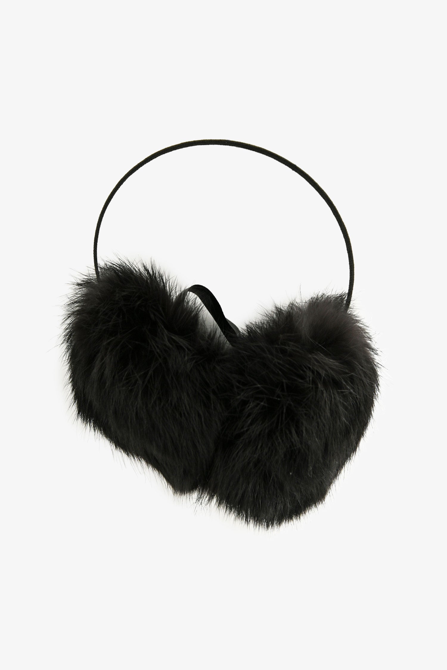 Yves Salomon Black Rabbit Fur Earmuffs. Tonal stitching.