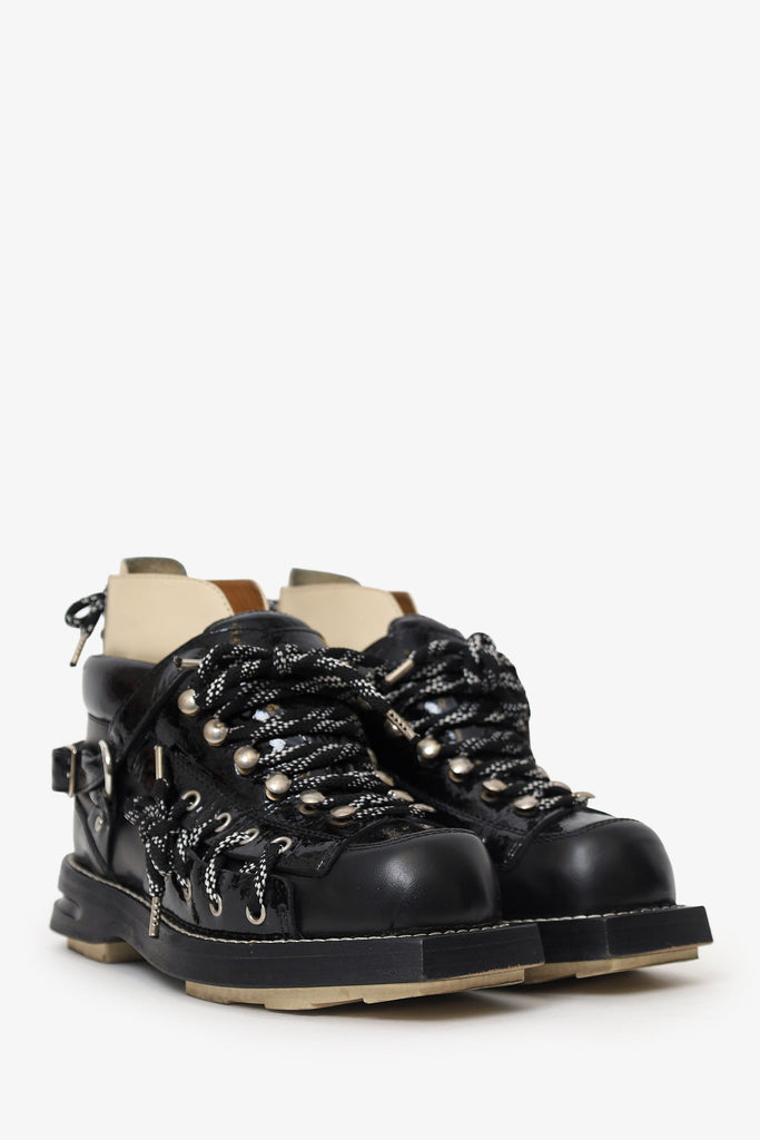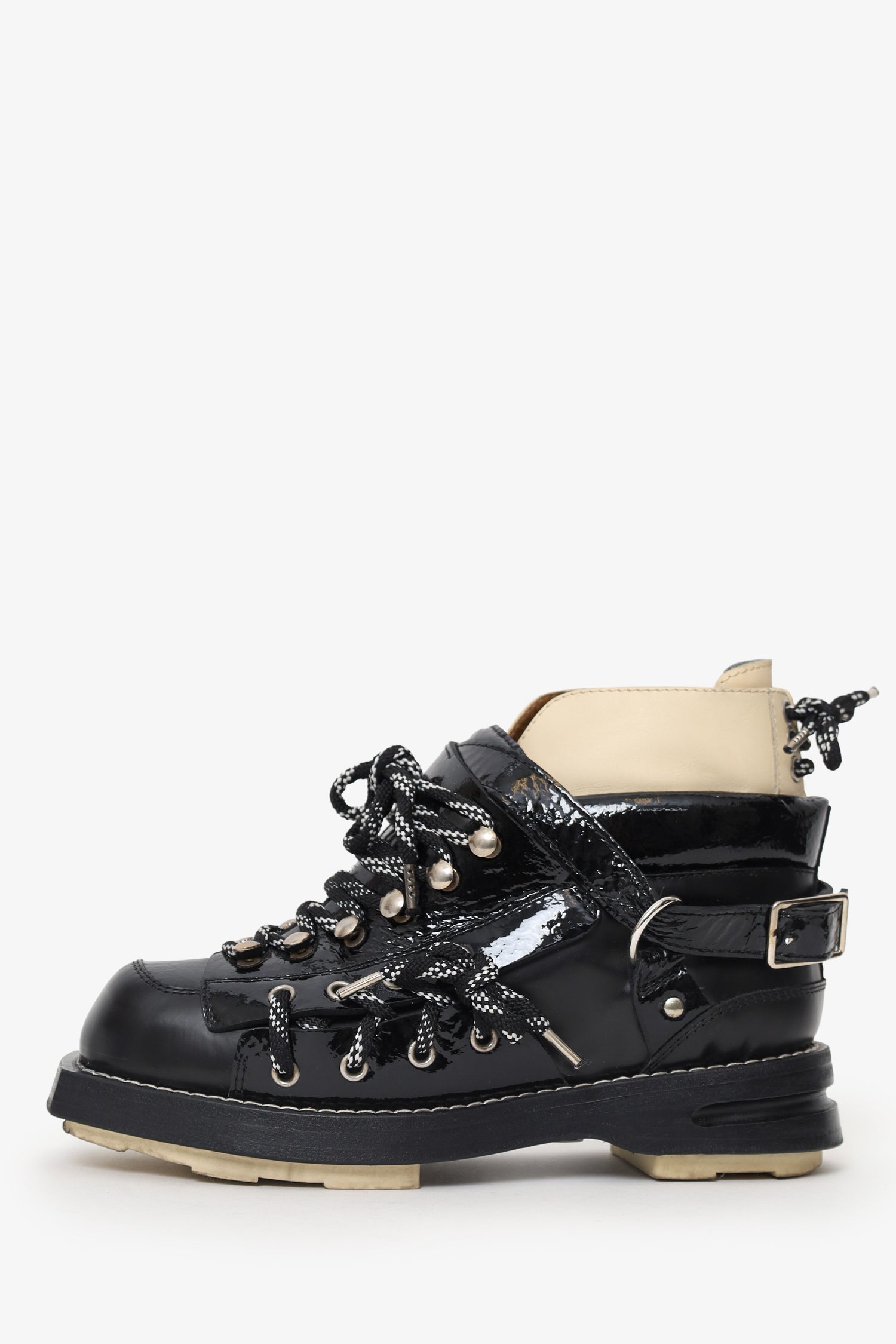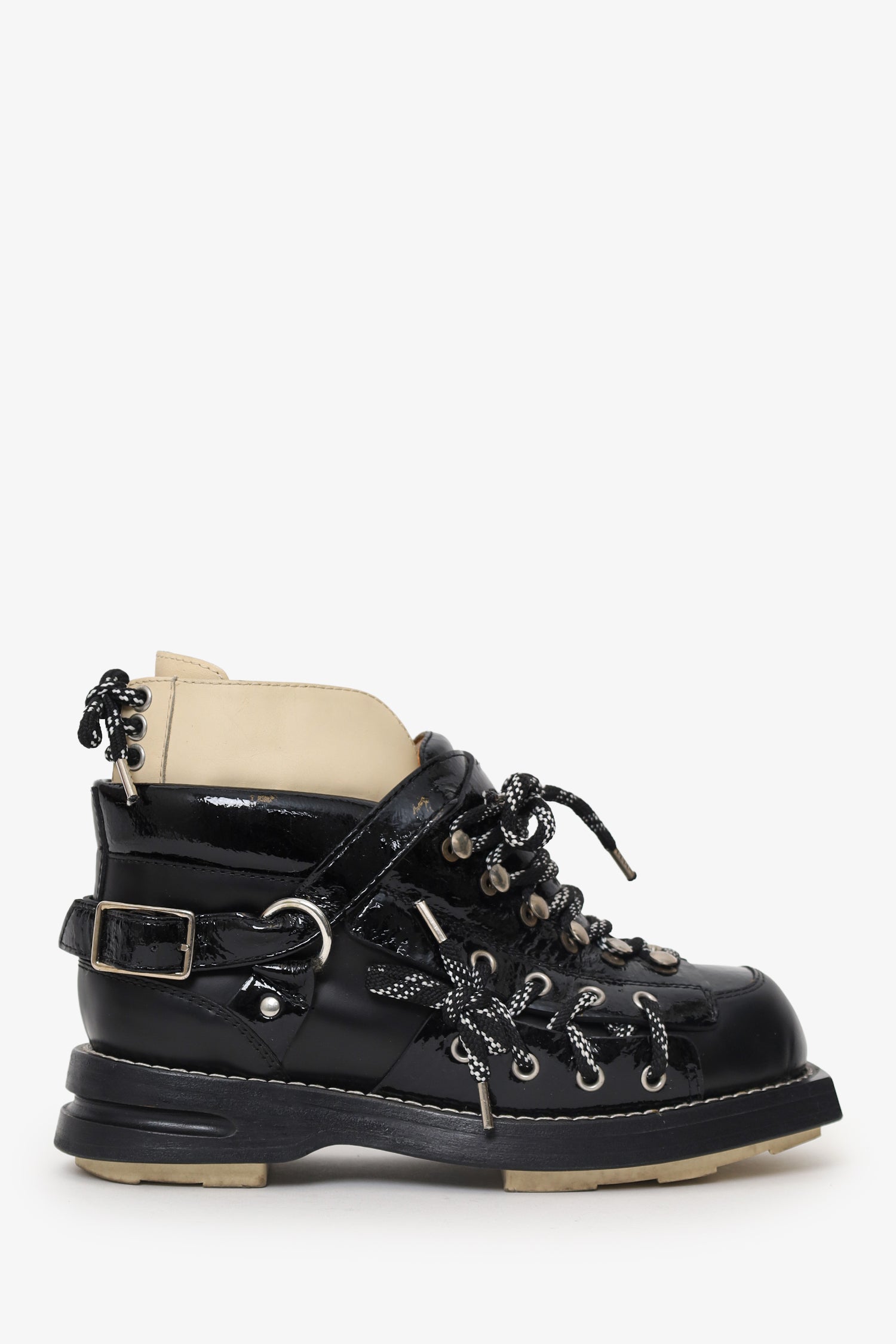 Acne Studios Black Patent Leather Mountaineering Boots Size 37