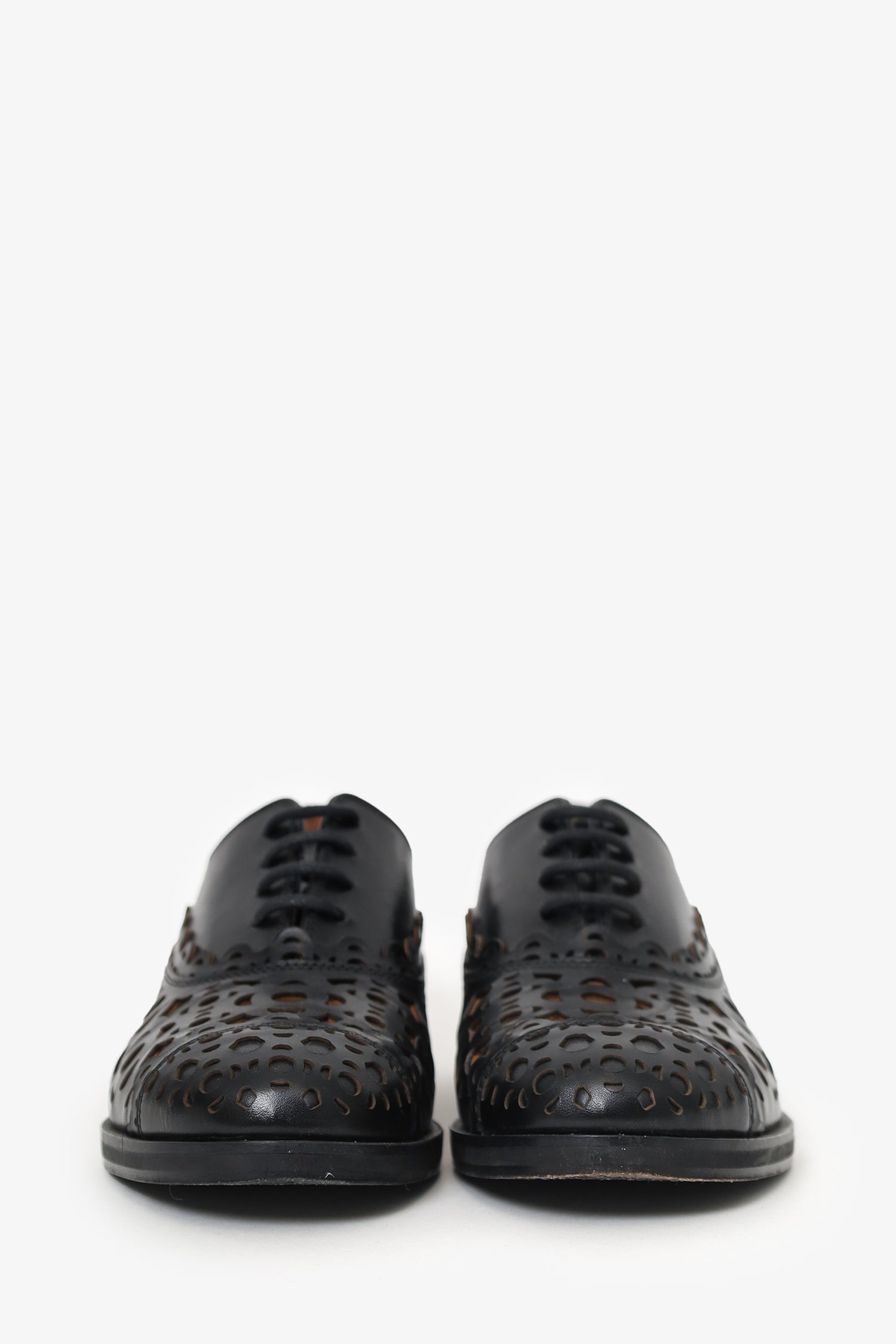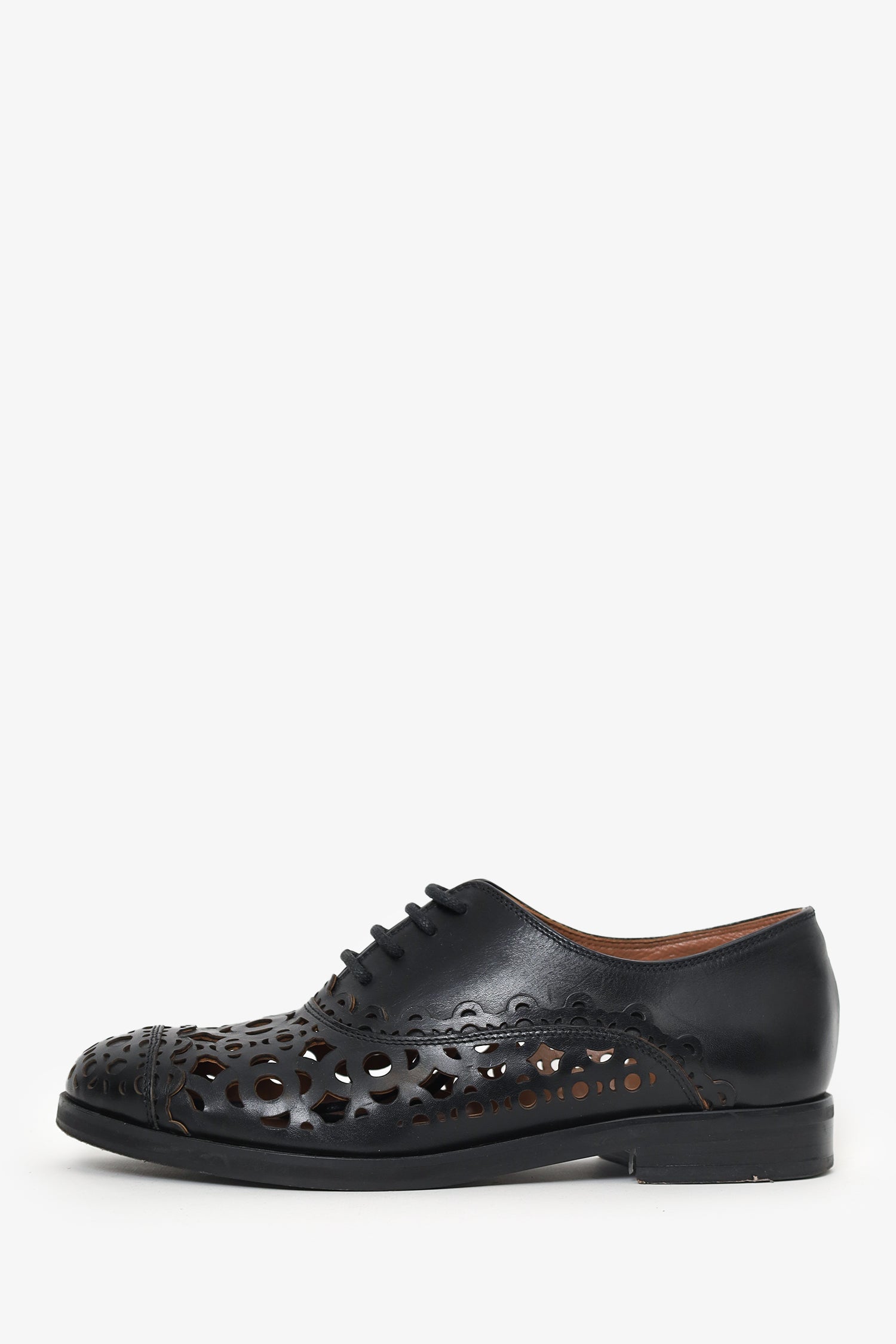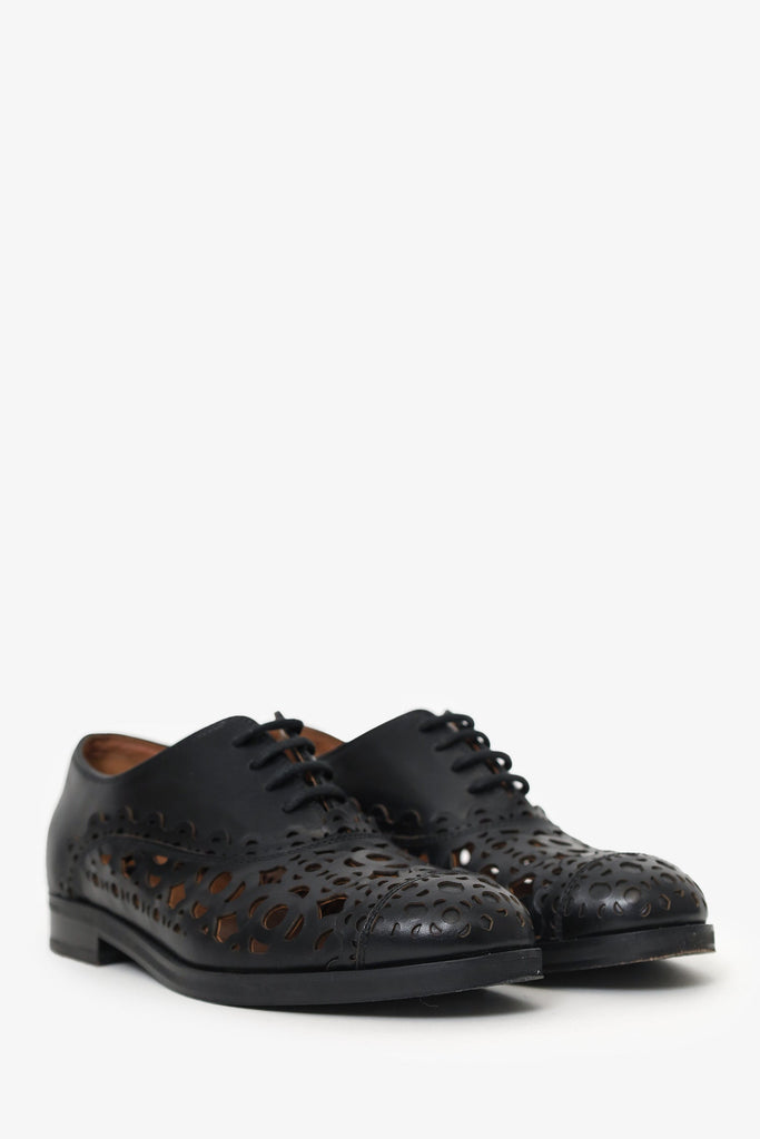 Alaïa Black Leather Laser Cut-out Oxford Size 36