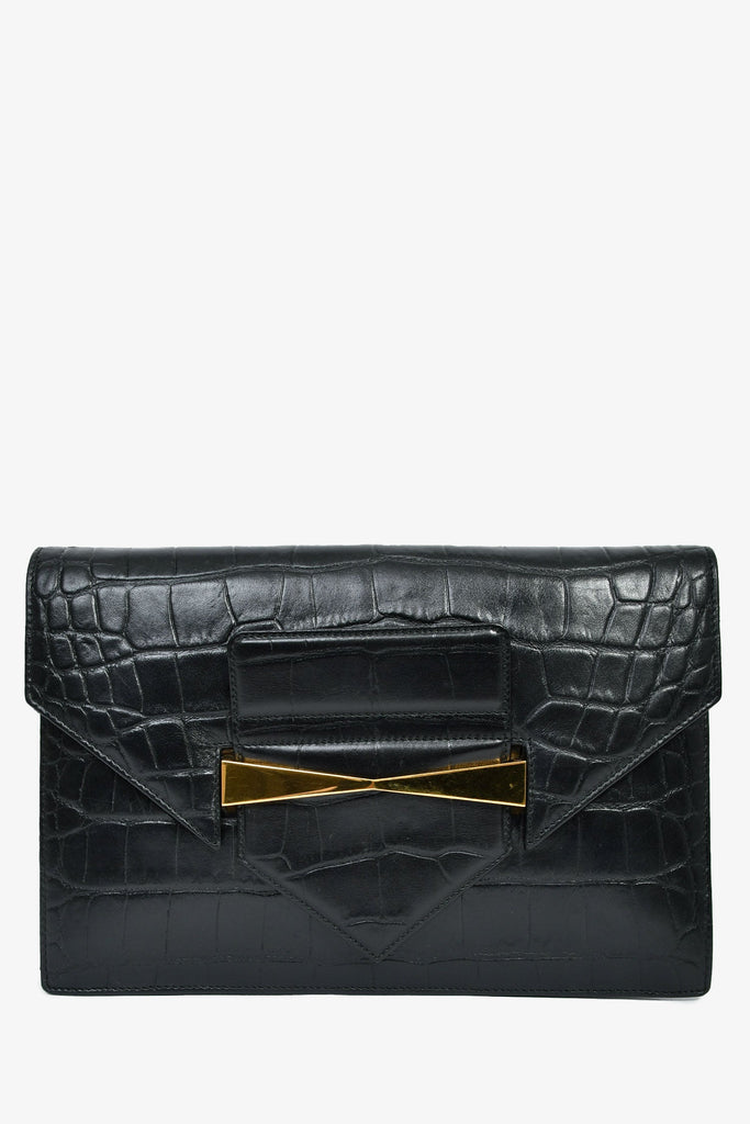 Alexander McQueen Black Croc Effect Leather Envelope Clutch