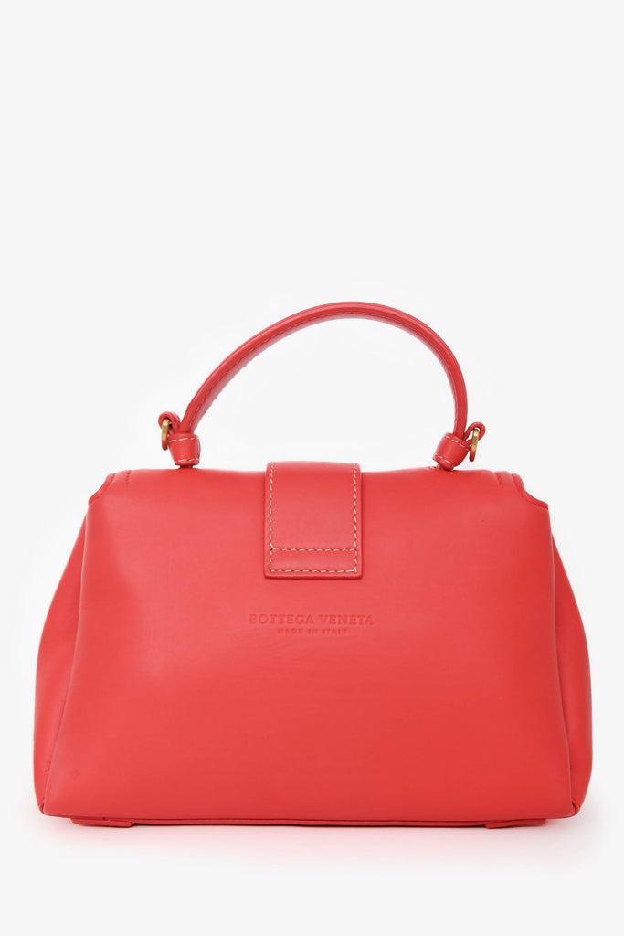 Bottega Veneta Red Intrecciato Leather Piazza Top Handle Bag with Strap