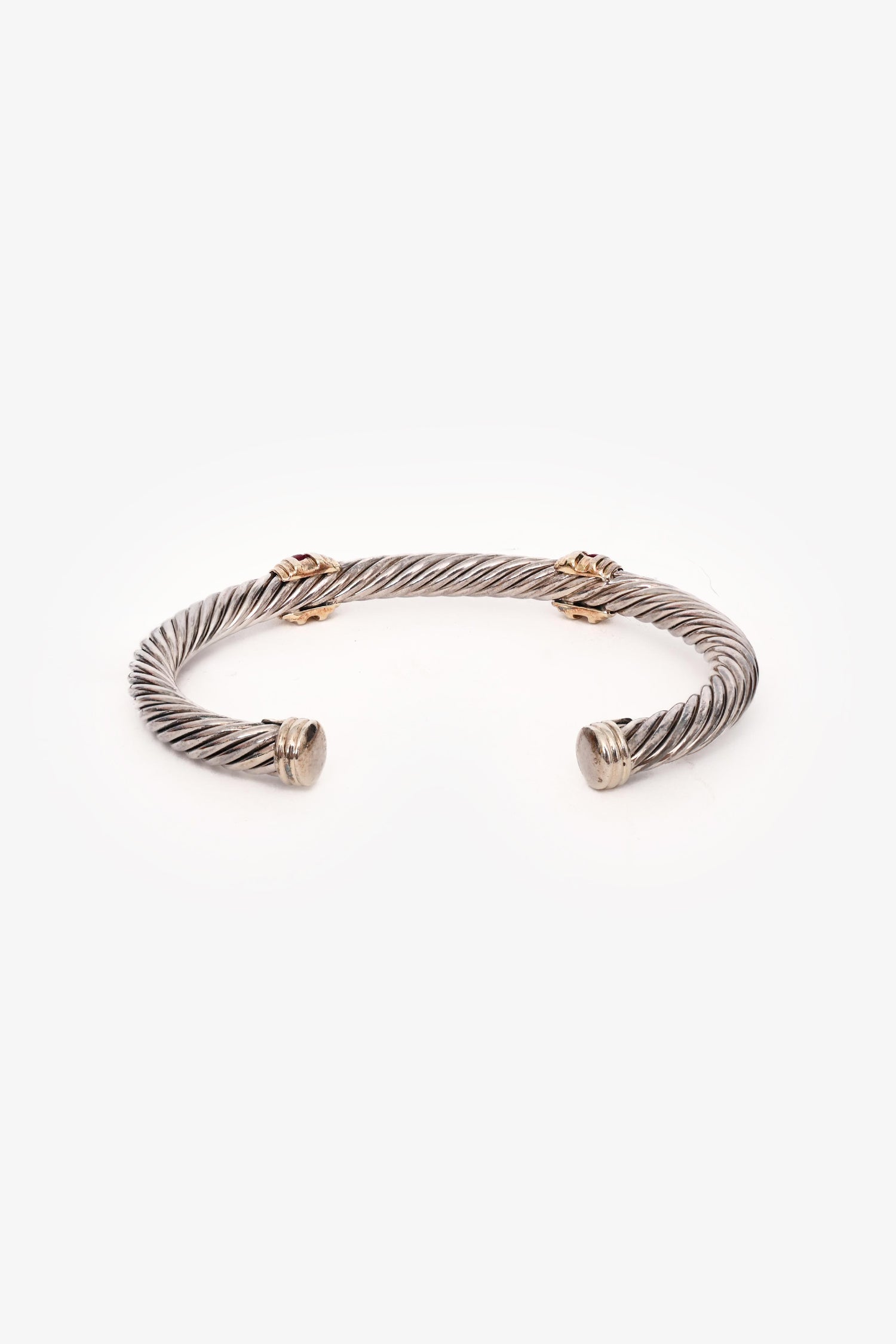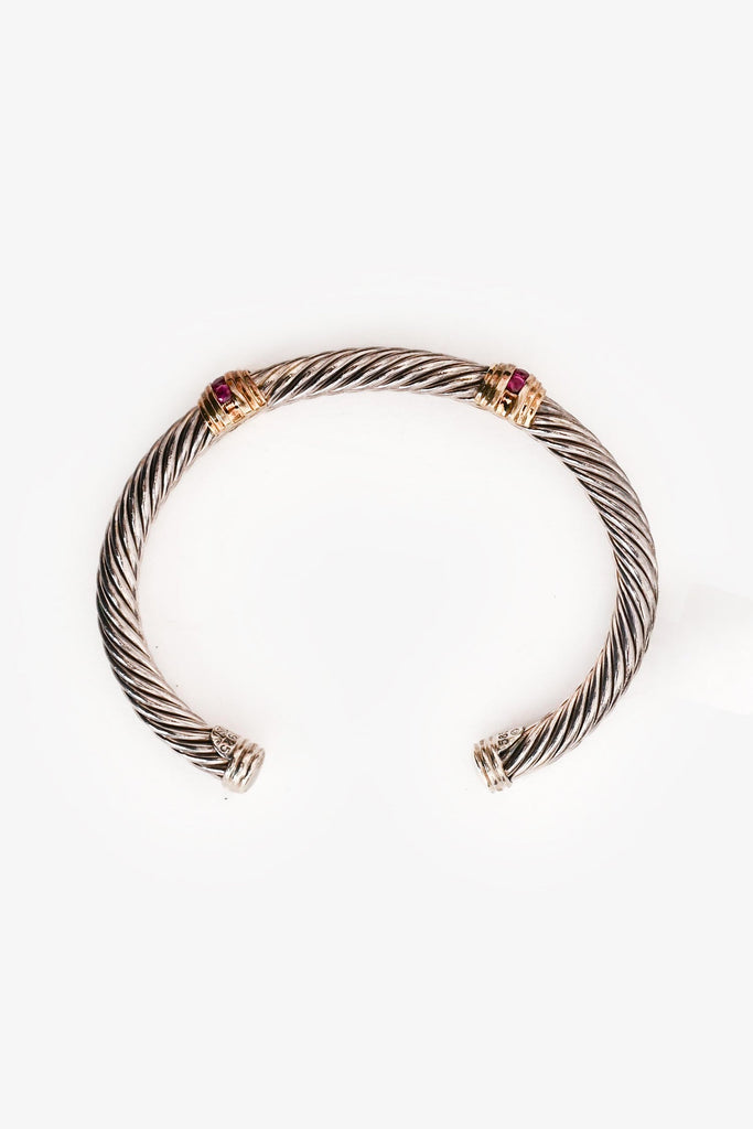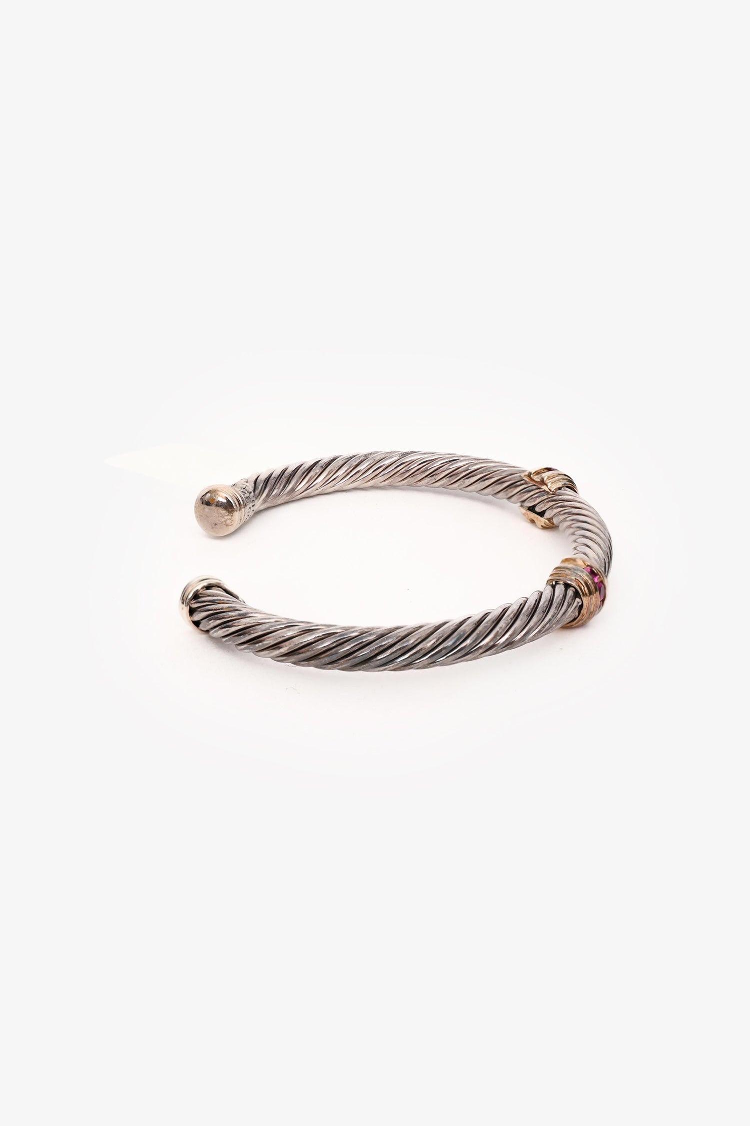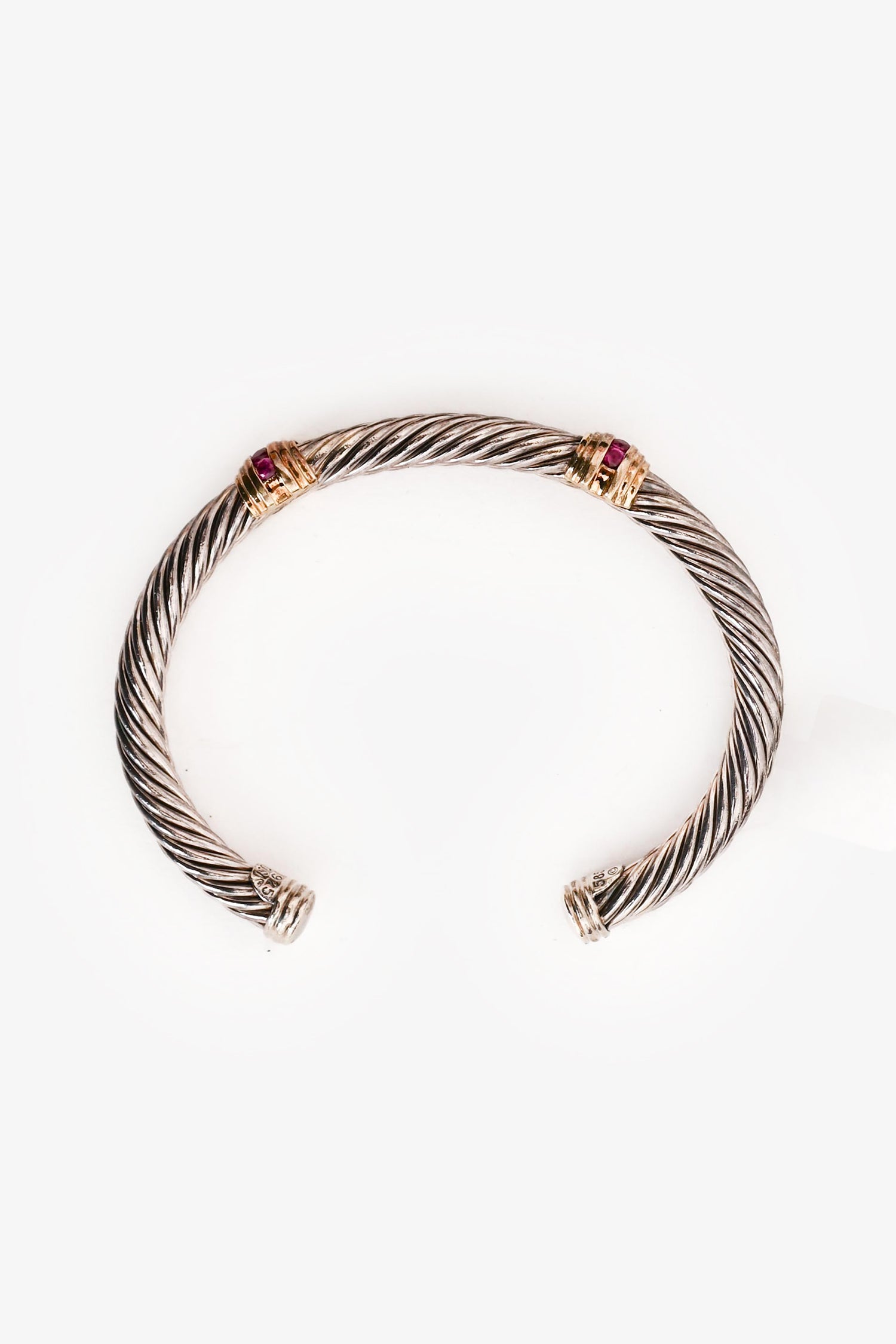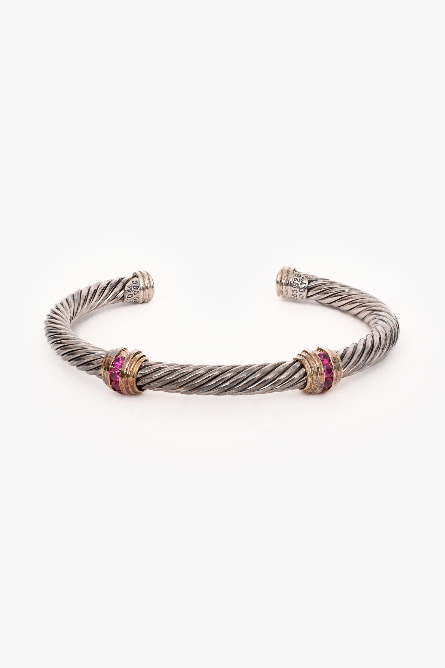 David Yurman Sterling Silver/Pink Sapphire 4mm Cable Bracelet