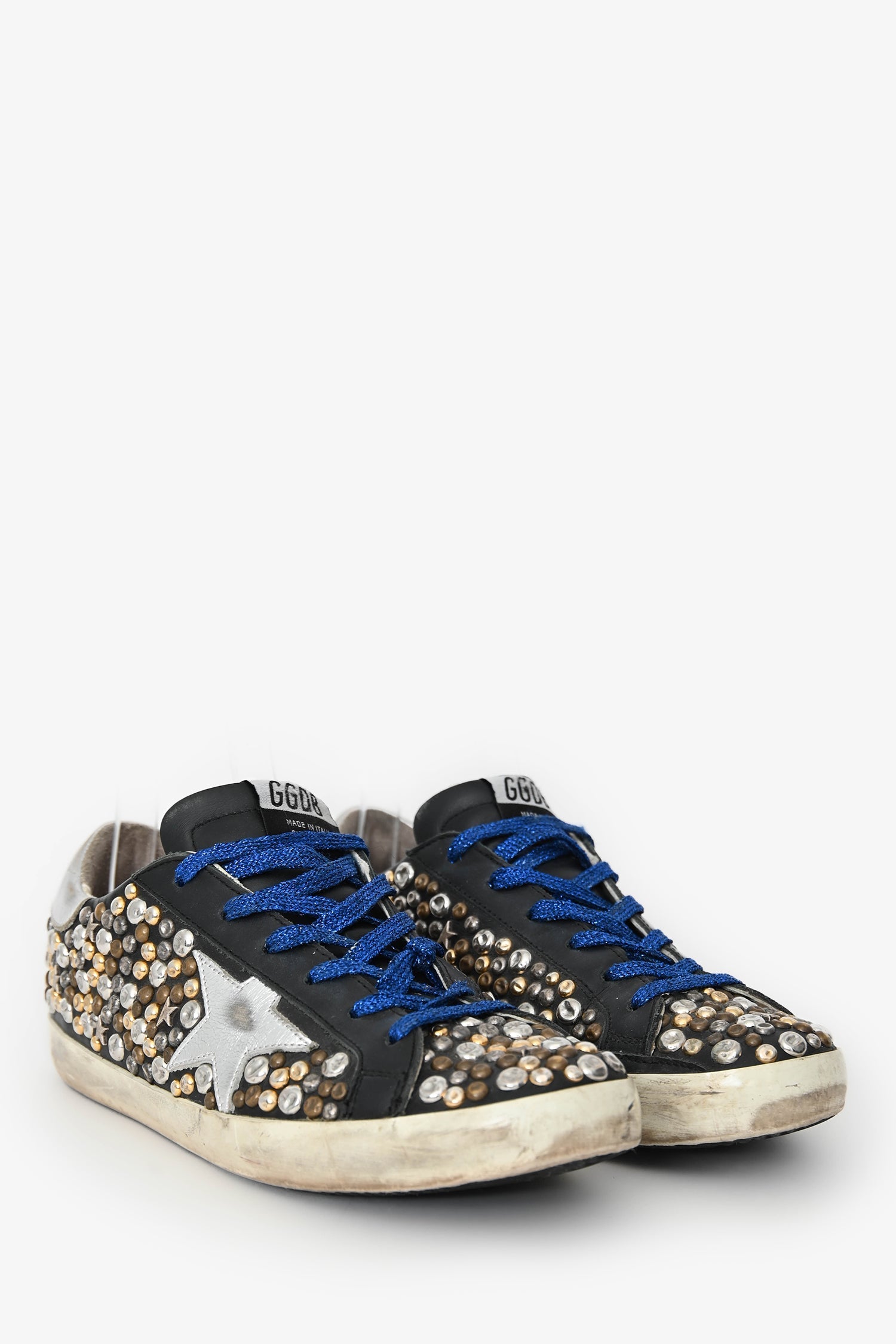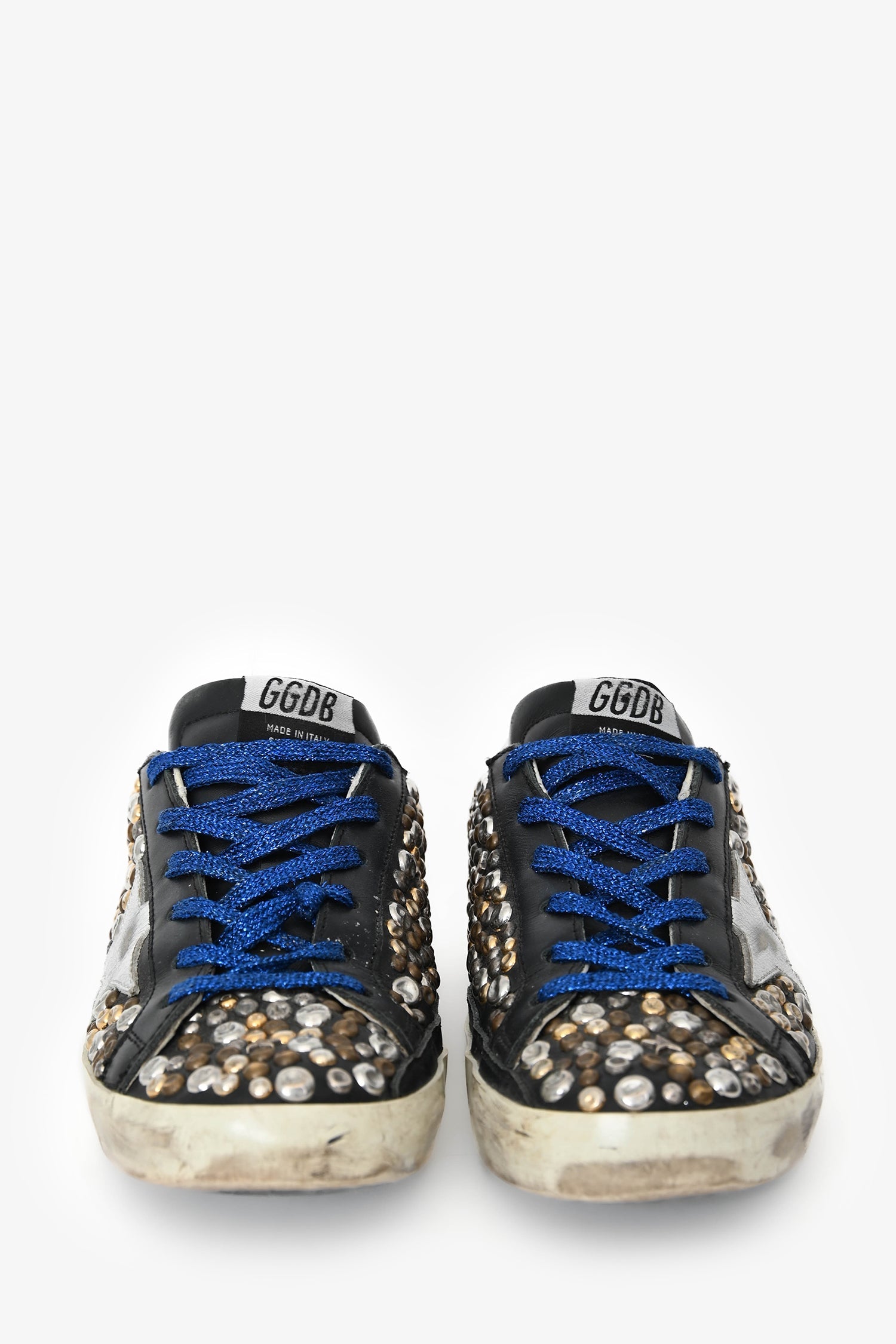 Golden Goose Black Leather Metallic Stud Sneakers Size 39