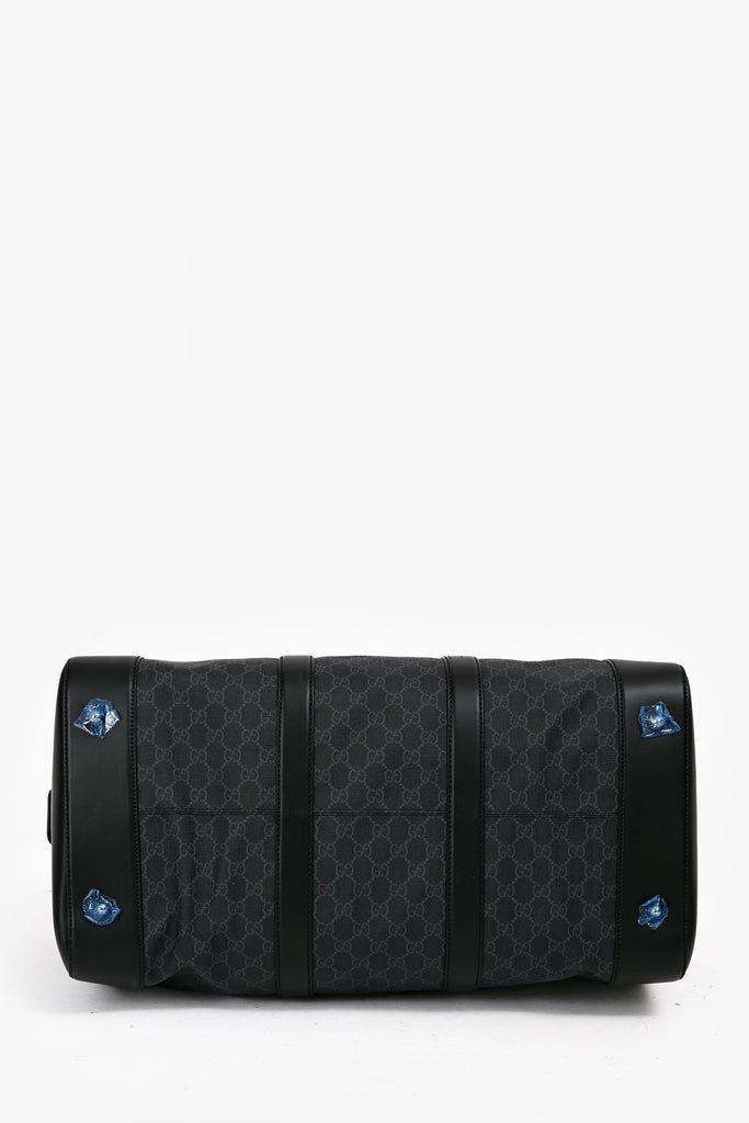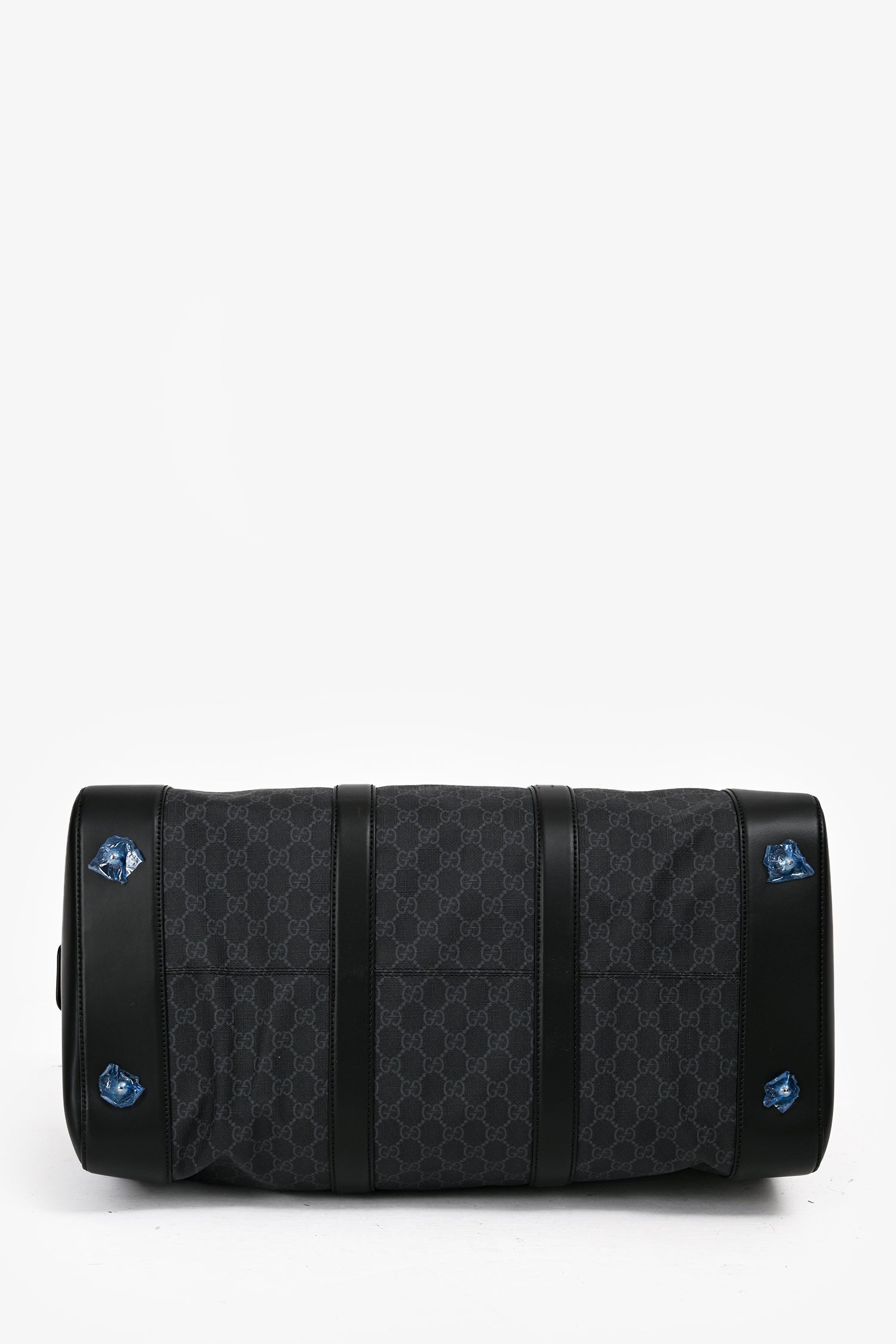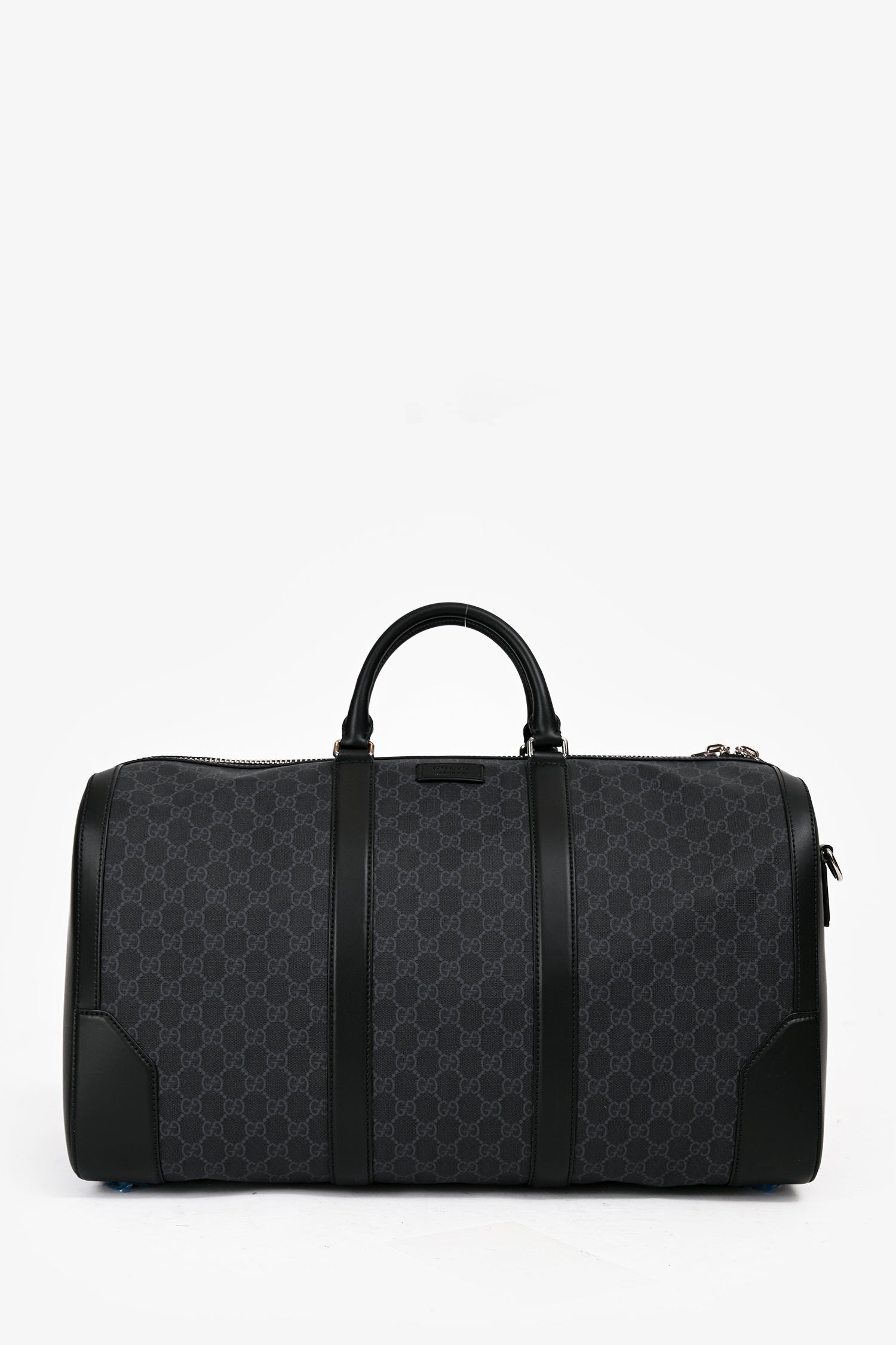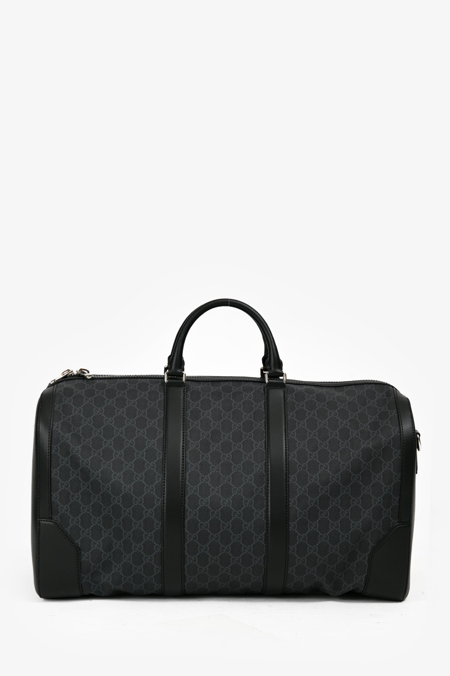 Gucci Black GG Supreme Canvas Leather Trimmed Large Duffle Bag with Web Canvas Shoulder Strap