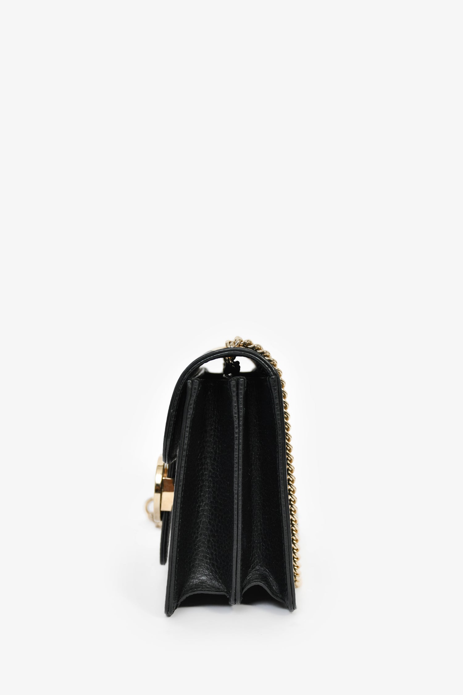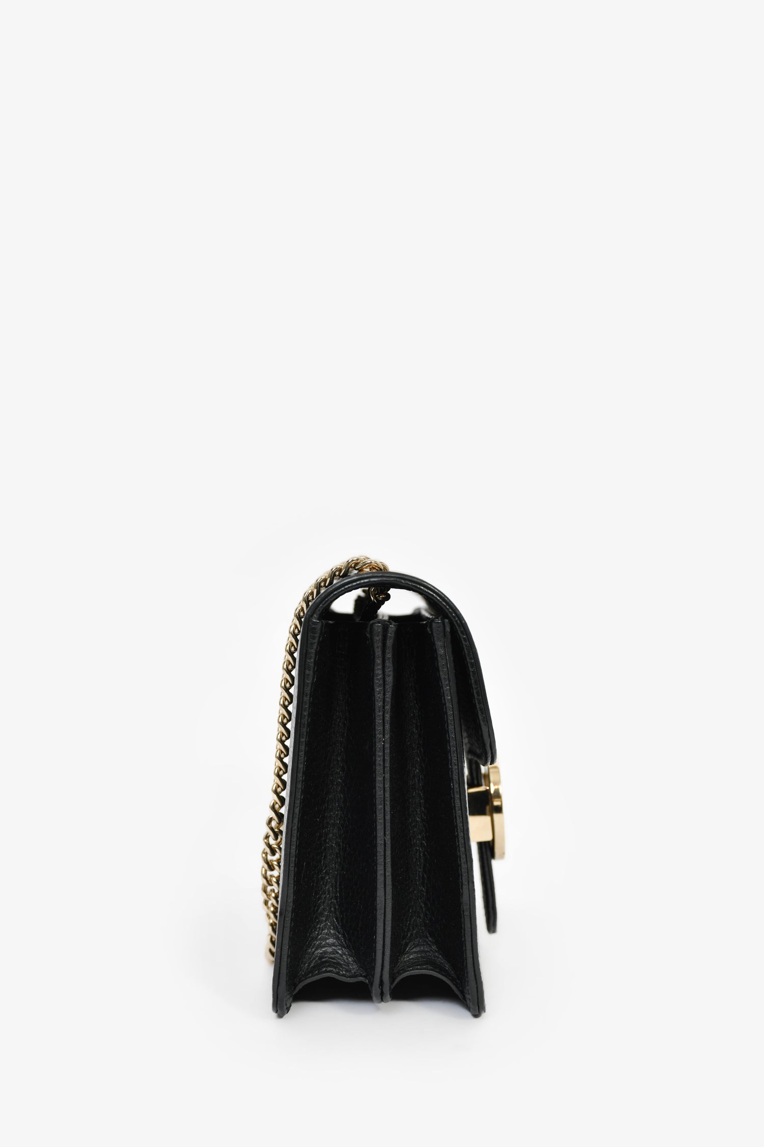 Gucci Black Leather GG Interlocking Small Chain Crossbody Bag