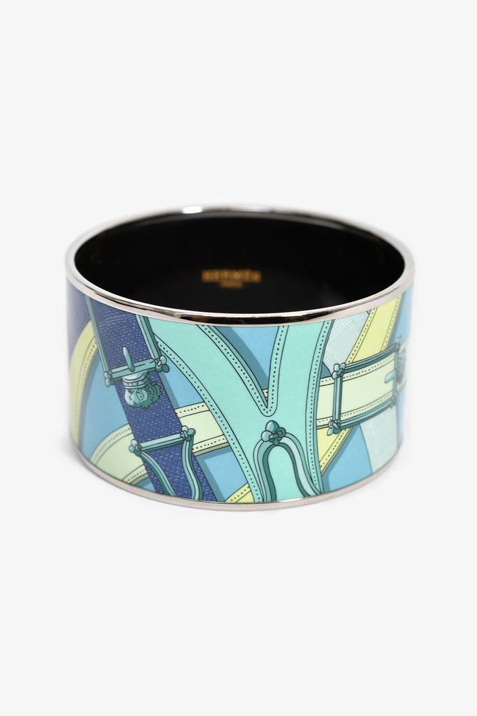 Hermes Turquoise Palladium 'Cavalcadour' Extra Wide Bangle