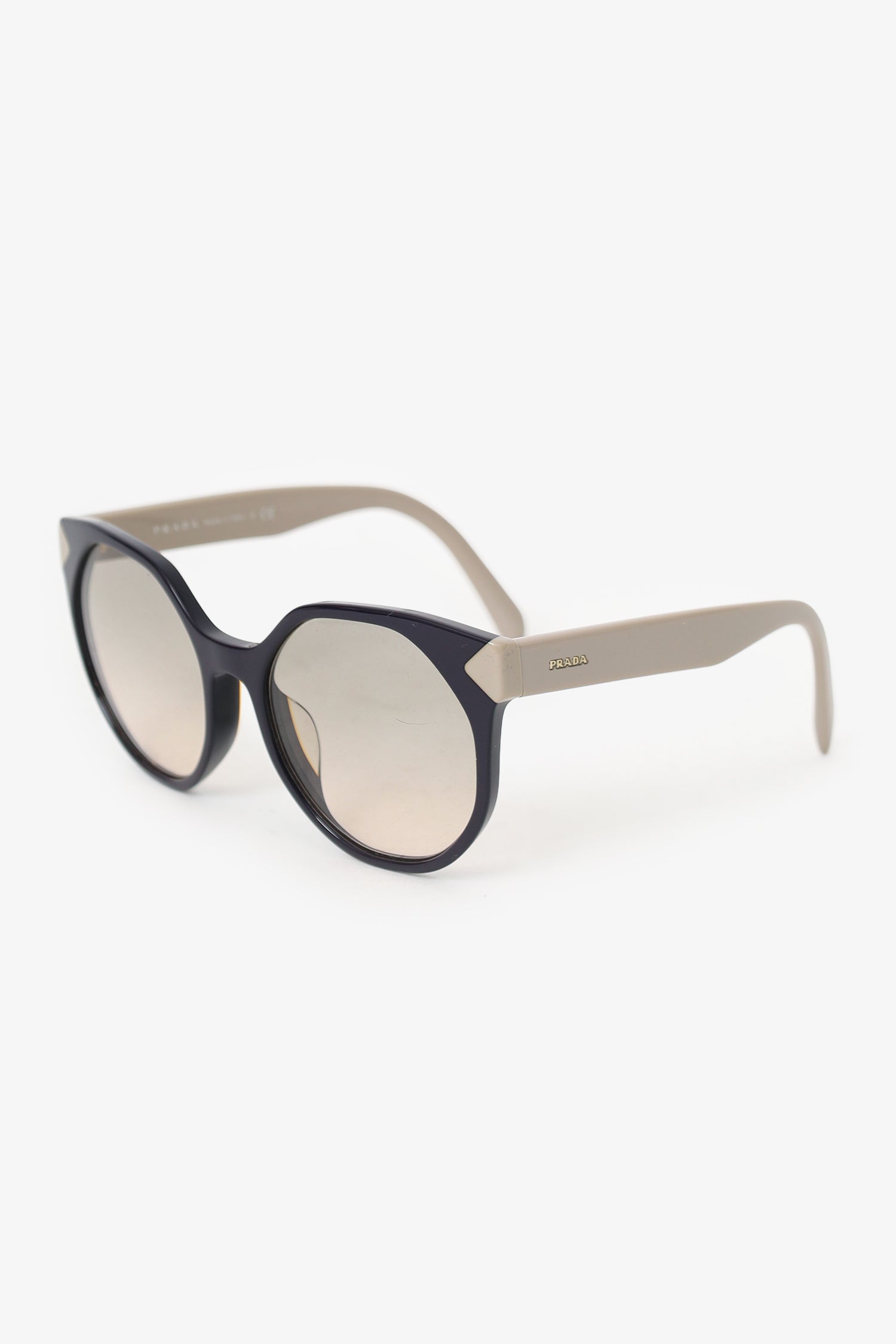 Prada Purple/Grey Oversized Sunglasses. Built-in nose pads. Gold-tone hardware.