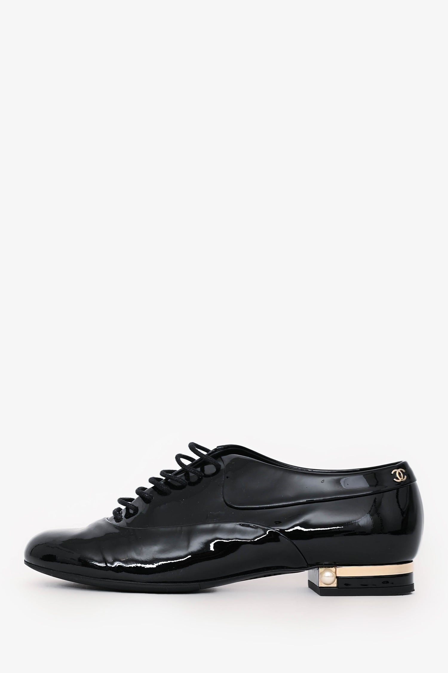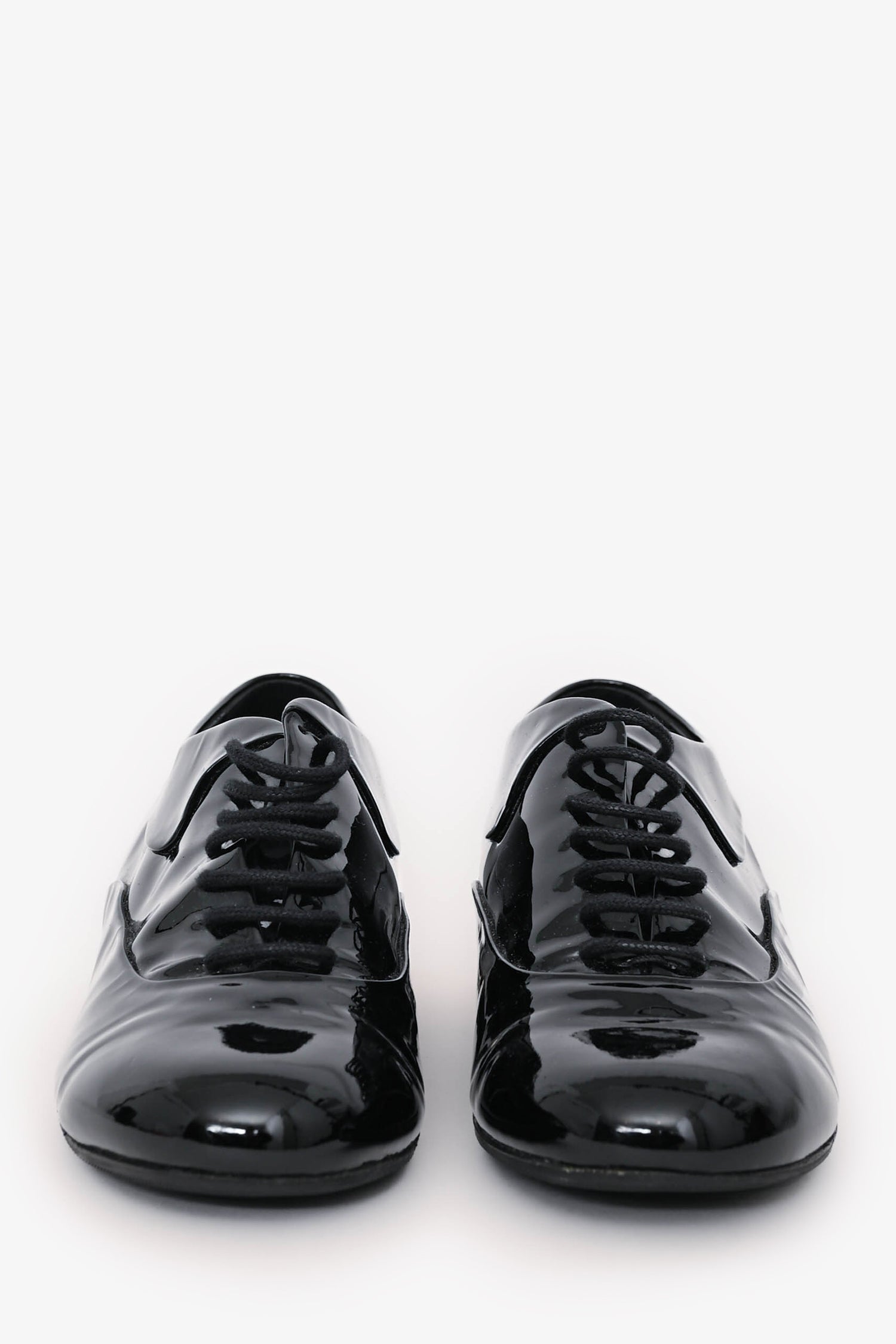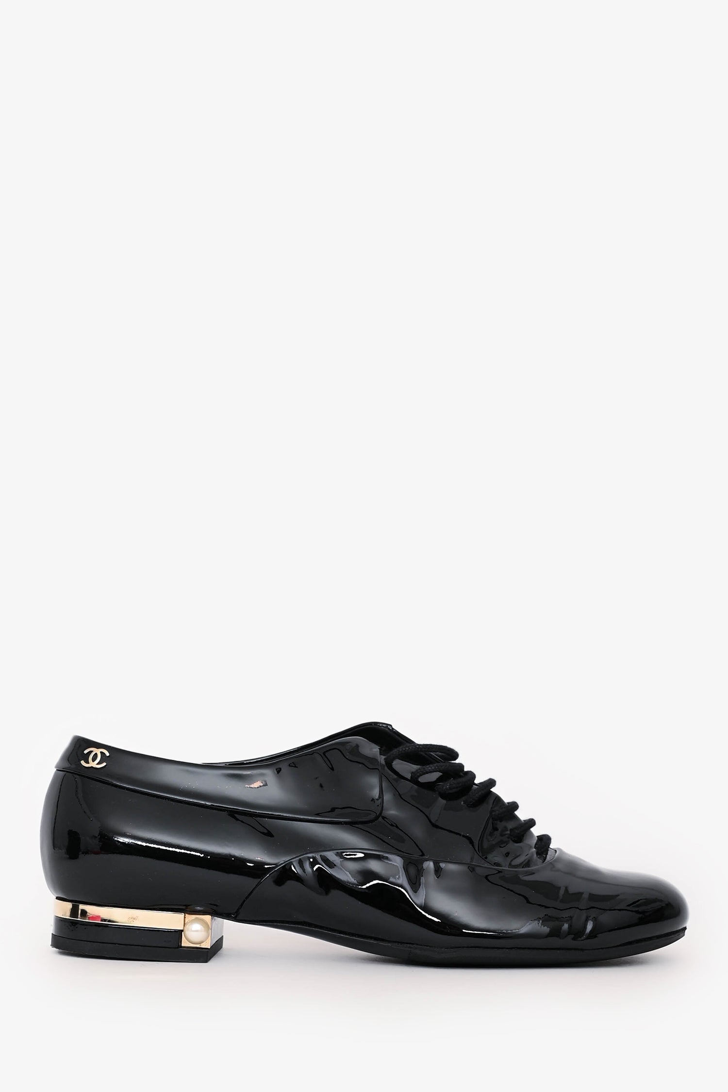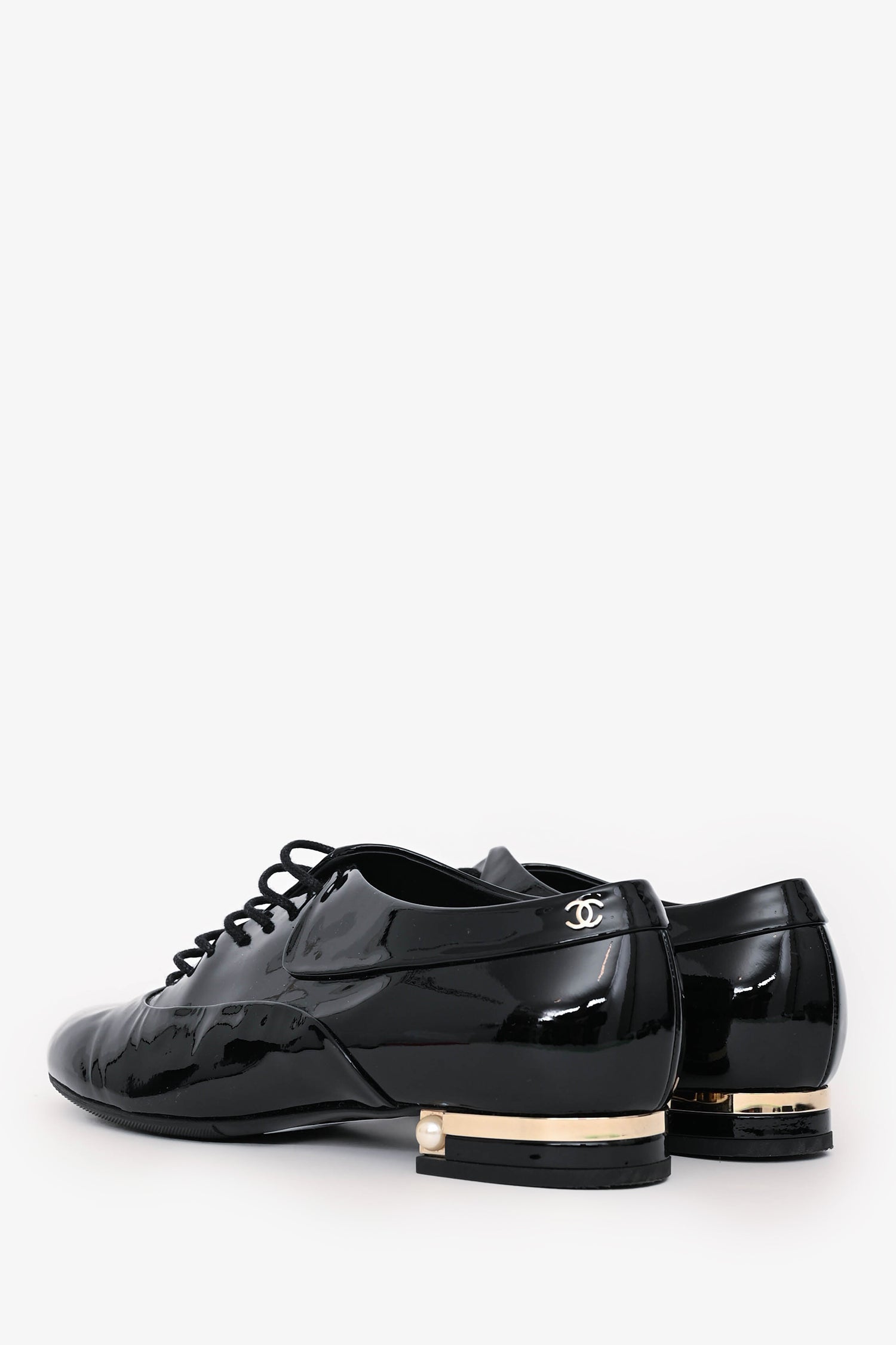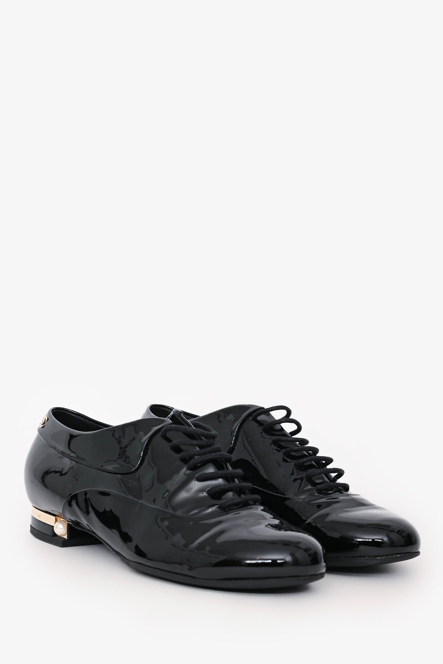 Pre-Loved Chanel™ Black Patent Leather Lace Up Oxford Shoes Size 37