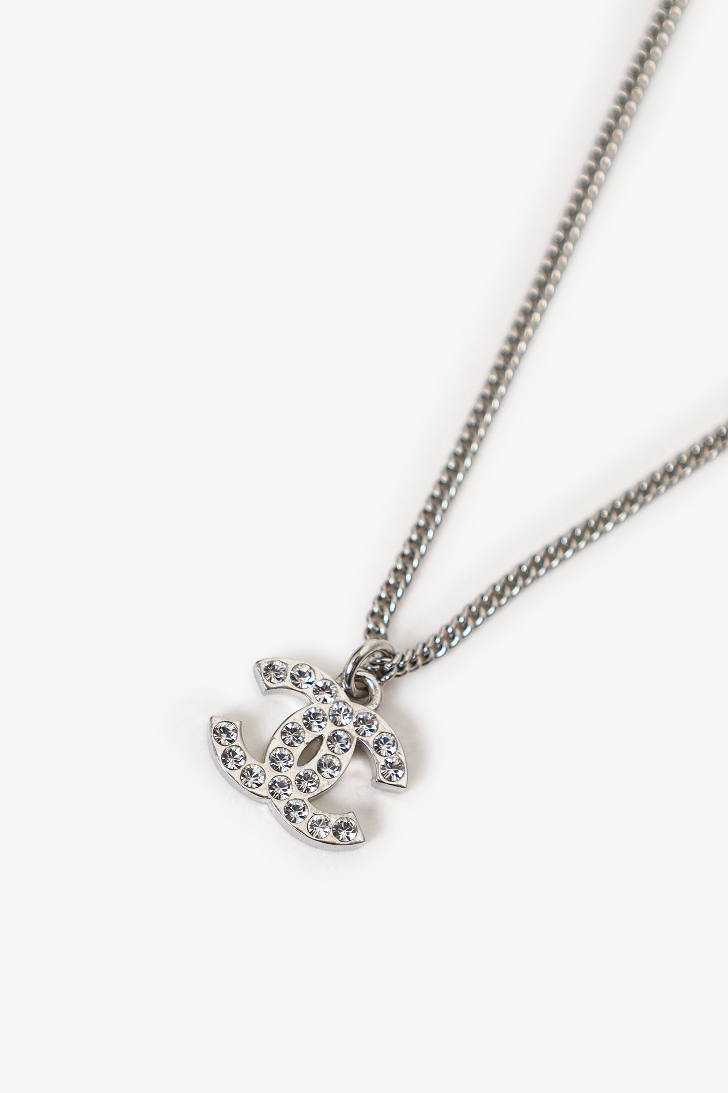 Pre-Loved Chanel™ F12 Silver Tone Double CC Crystal Pendant Necklace