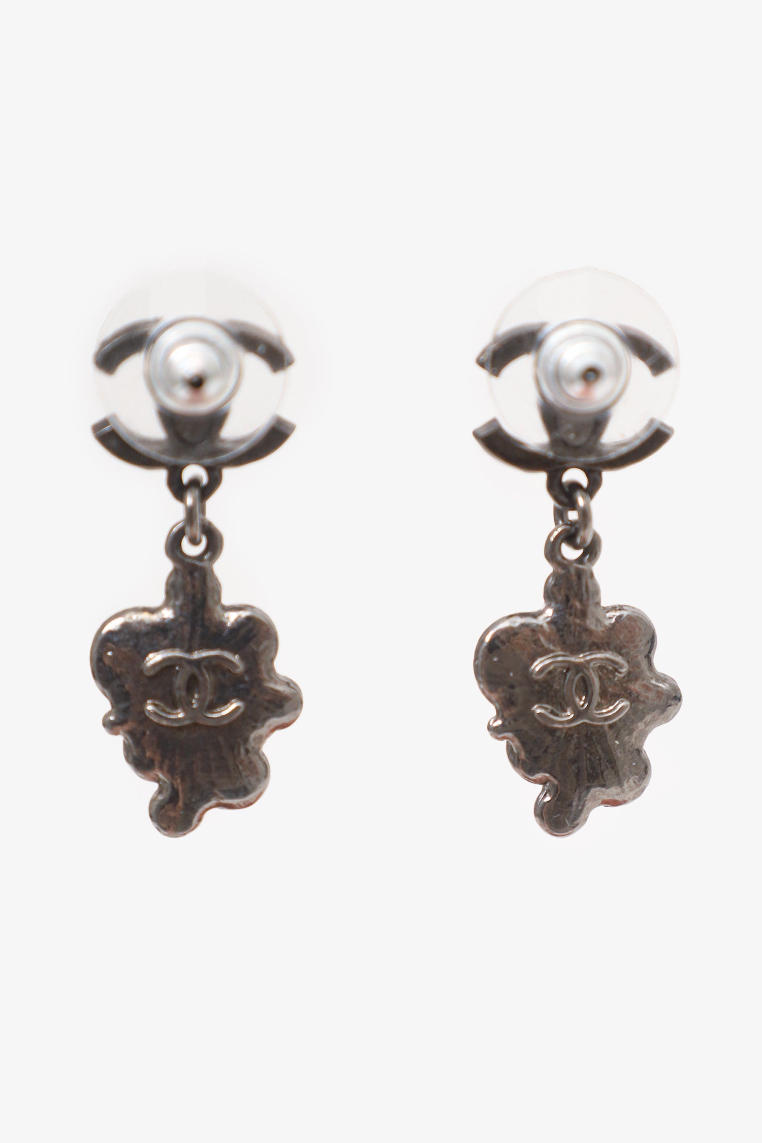 Pre-Loved Chanel™ Gunmetal Silver Crystal Clustered Drop Earrings