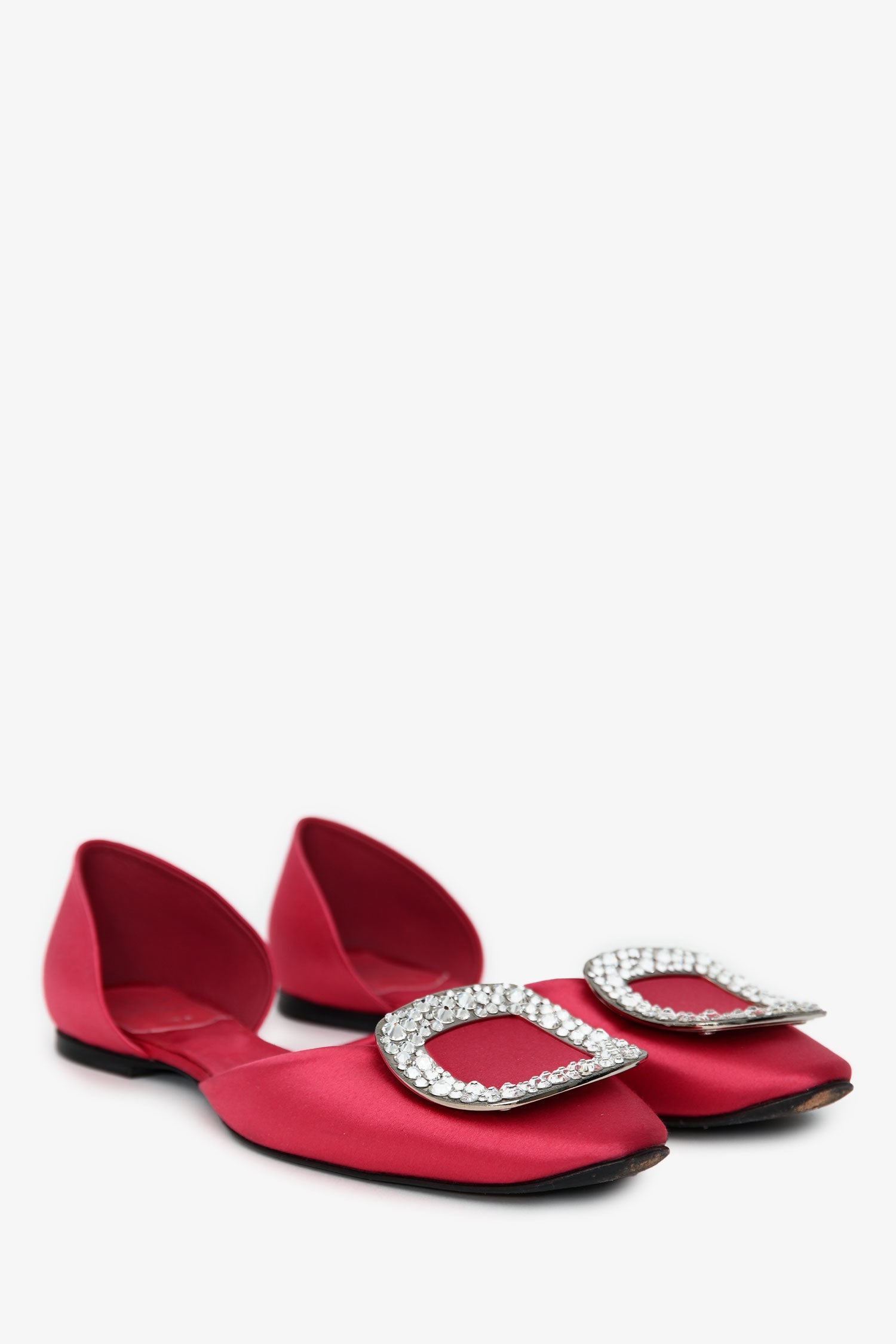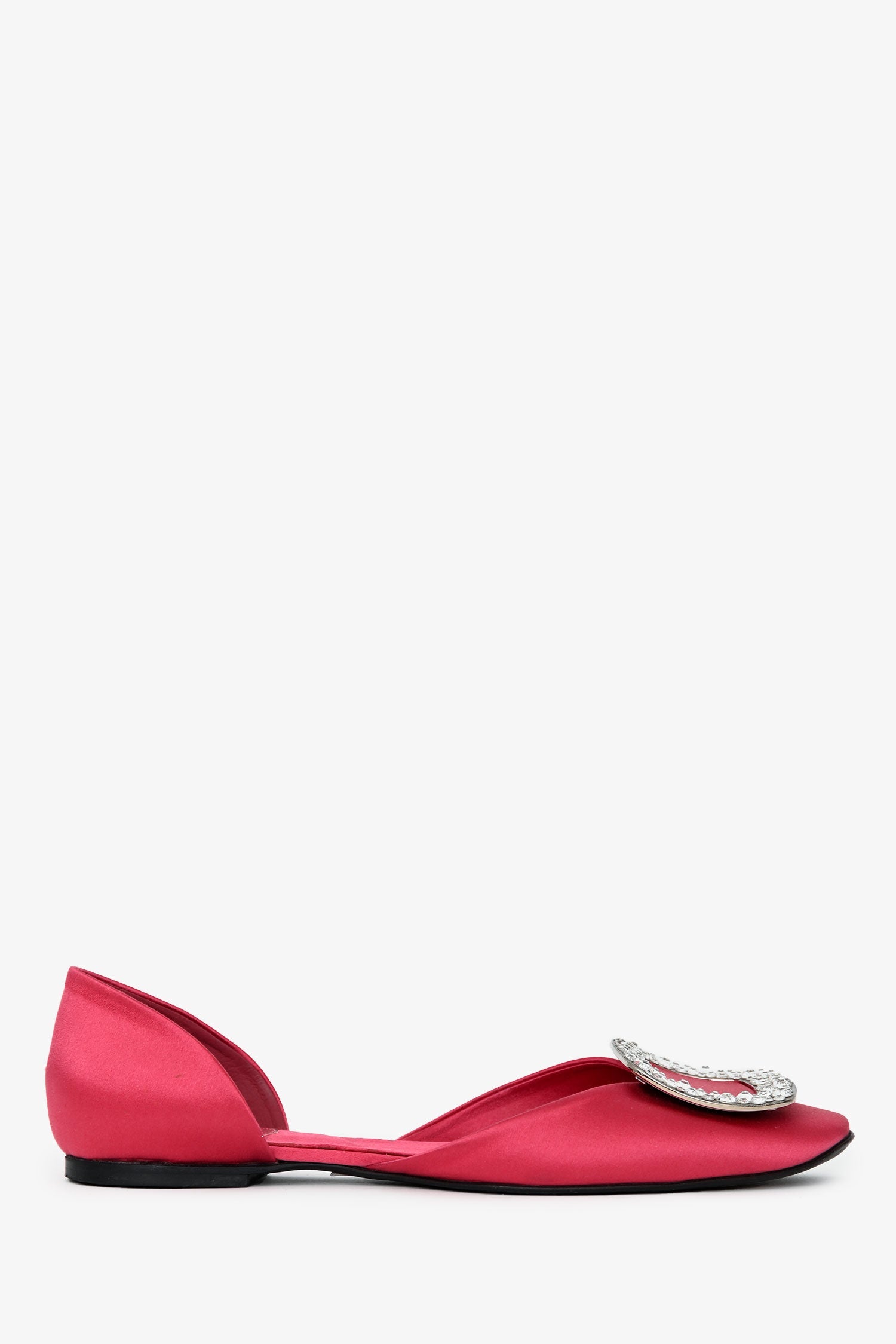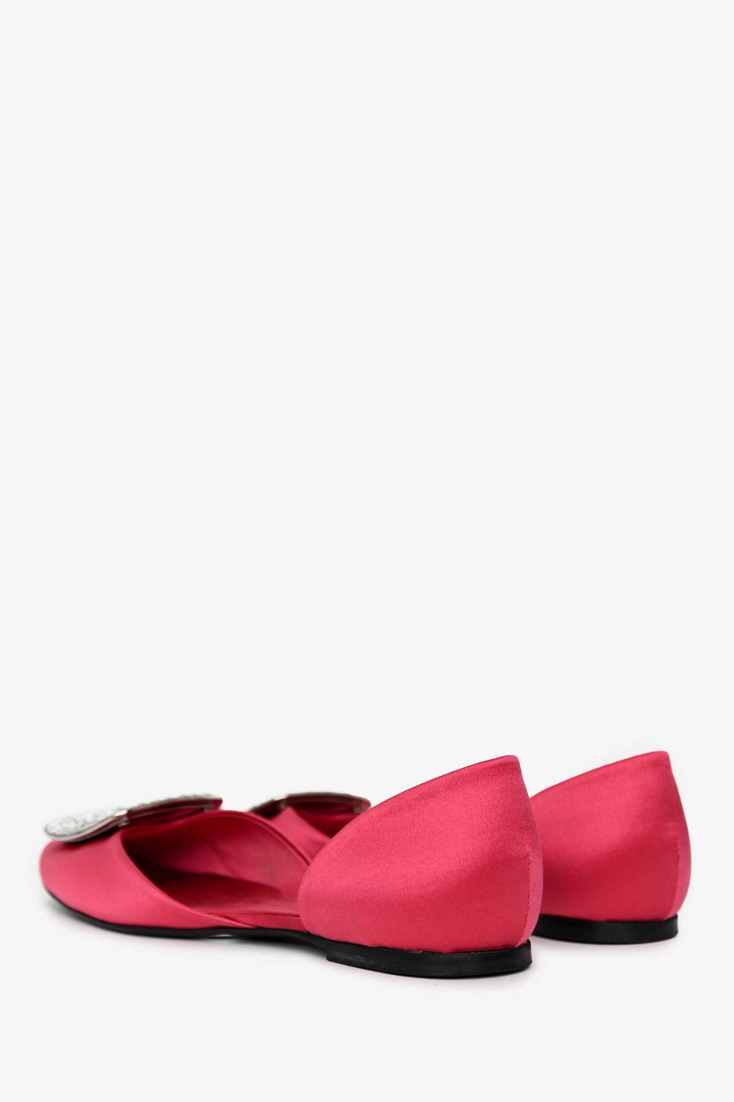 Roger Vivier Pink Satin D'Orsay Crystal Embellished Flats Size 36