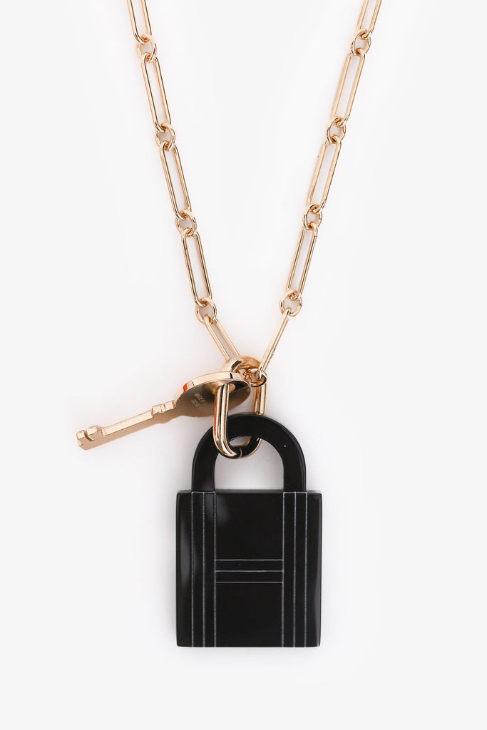 Hermès Yellow Tone Metal Buffalo Horn Large Amulette Padlock/Key Pendant