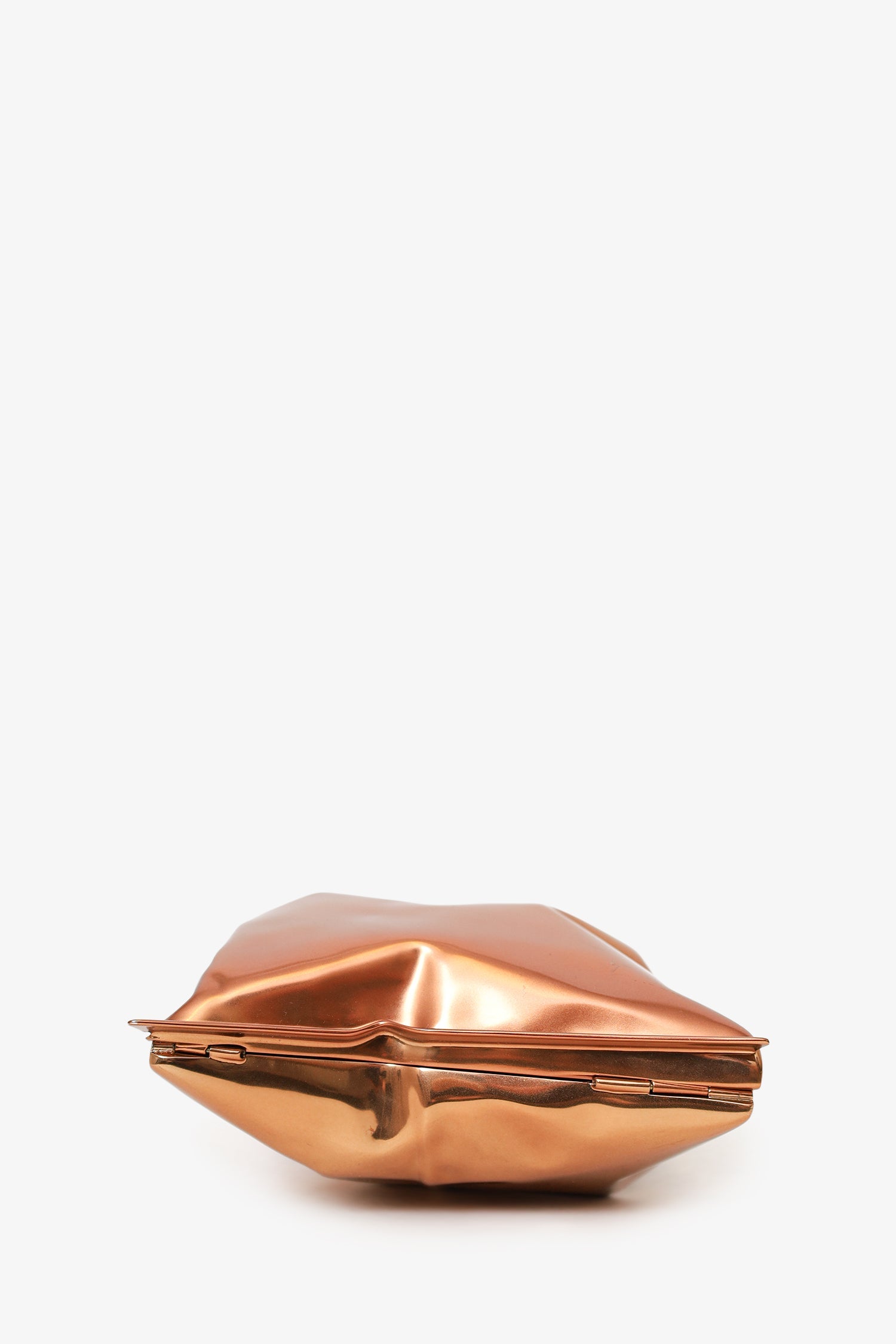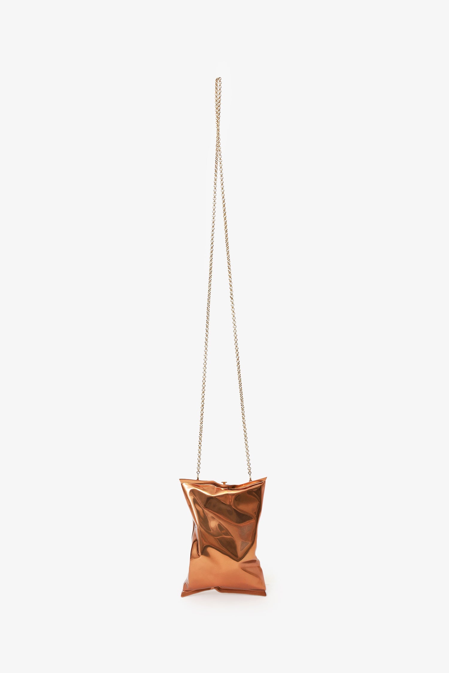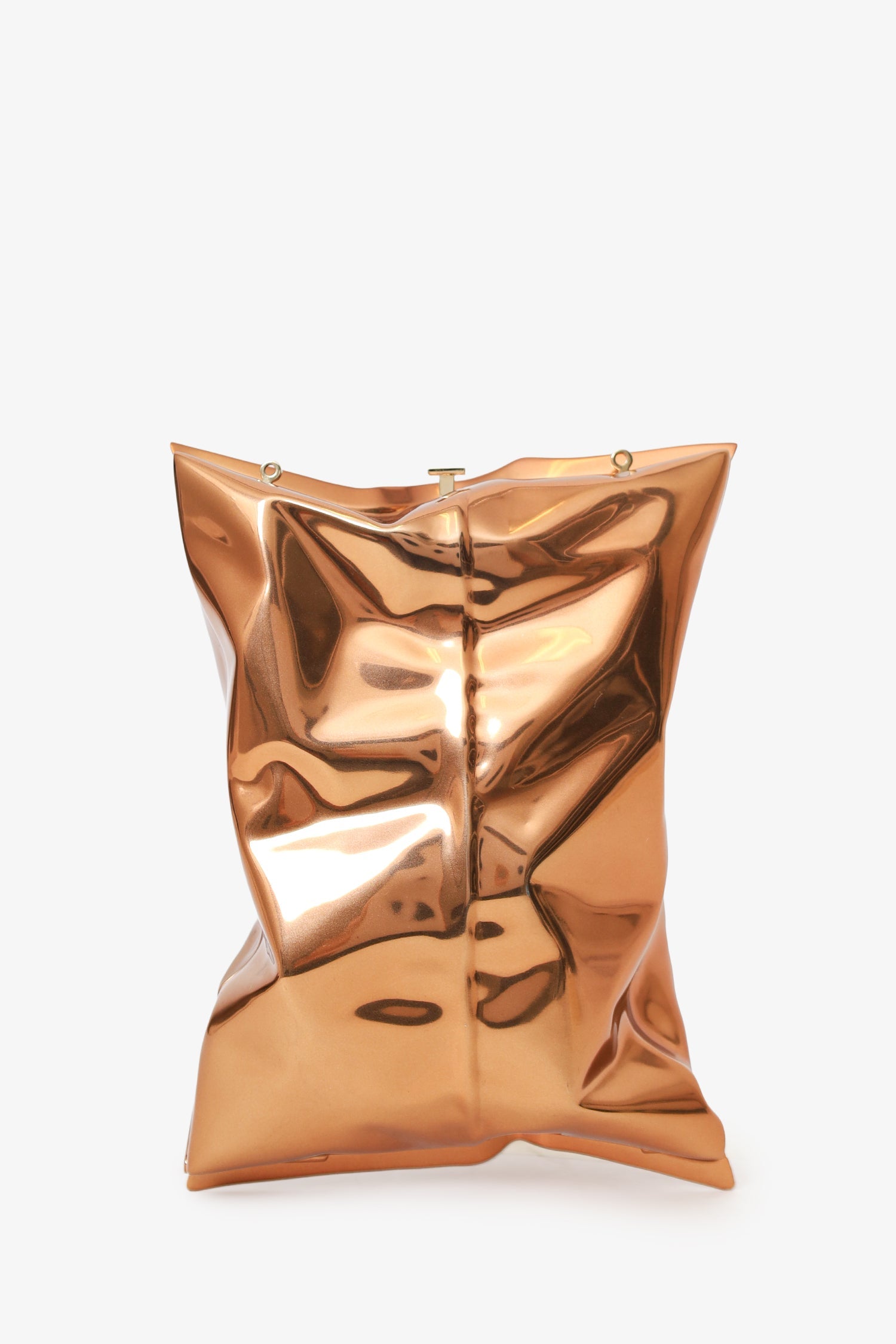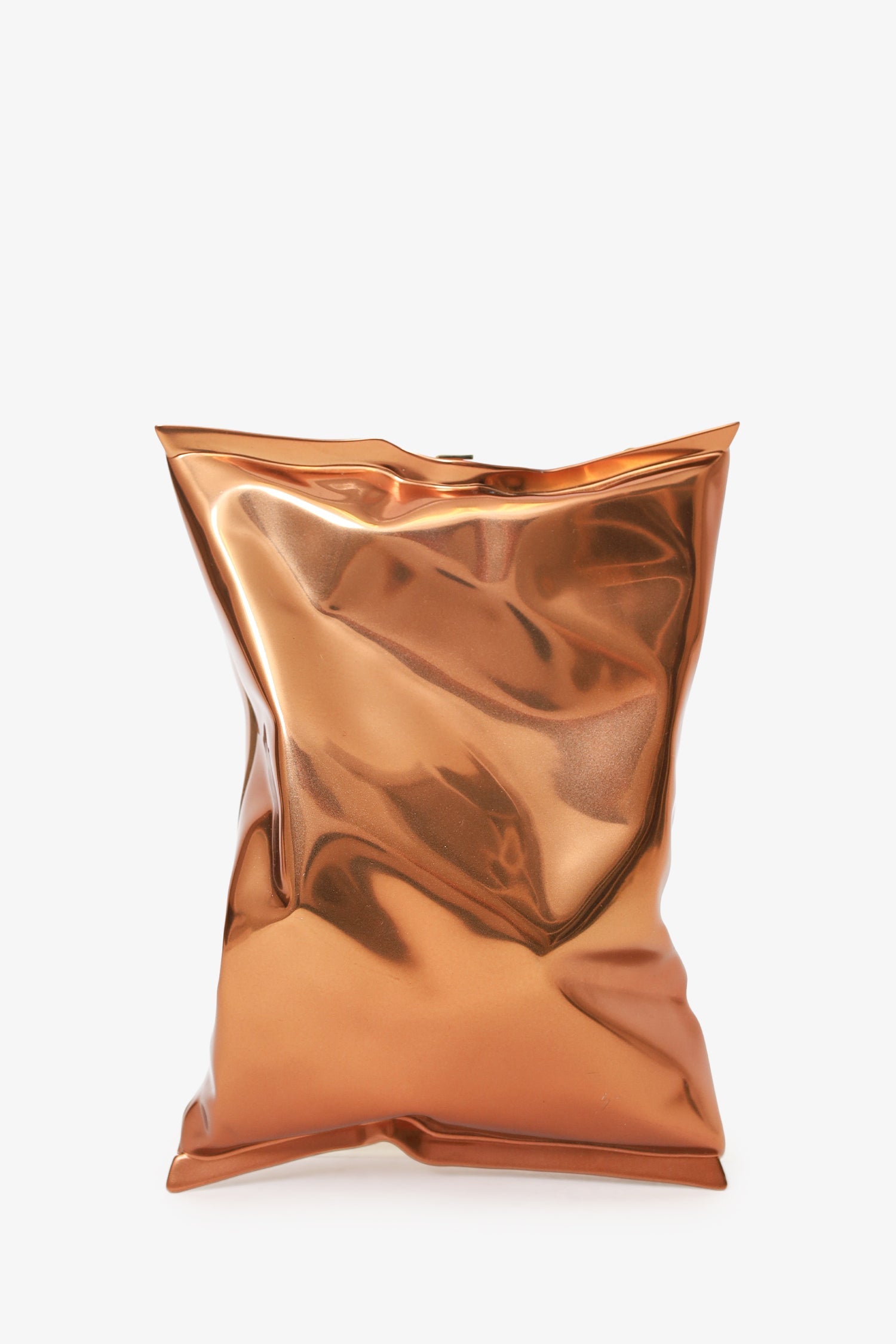Anya Hindmarch Rose Gold Metallic Metal Crisp Packet Clutch With Chain