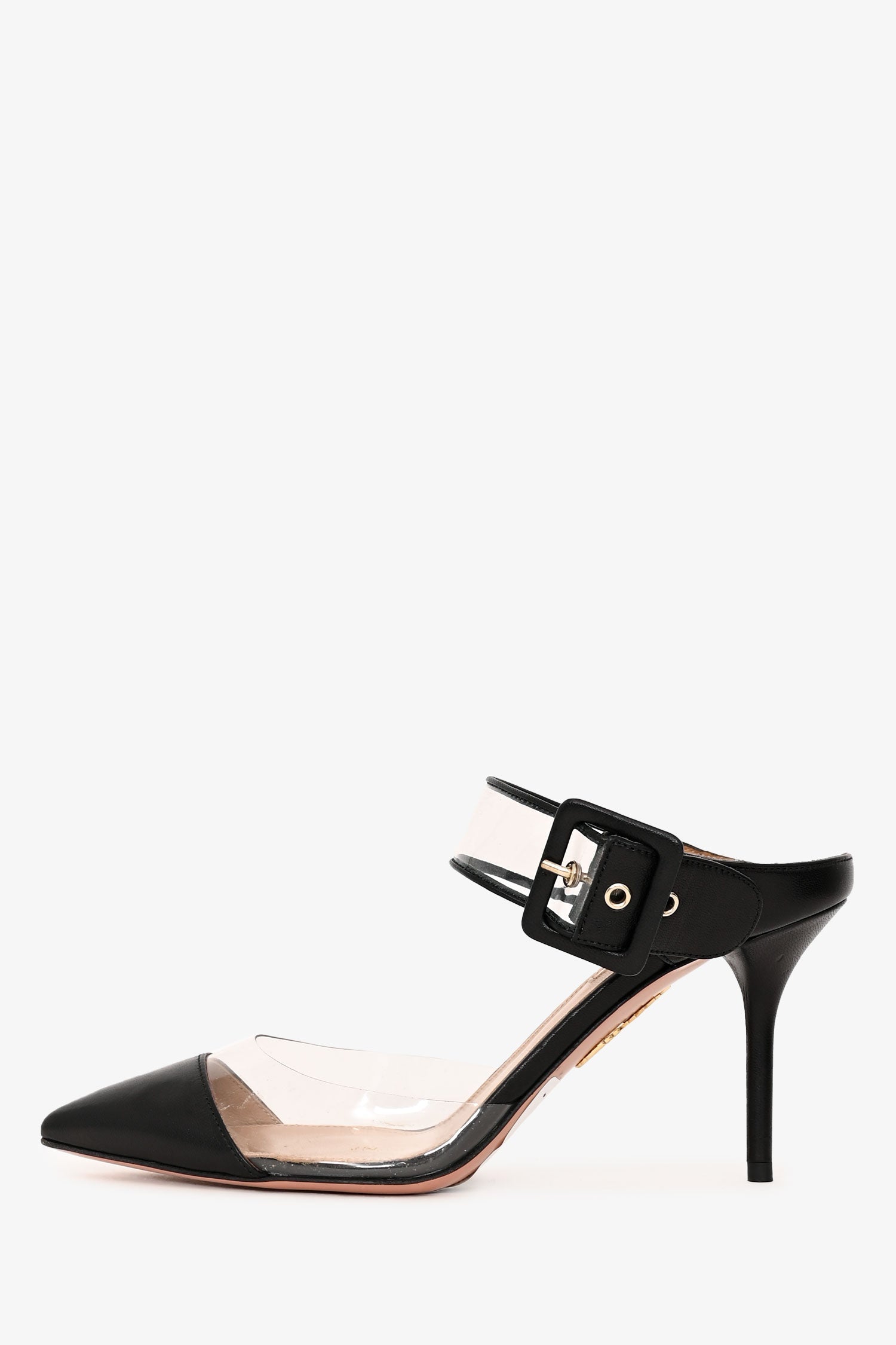 Aquazzura Black Leather/PVC Pointed Heeled Mules Size 36.5