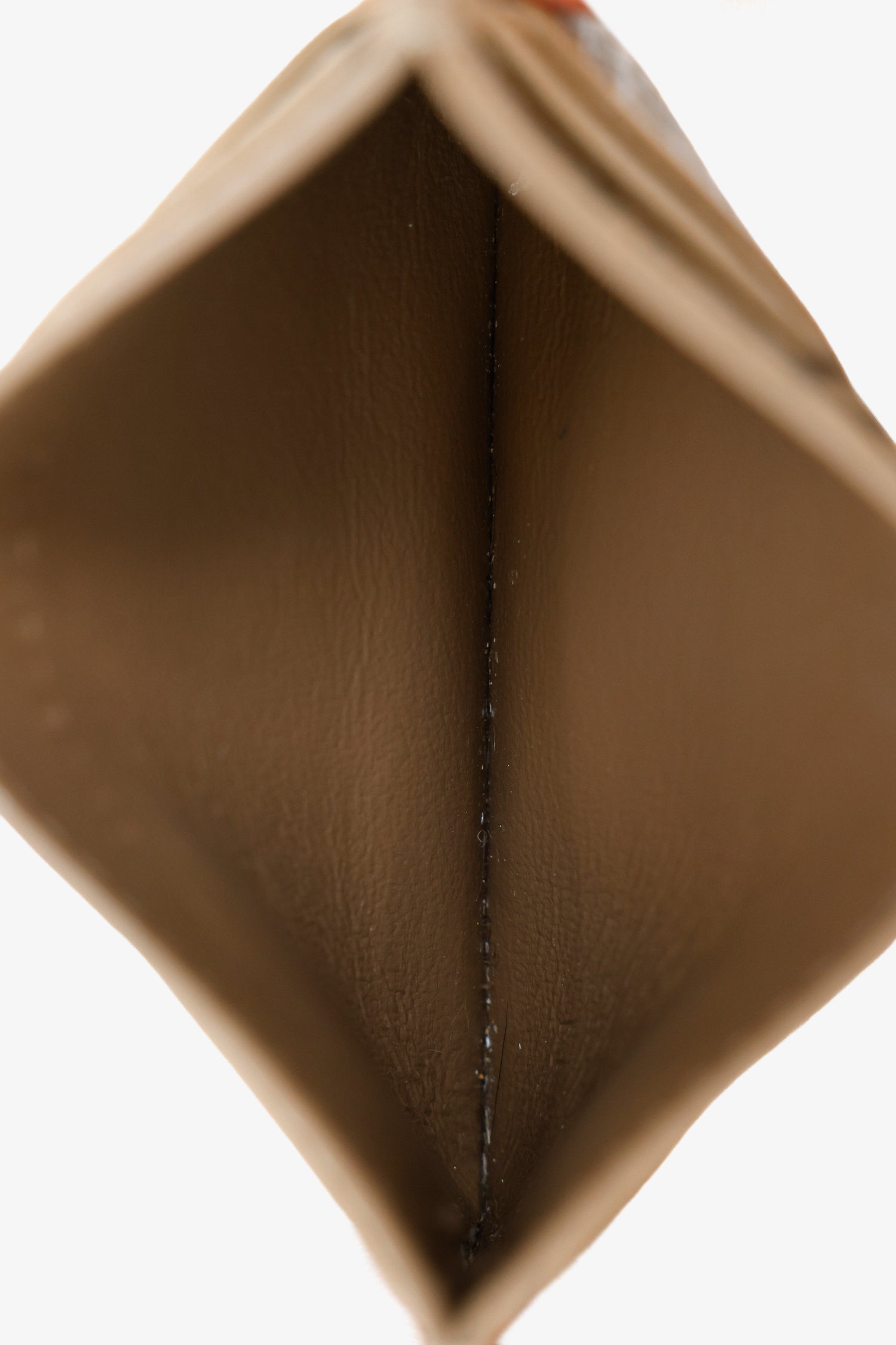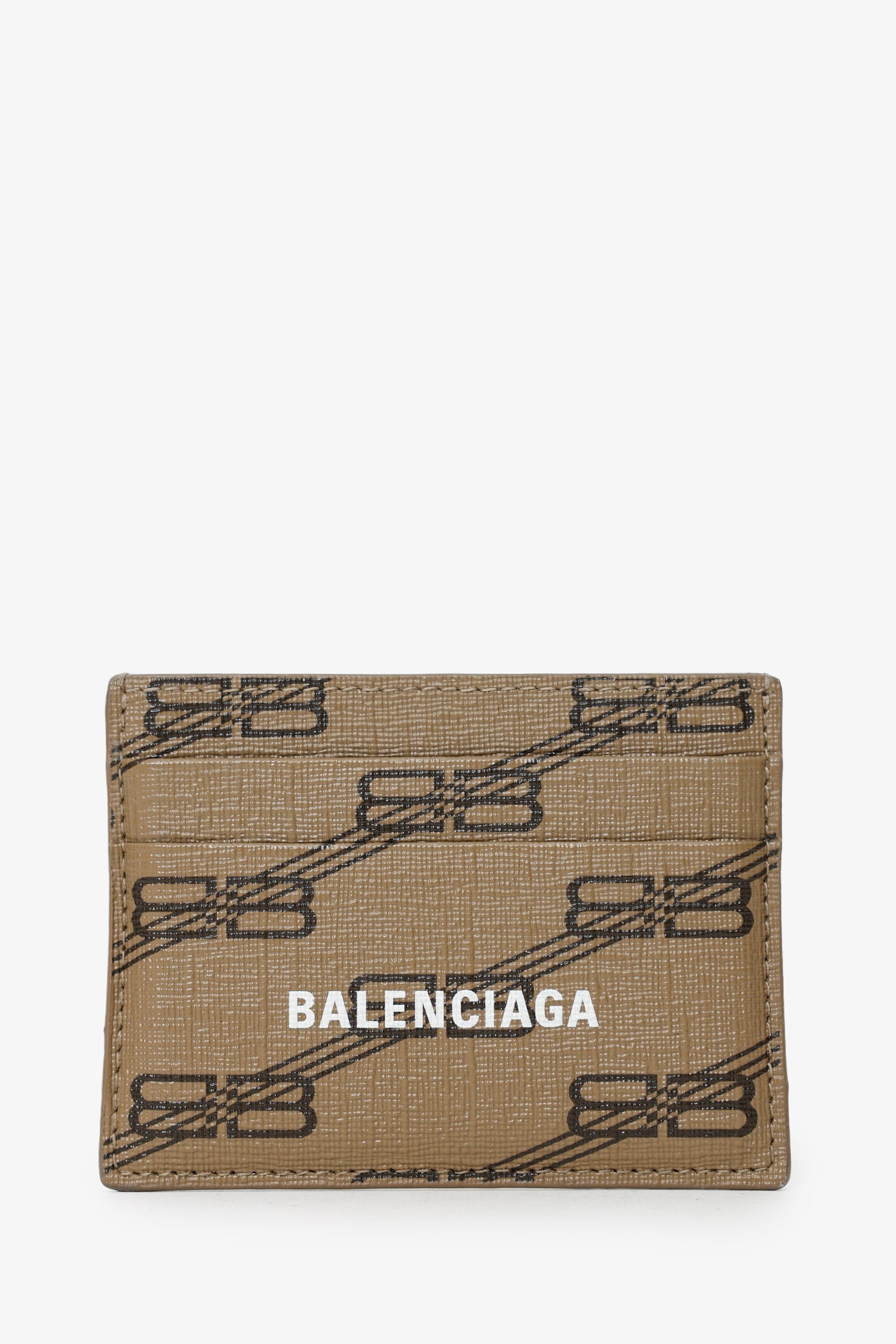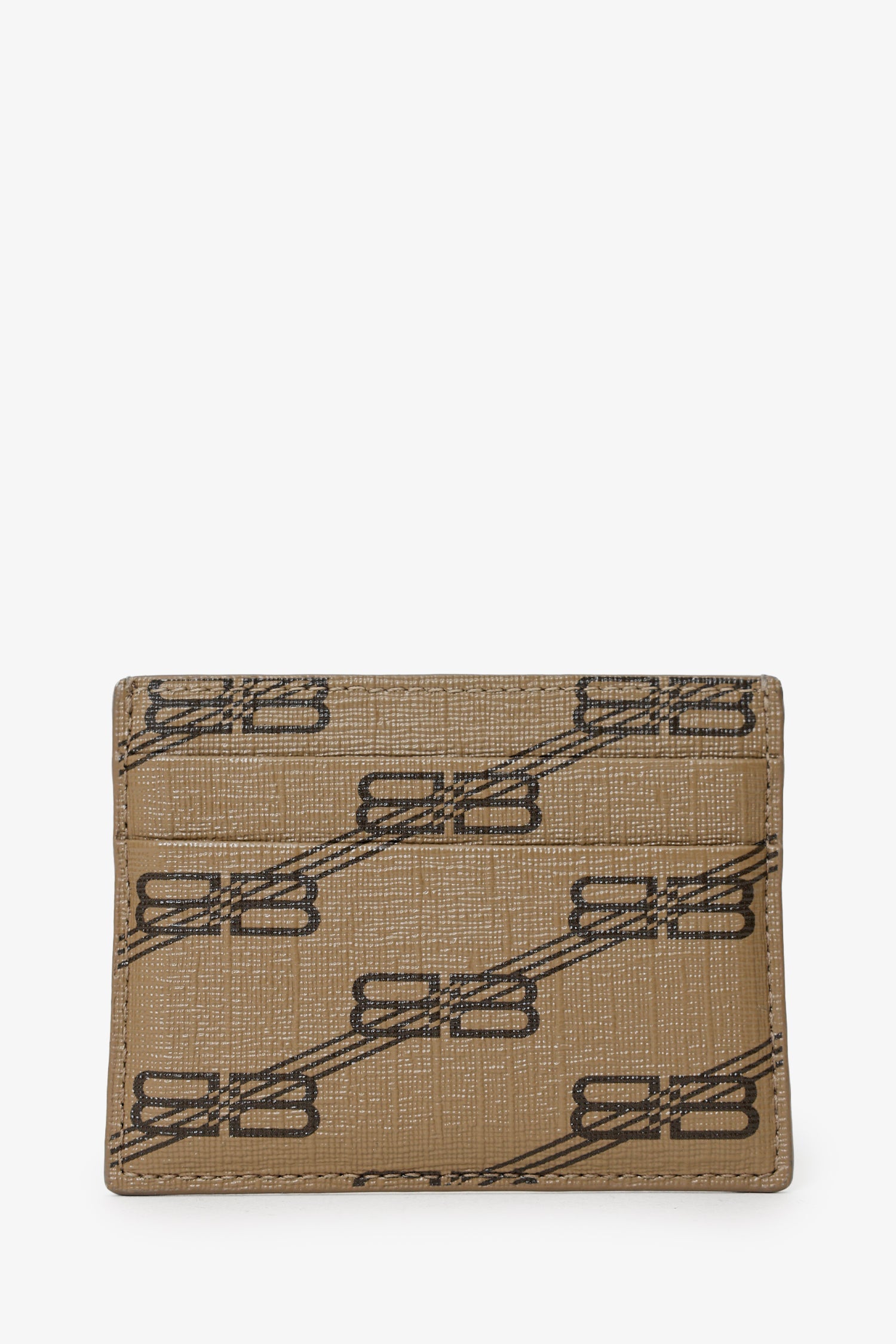 Balenciaga Brown/Black Leather BB Logo Card Case. 5 card slots; 2 front, 1 top, and 2 rear. Tonal stitching.
