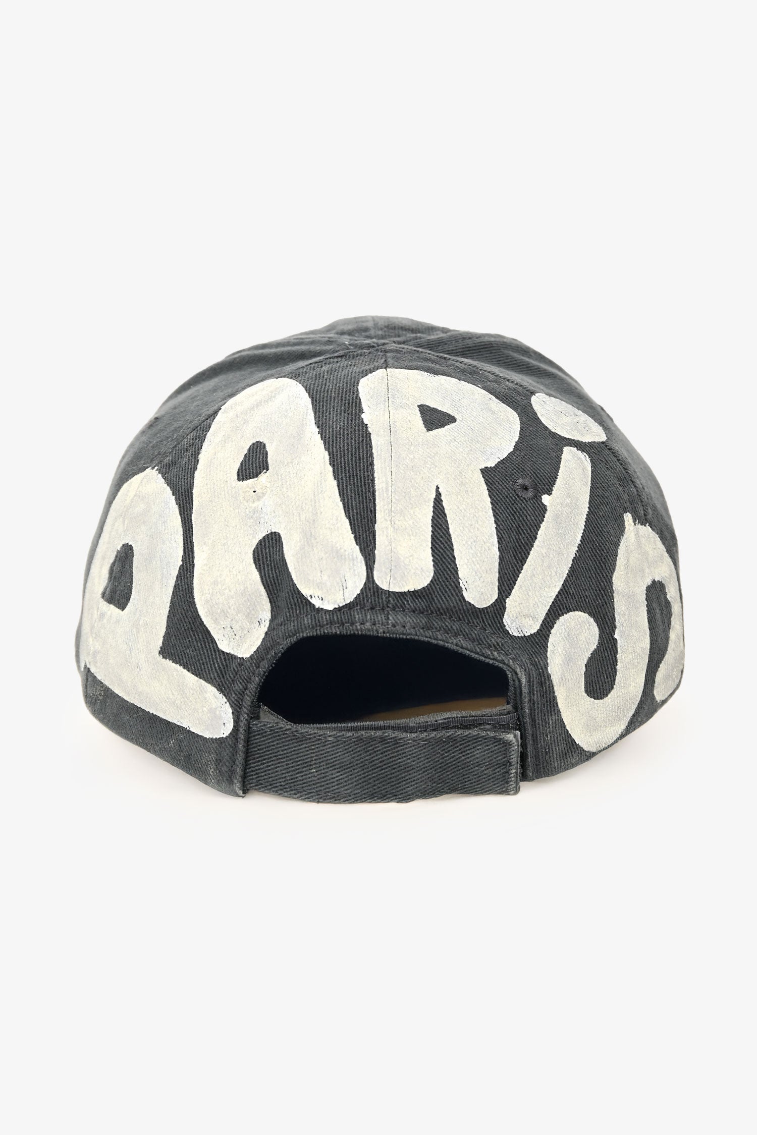 Balenciaga Dark Blue Graffiti BB Logo Embroidered Hat. Rear velcro strap closure. Tonal stitching.