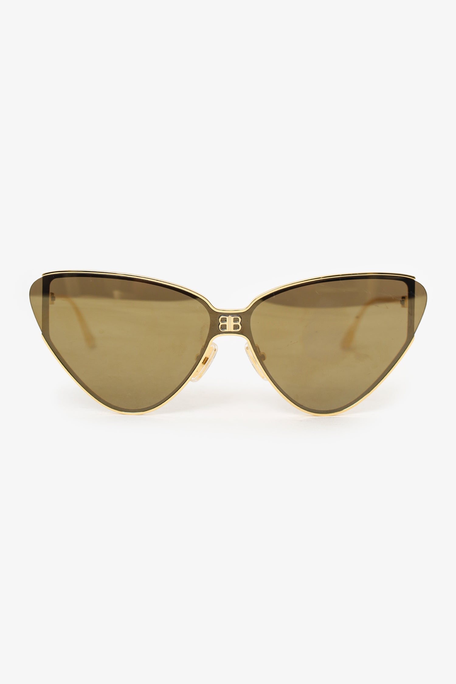 Balenciaga Gold Tone Cat-Eye Sunglasses. Adjustable nose pads. Gold-tone hardware.
