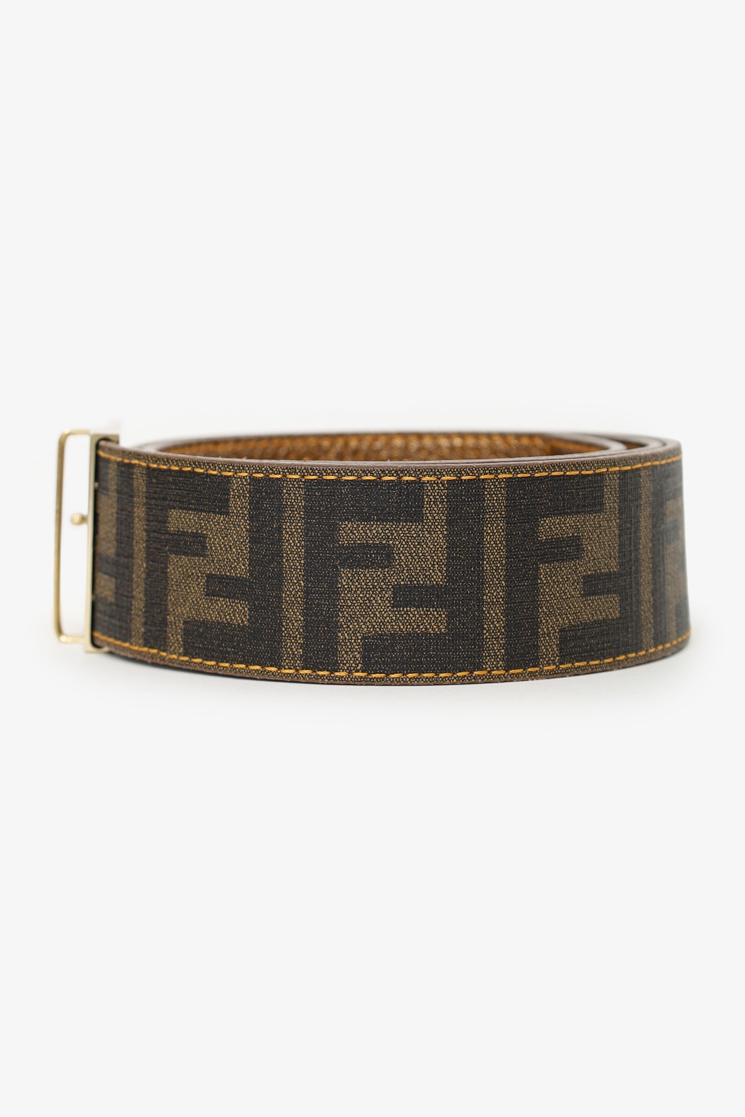 Fendi Gold Metallic/Zucca Coated Canvas Reversible Plaque Buckle Belt