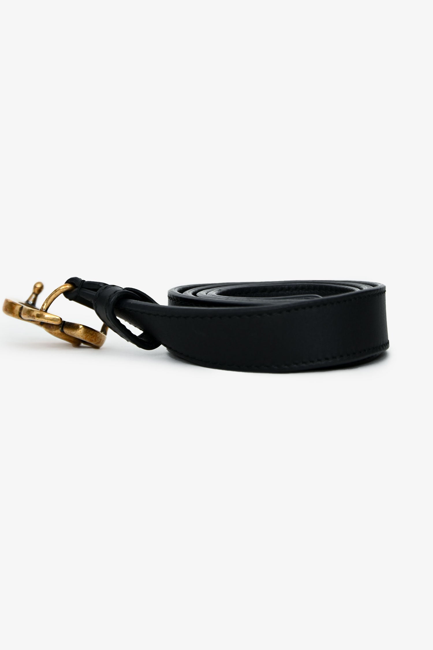Size/Dimensions: 85/34 | 39.5" length x 0.75" width | 29.5" length to the shortest belt hole x 36.5" length to the last belt hole.Condition: This item is in good pre-loved condition with plating loss on the hardware. Surface marks on the leather. Two extra holes have been punched in.