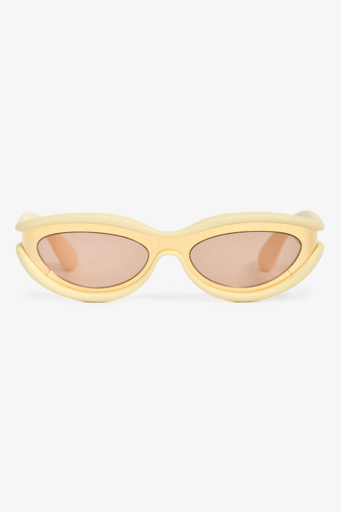 Bottega Veneta Gold Tone/Cream Rubber Oval Sunglasses