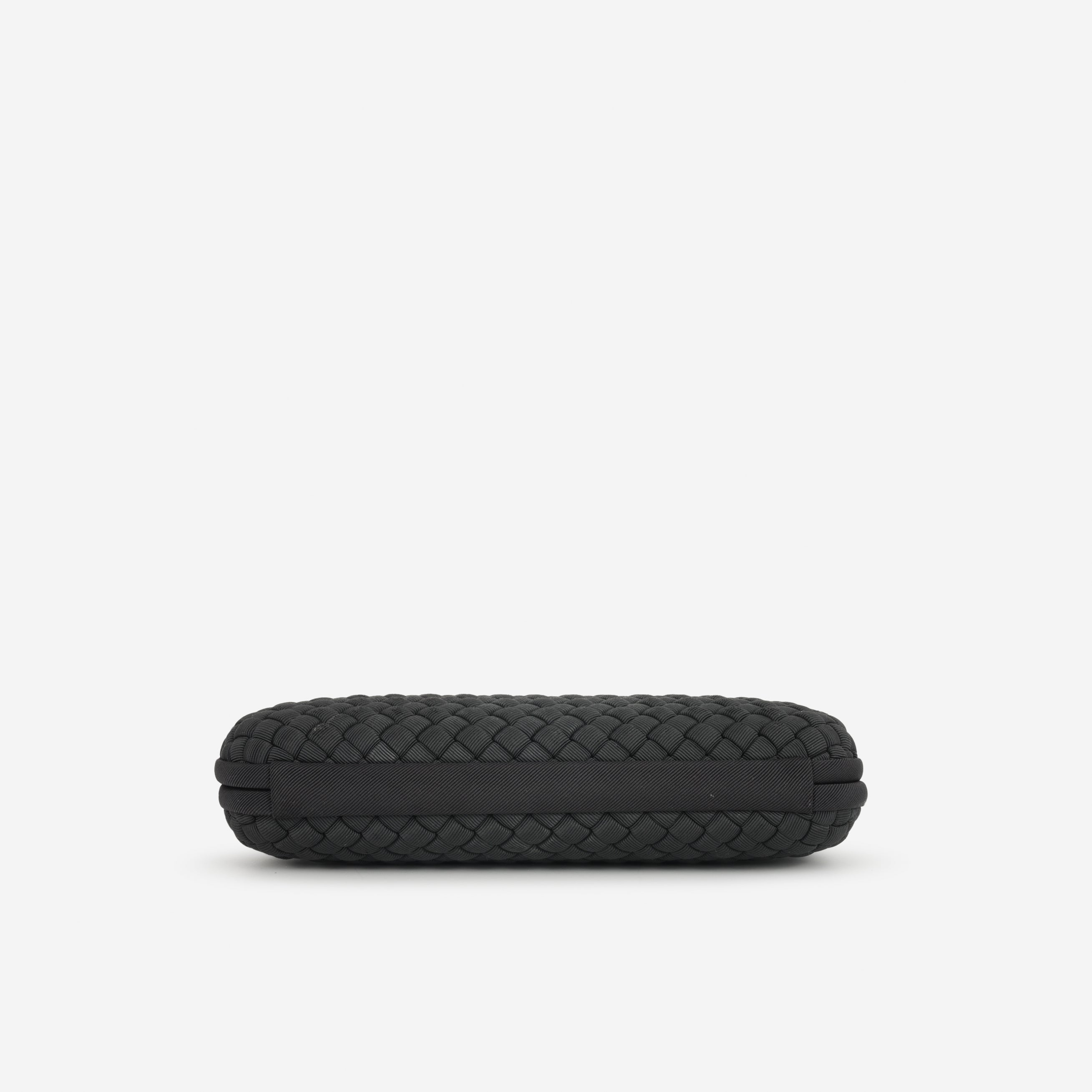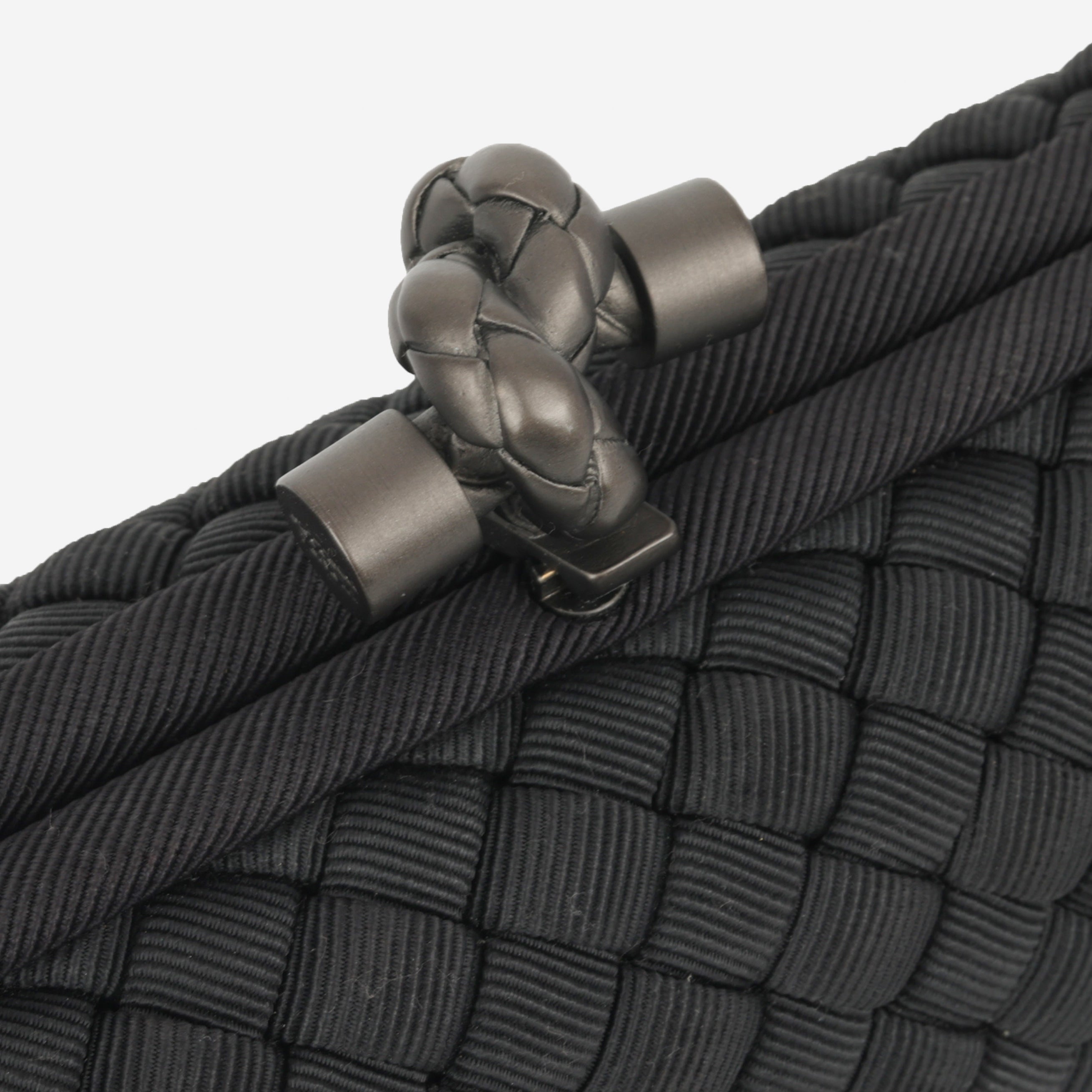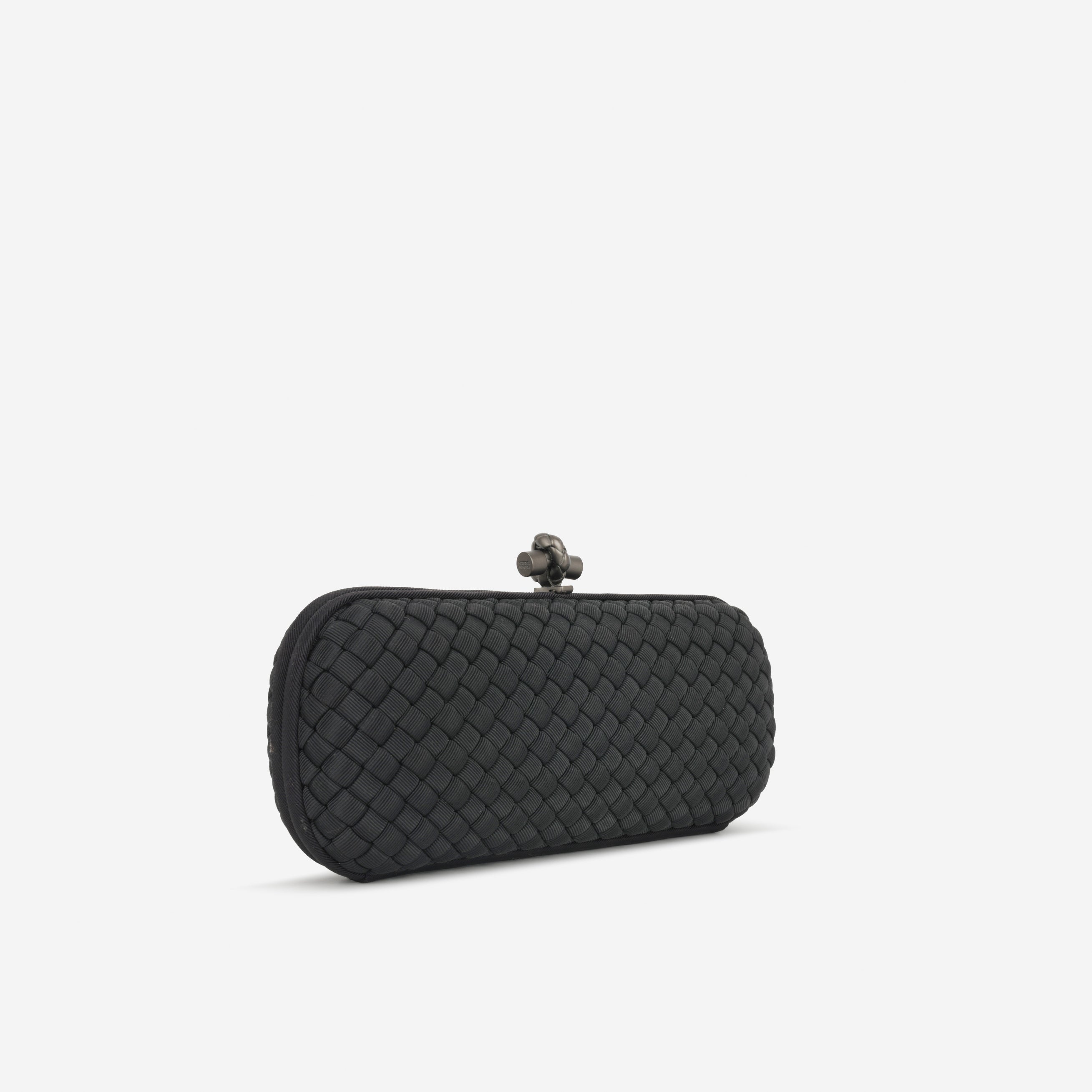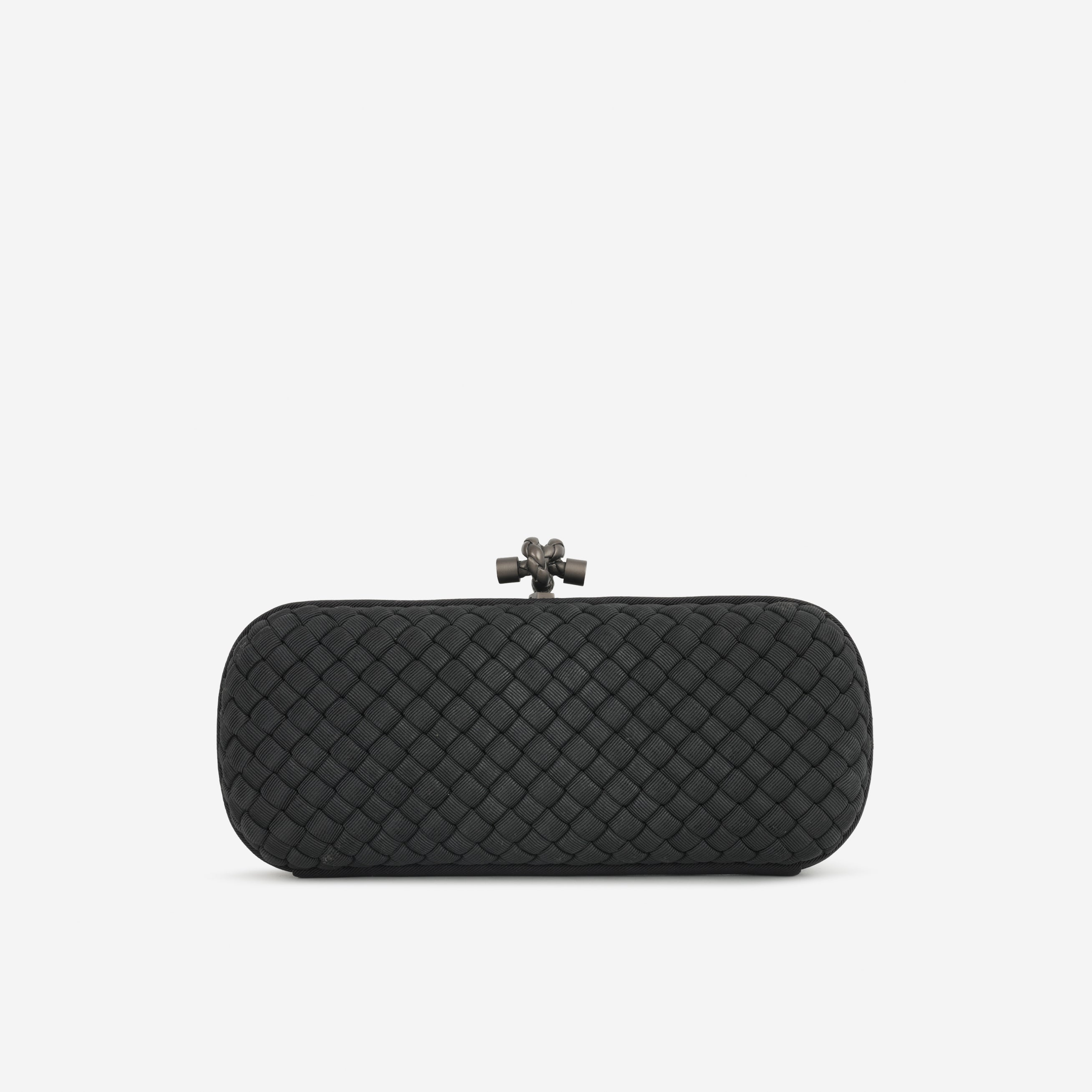 Sleek and sophisticated, the Bottega Veneta Long Knot Clutch in black fabric with gunmetal hardware is a timeless evening accessory that embodies understated luxury. Known for its minimalist design and impeccable Italian craftsmanship, this iconic clutch is a favourite among fashion connoisseurs.