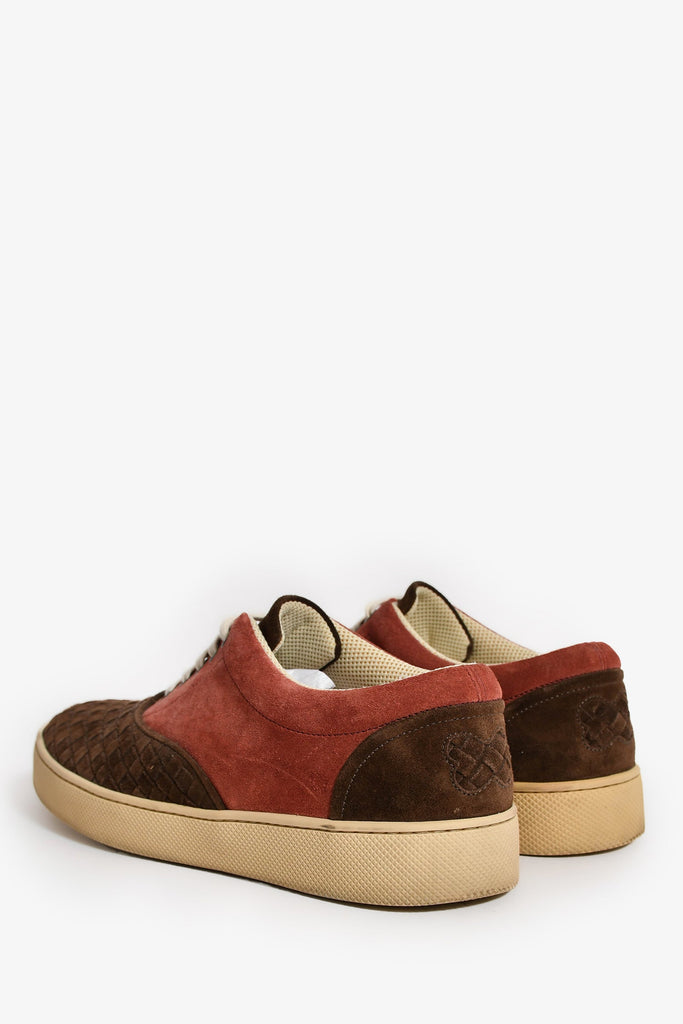 Bottega Veneta Burgundy/Brown Suede Leather Intrecciato Sneakers Size 40