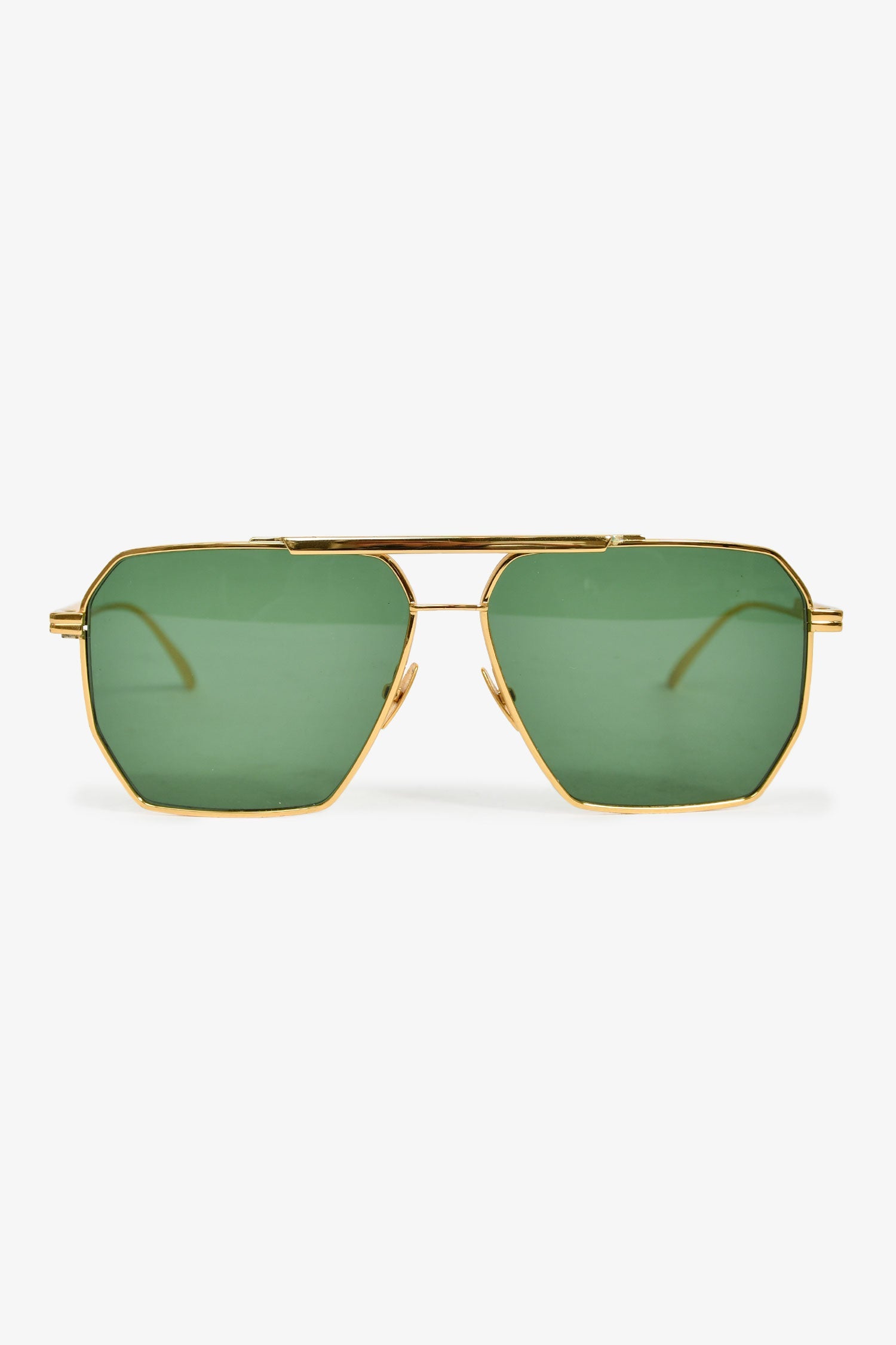 Bottega Veneta Gold Frame/Green Tinted Aviator Sunglasses. Built-in nose pads. Gold-tone hardware.