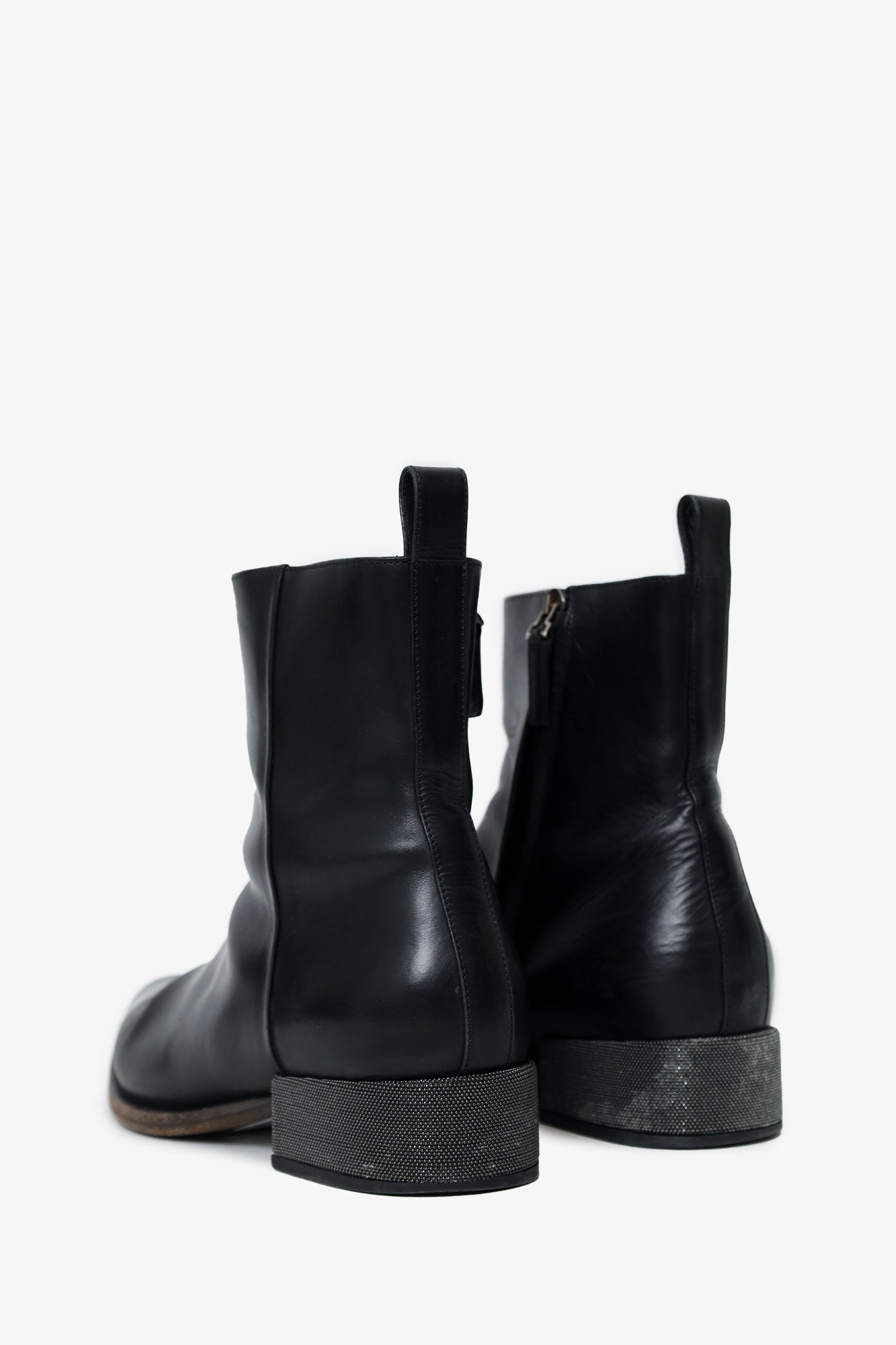 Brunello Cucinelli Black Leather Pointed Beaded Heel Ankle Boots Size 40