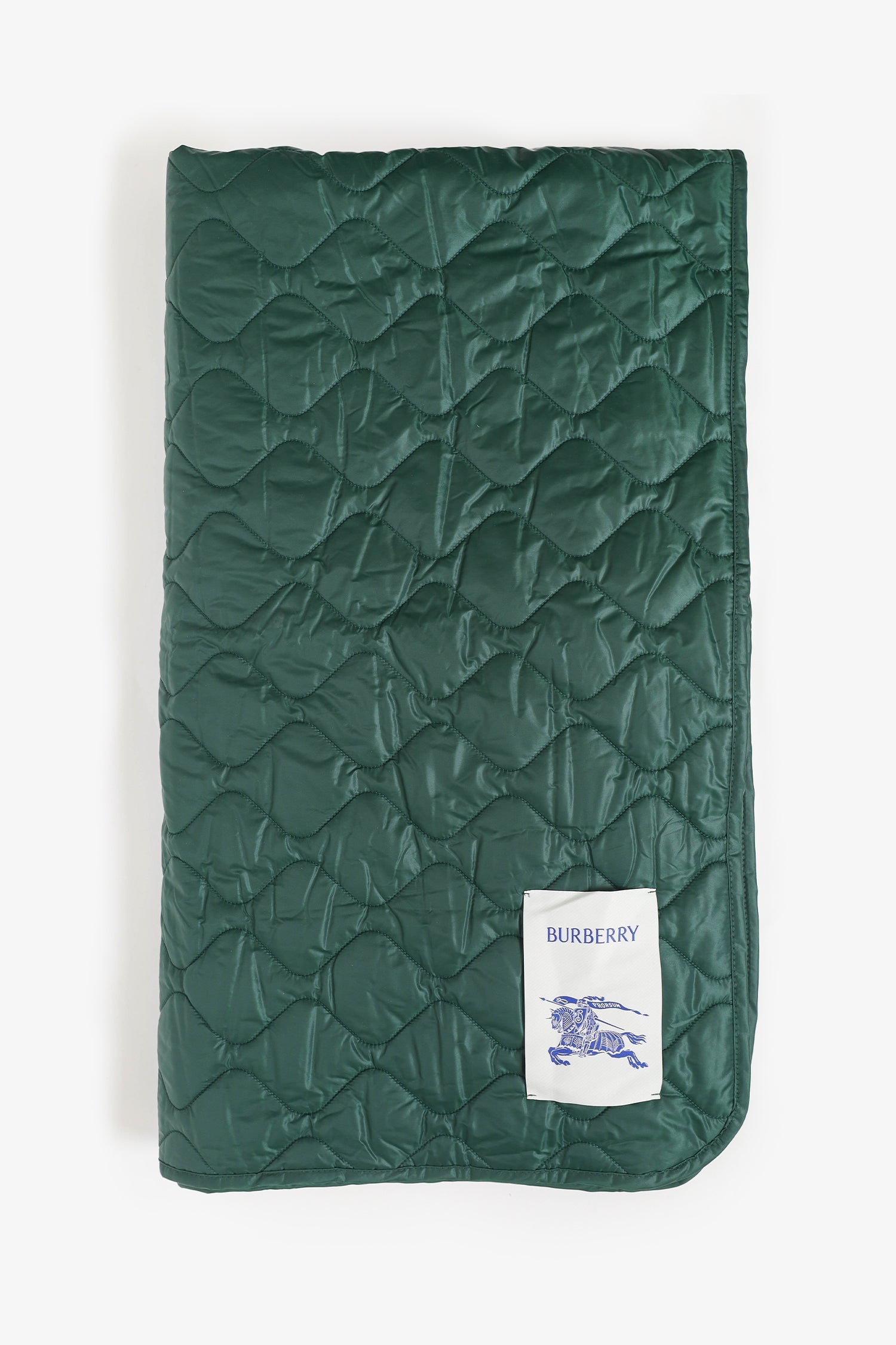 Burberry Green Nylon Quilted Blanket. Tonal stitching.
