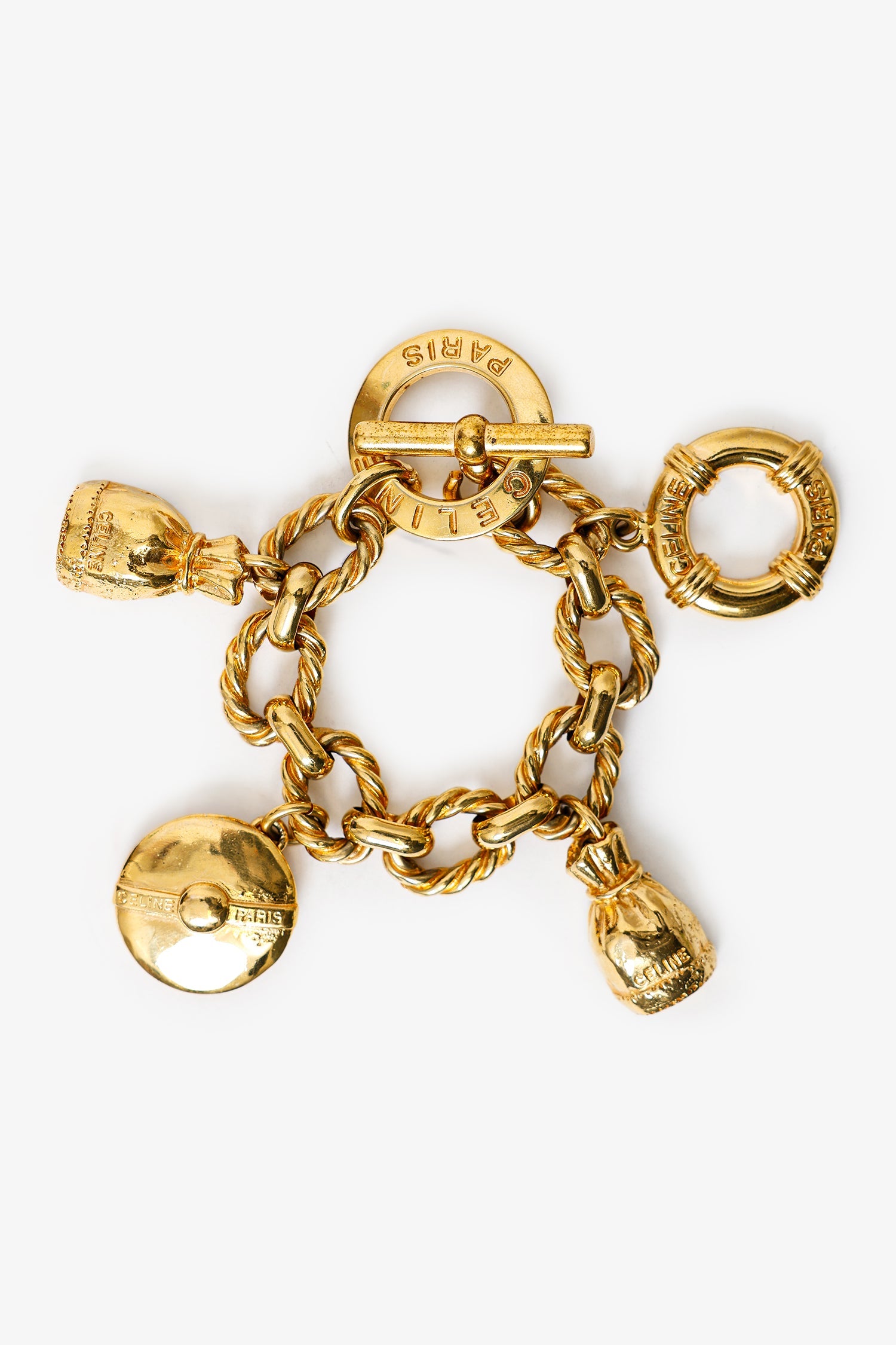 Celine Vintage Gold Toned Charm Toggle Closure Bracelet