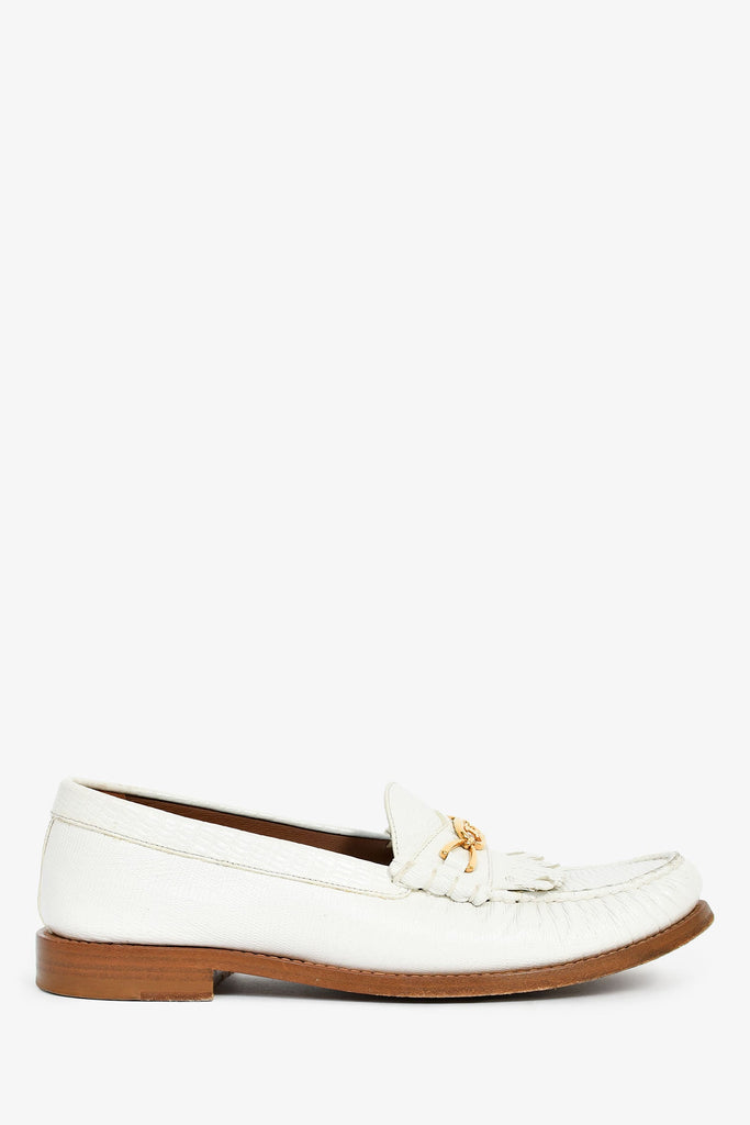Celine White Triomphe Luco Fringe Loafers Size 38.5