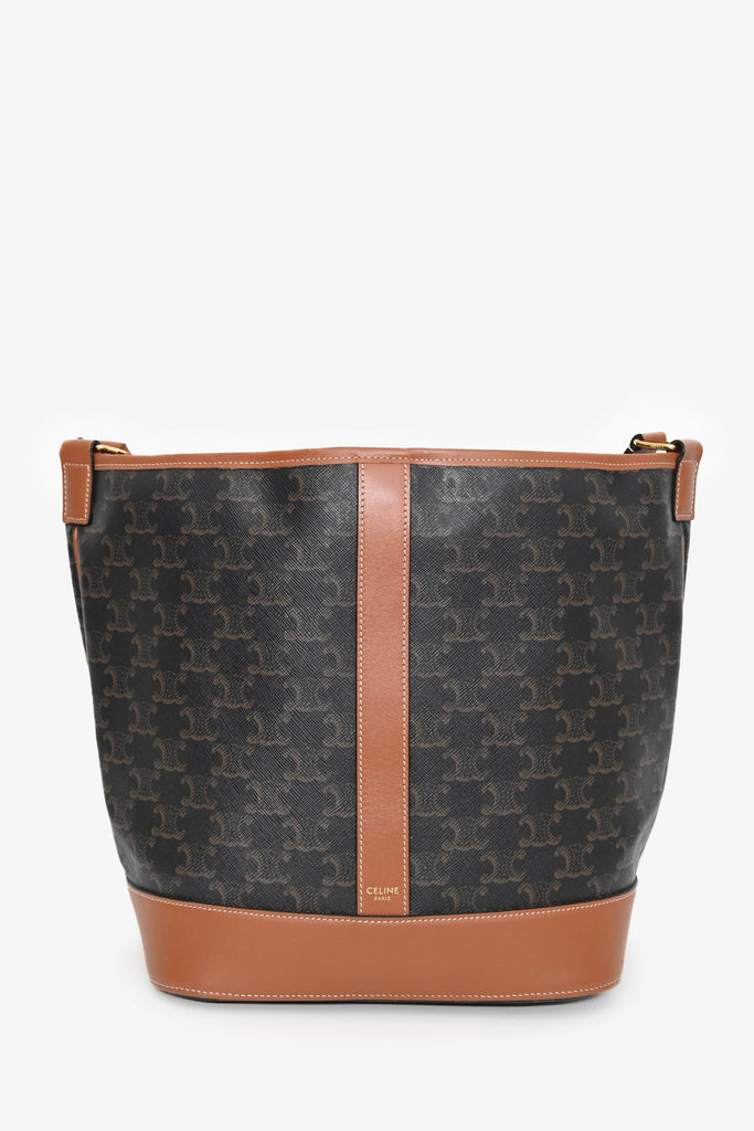 Celine 2021 Brown Canvas/Leather Triomphe Small Bucket Crossbody