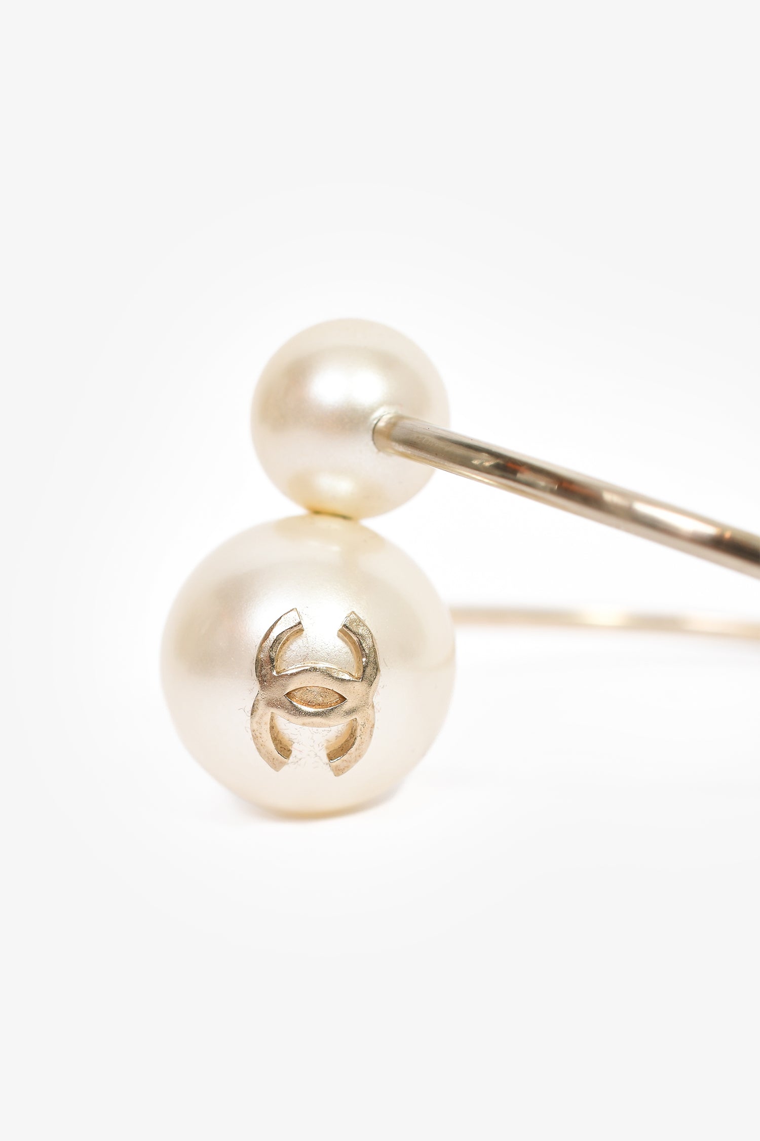 Pre-Loved Chanel™ 2014 Gold Toned Faux Pearl CC Cuff. Slip-on.