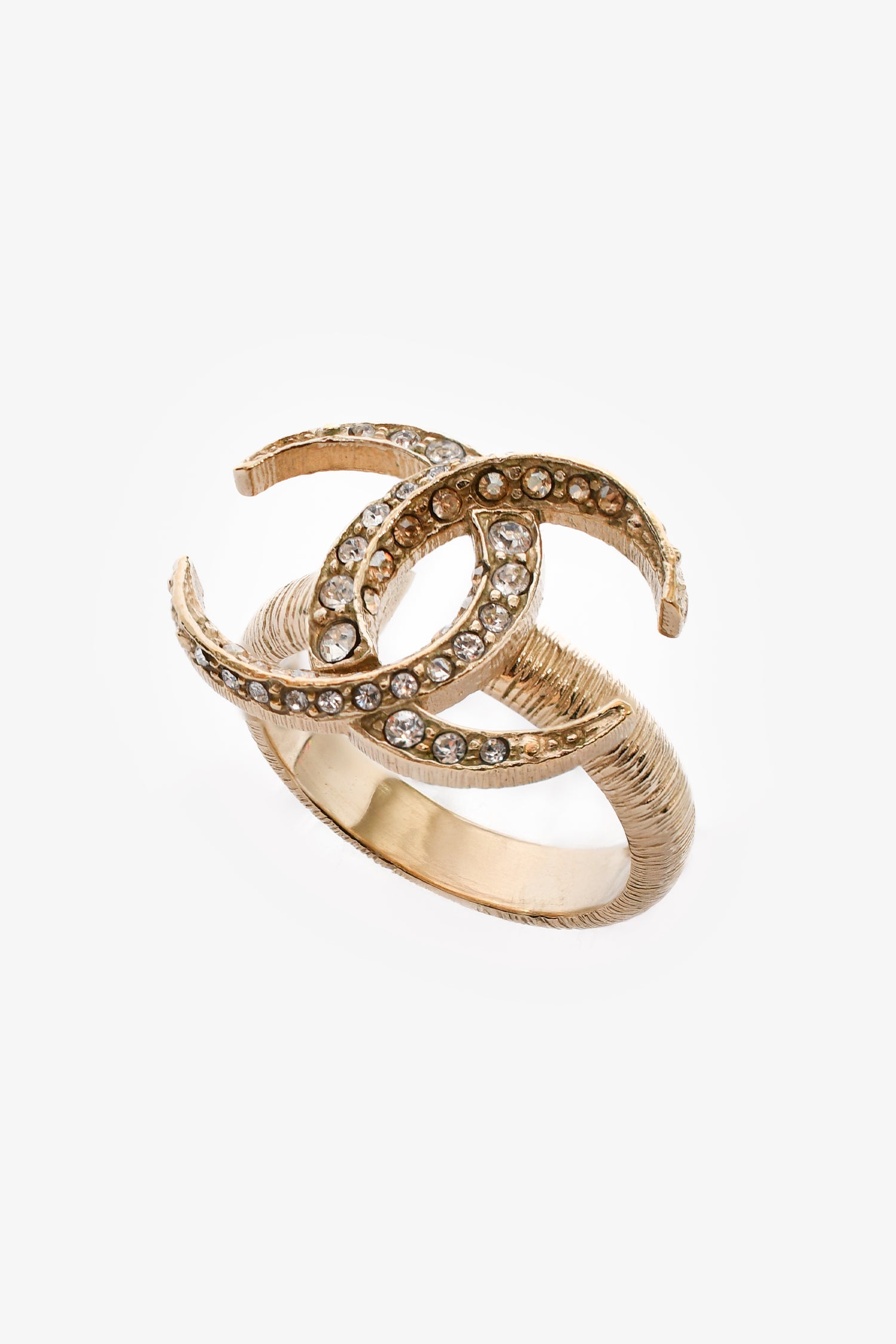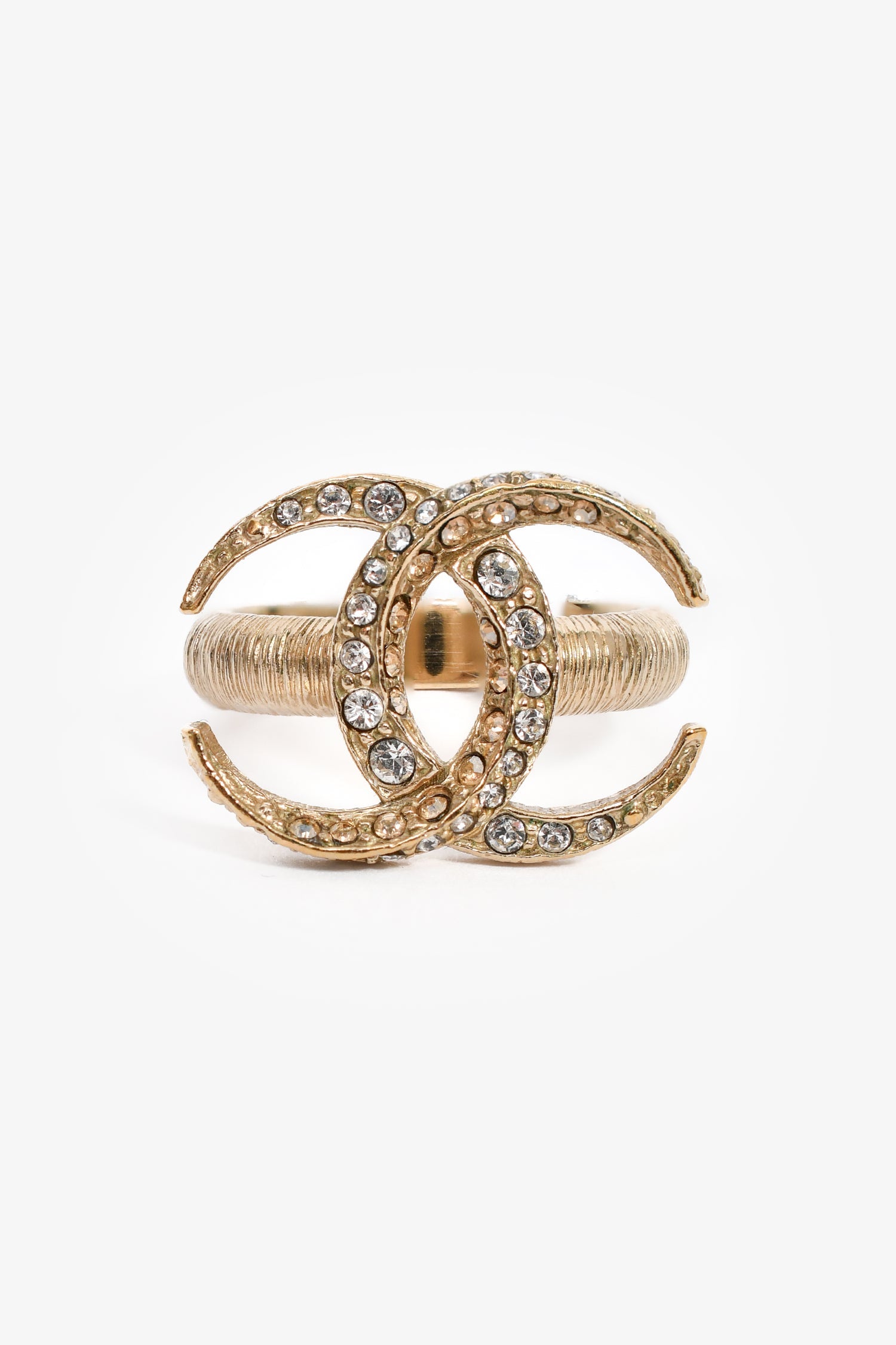Pre-Loved Chanel™ 2015 Champagne Gold Toned CC Crystal Ring