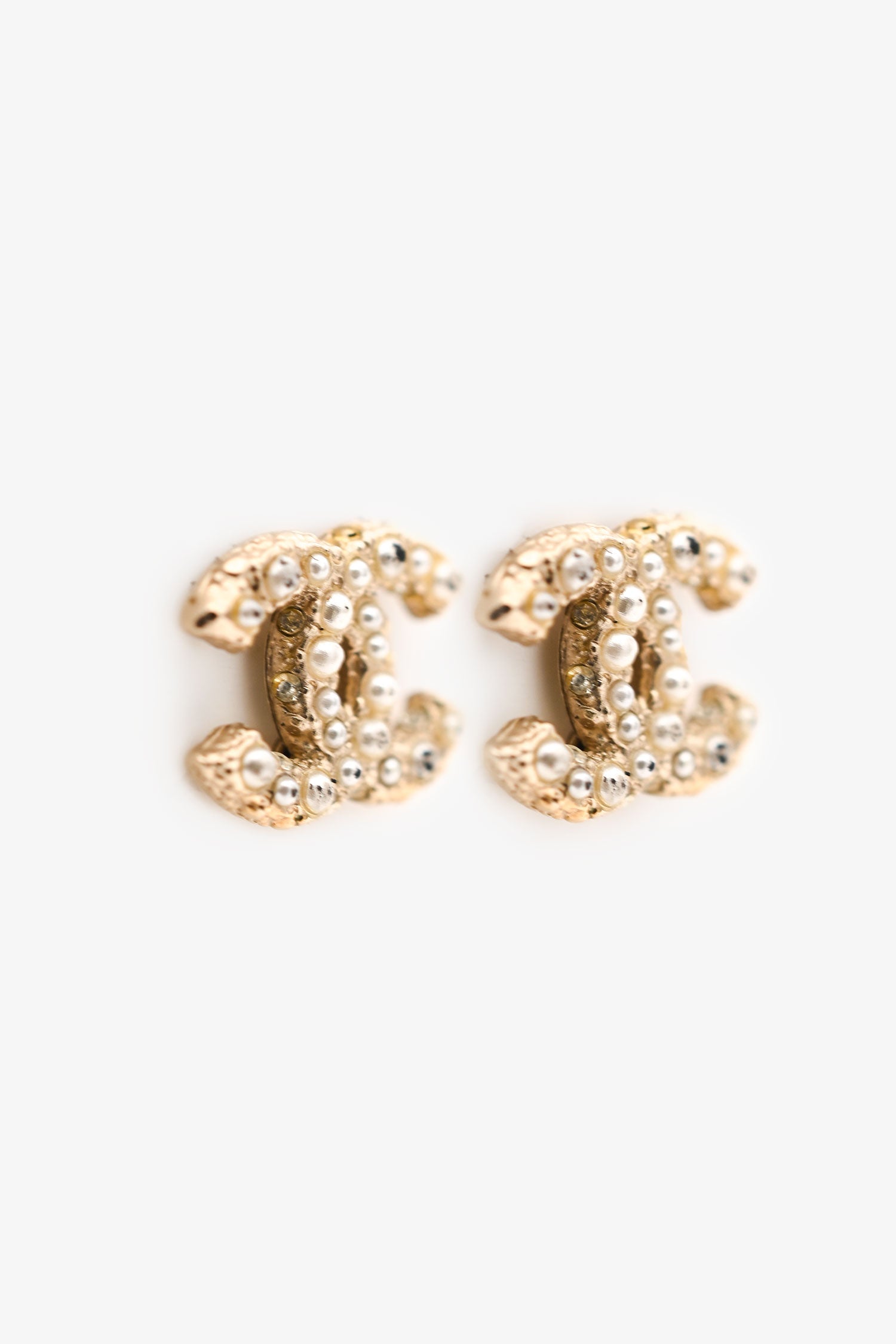 Pre-Loved Chanel™ 2016 Gold Tone CC Logo Pearl Stud Earrings
