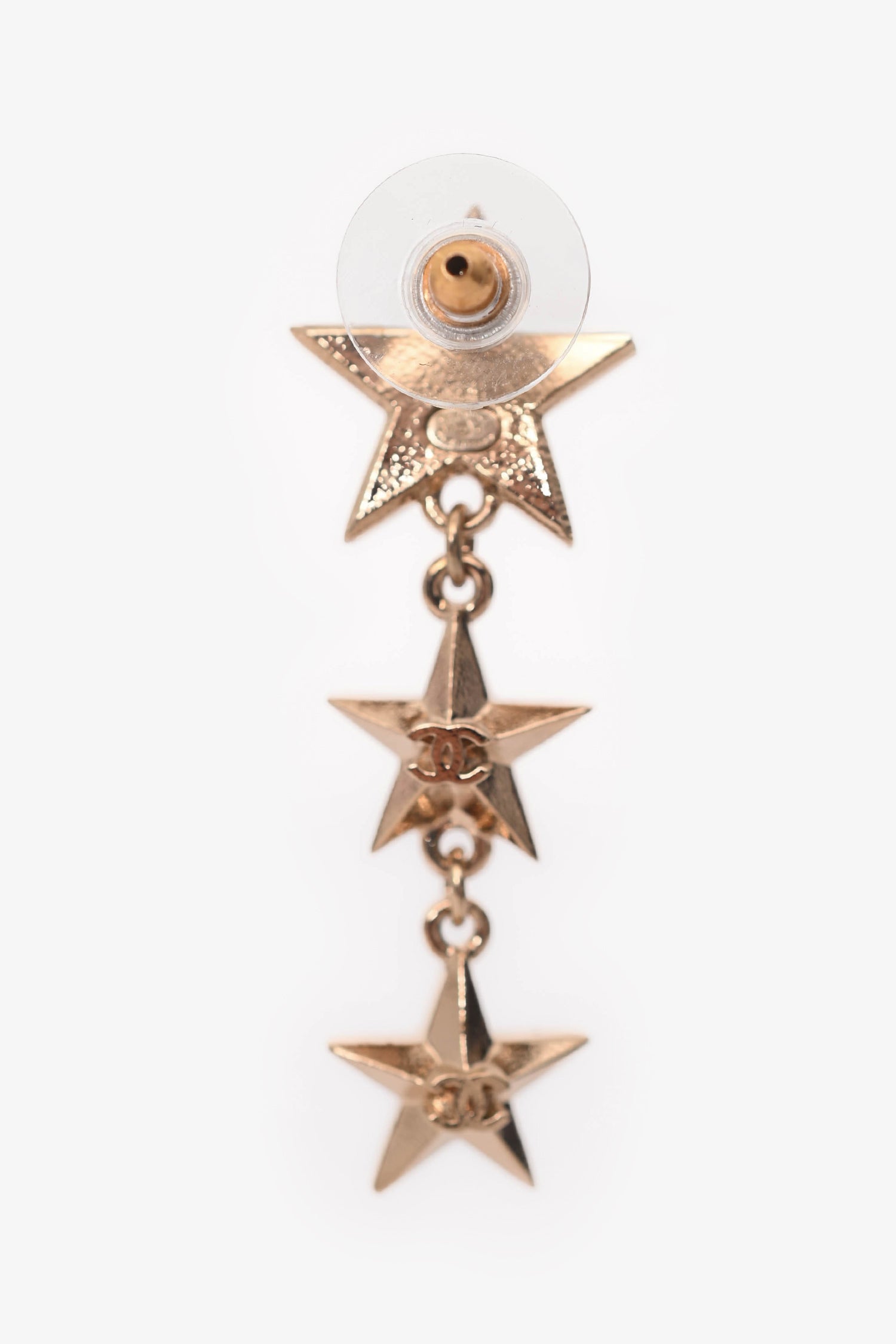 Pre-Loved Chanel™ 2017 Gold Tone Metal Star Motif CC Earrings. Push-pin closure in the rear. Gold-tone hardware.