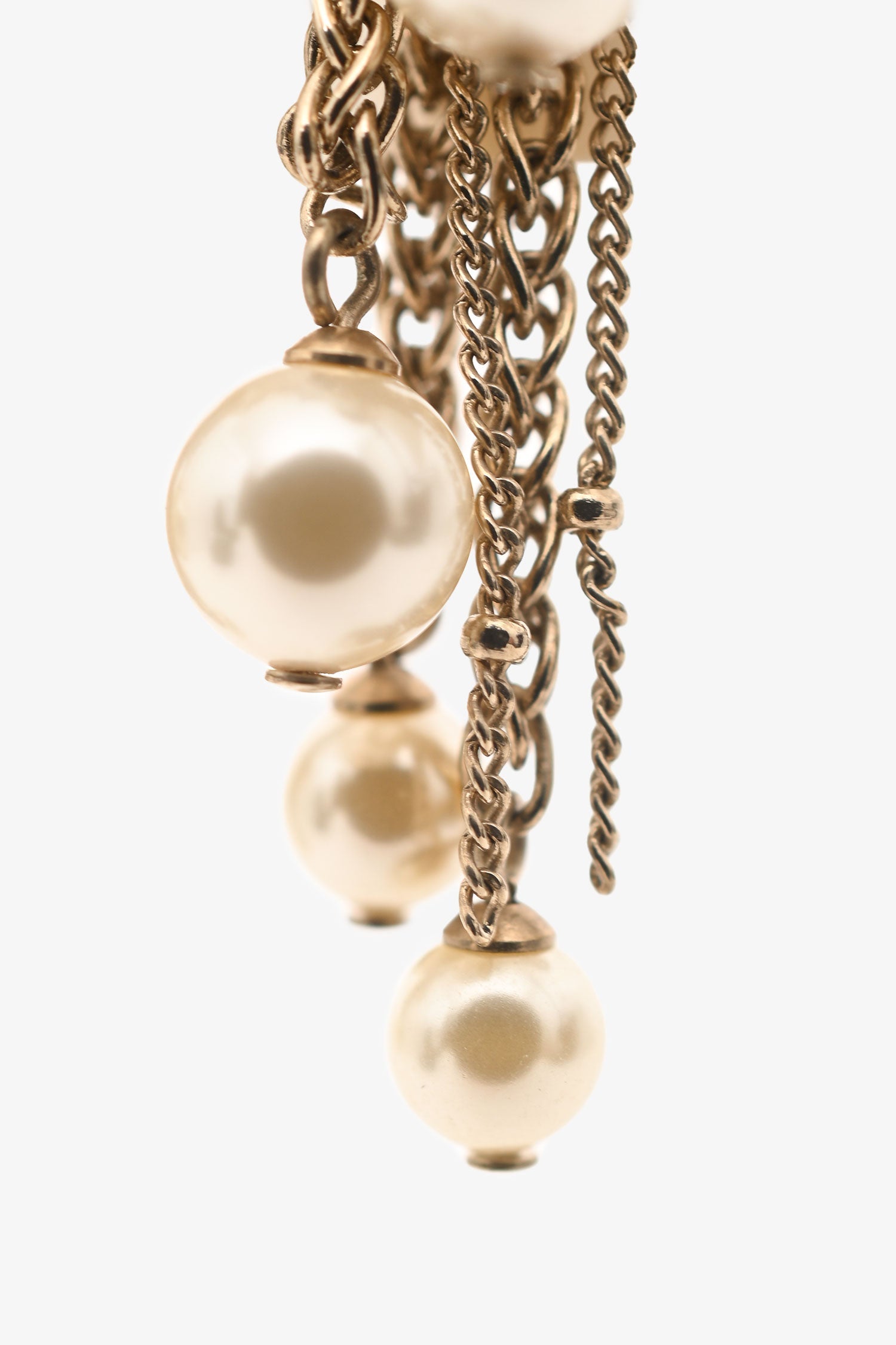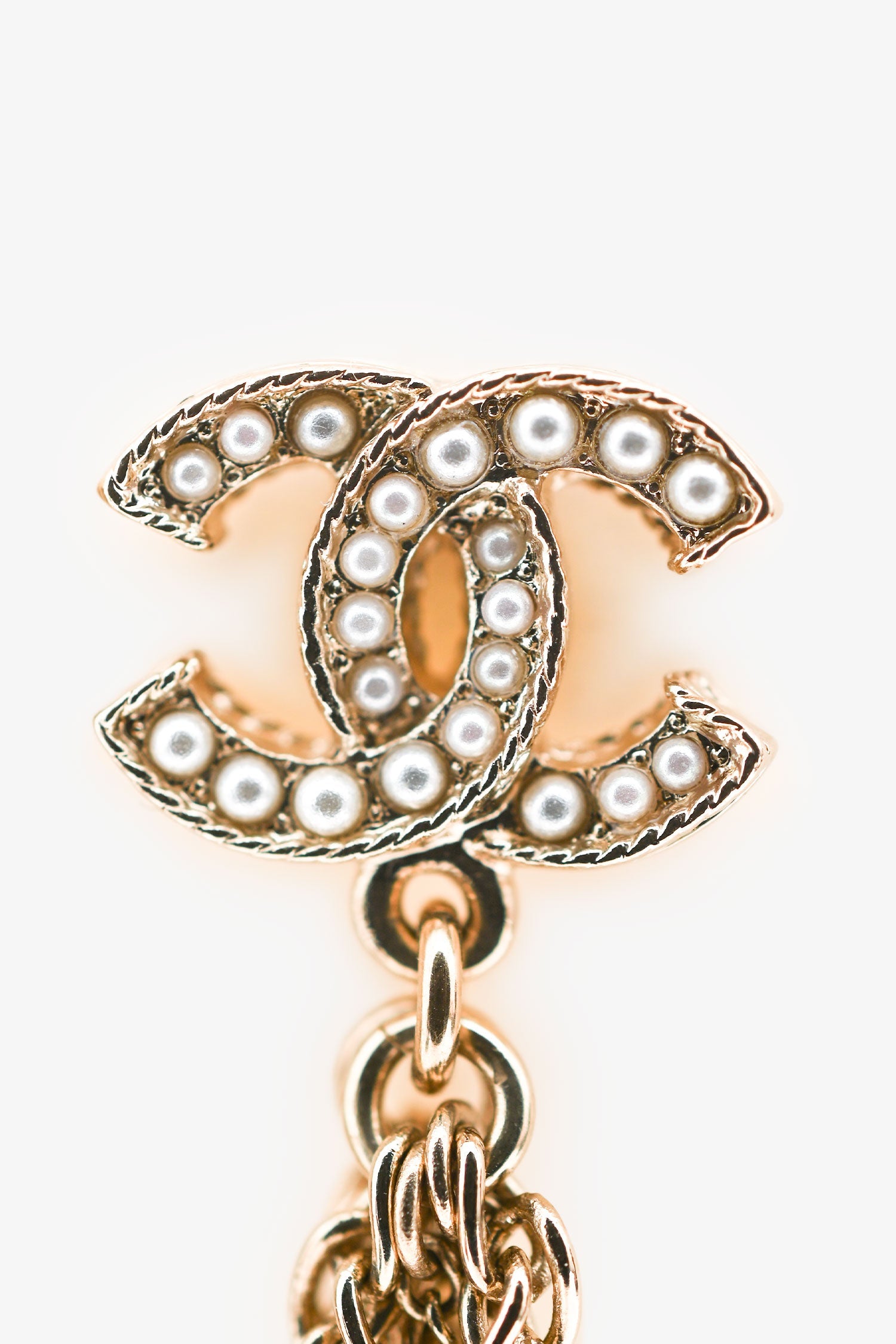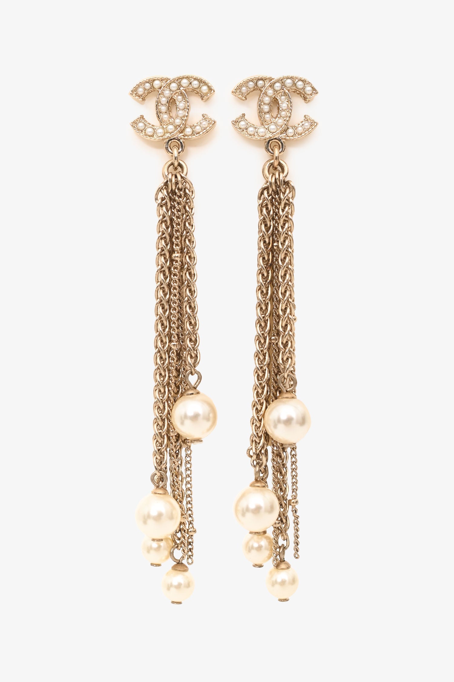 Pre-Loved Chanel™ 2020 Gold Tone Faux Pearl CC Ear Pendants