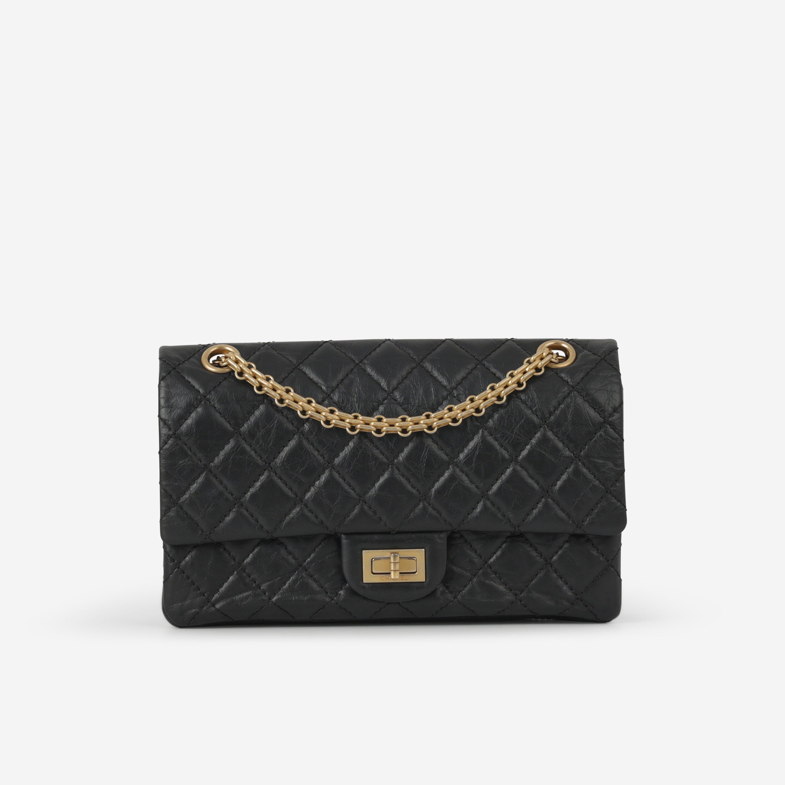 Chanel 2.55 Reissue 225 - Black Crumpled Calfskin | Gold Hardware