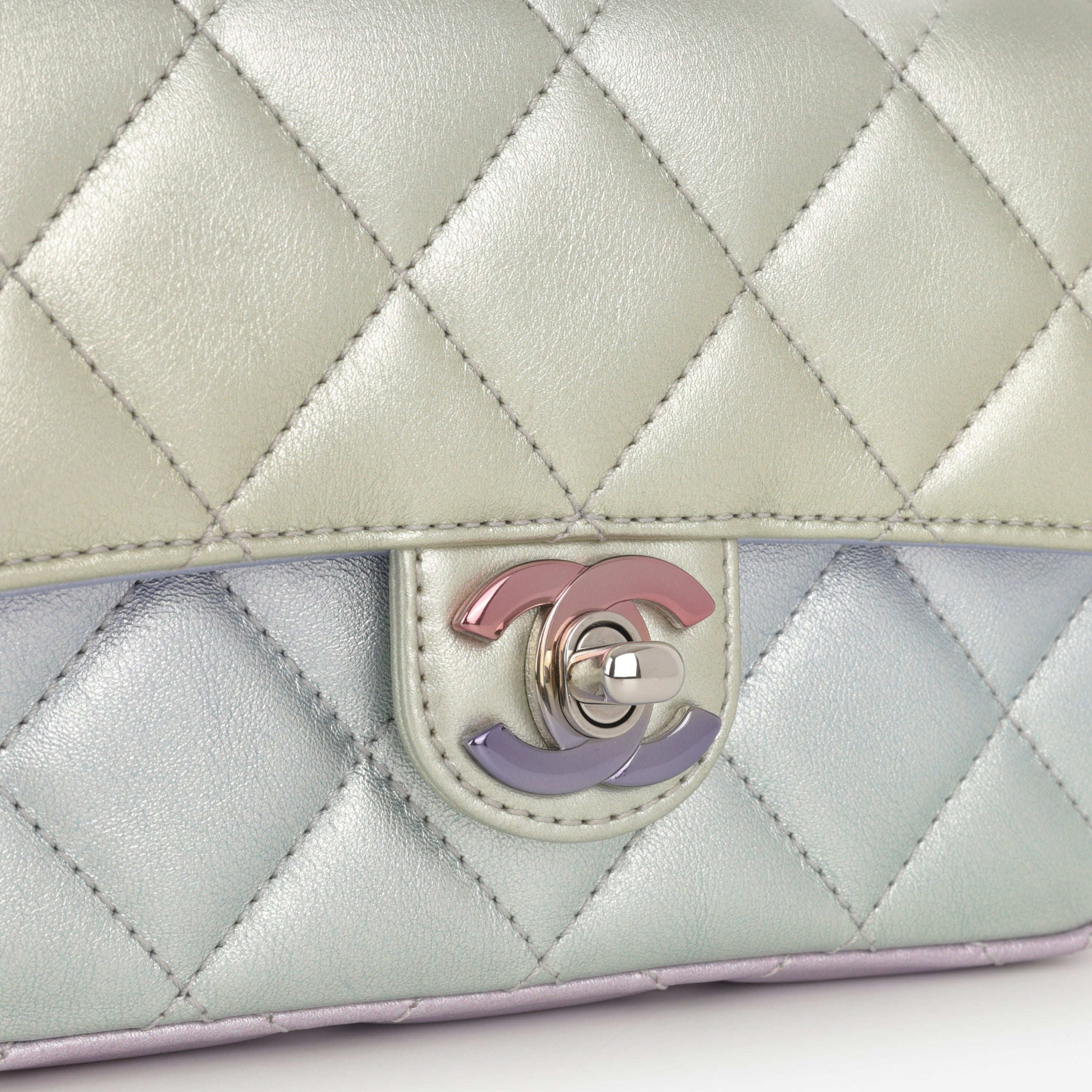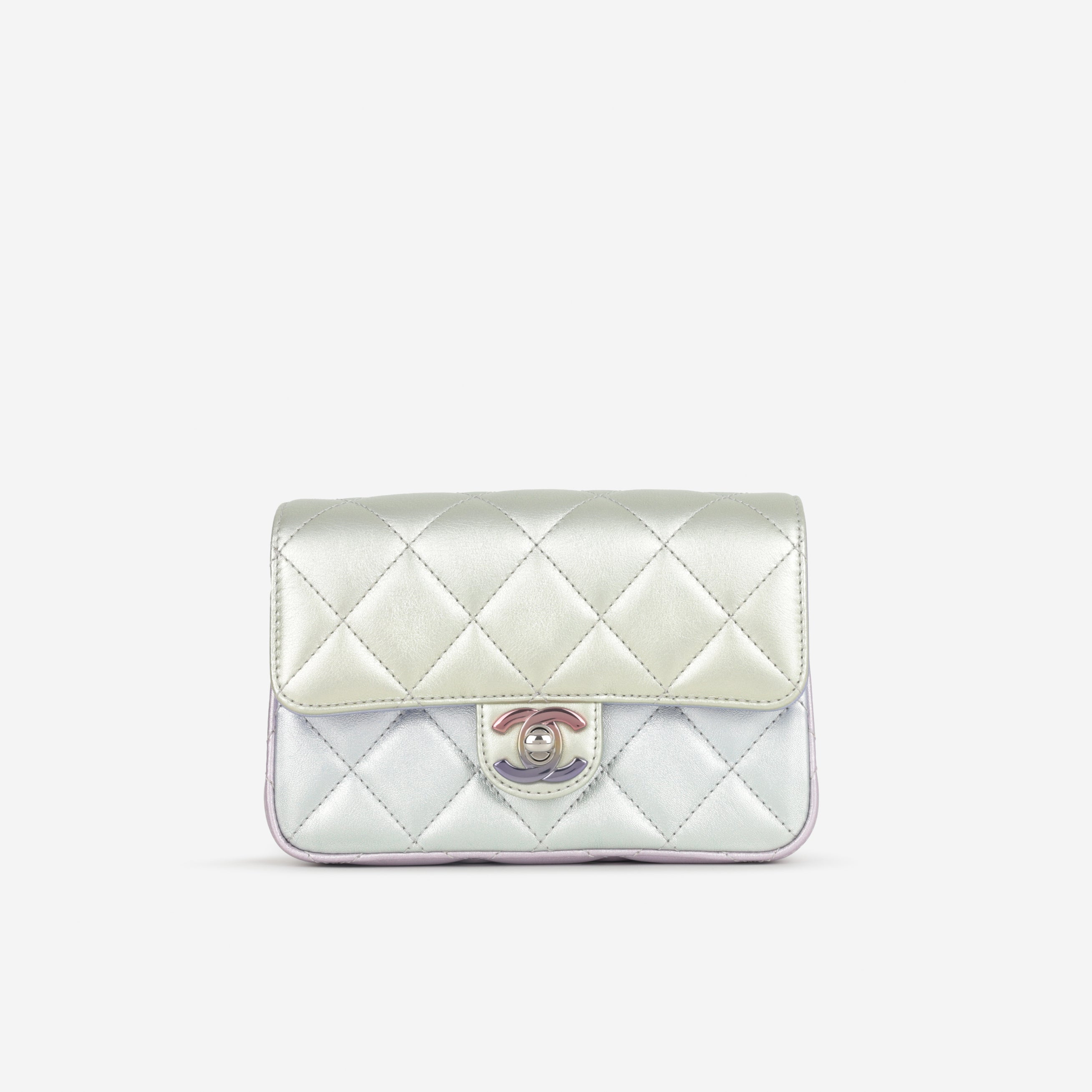 Chanel Classic Mini Wristlet Clutch - Iridescent Rainbow Calfskin | Silver Hardware